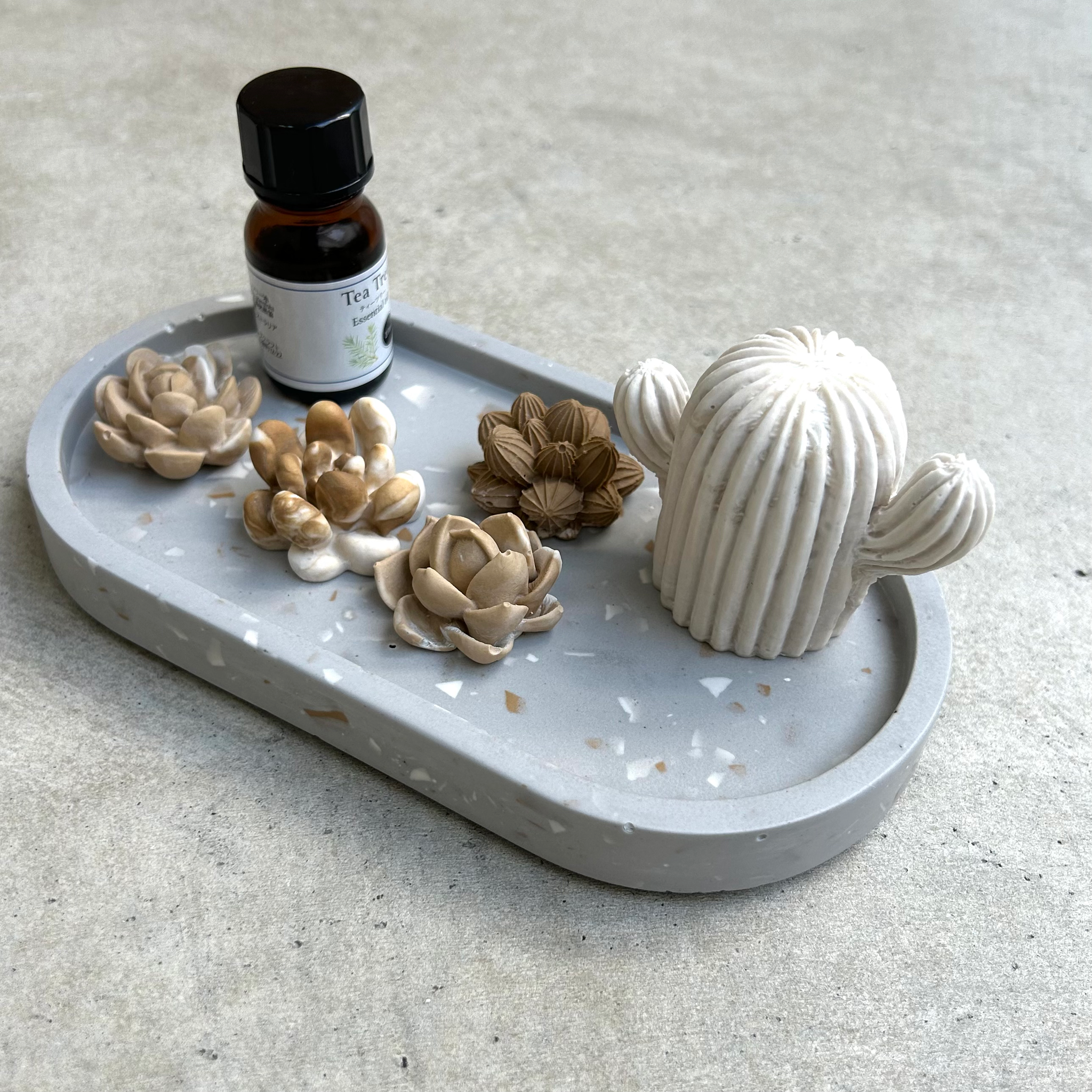 トレイにアクセサリーなどを置いても良いし、パーツにアロマを垂らして香りを楽しんだりも可能です。