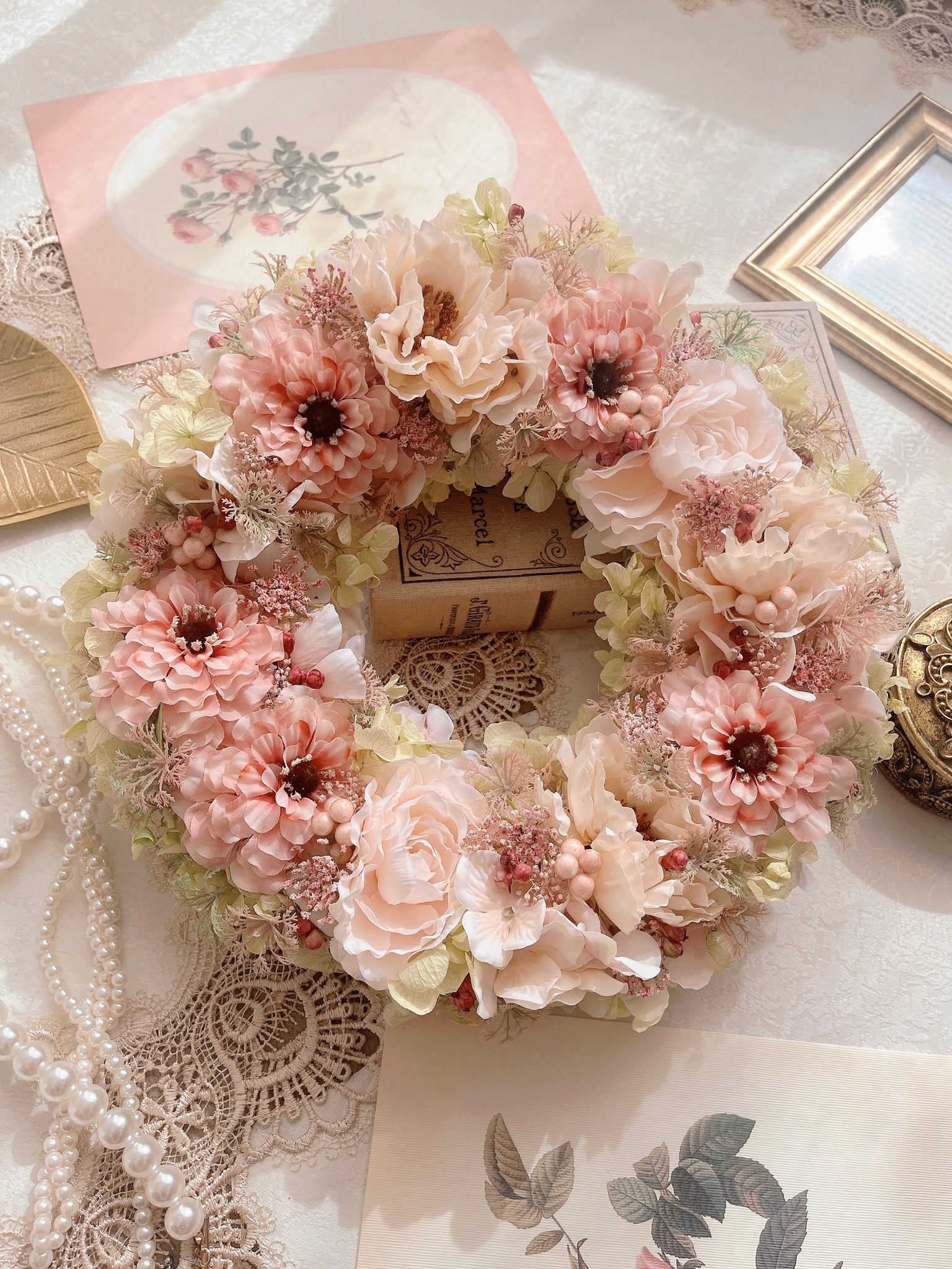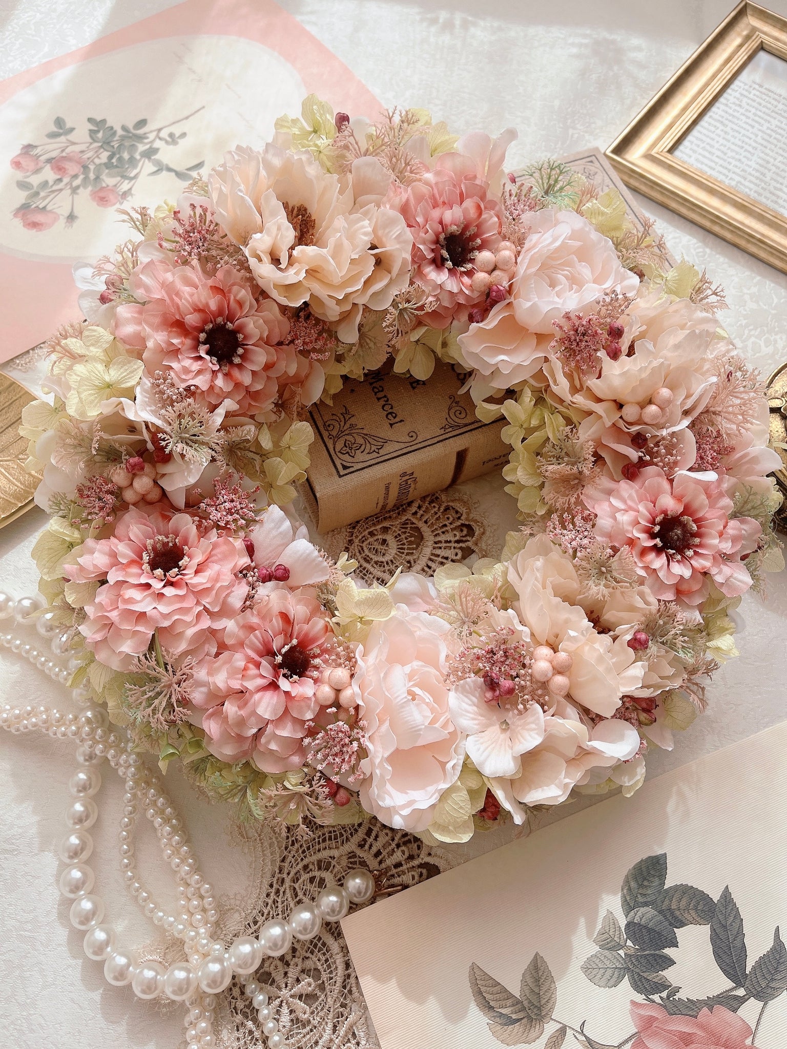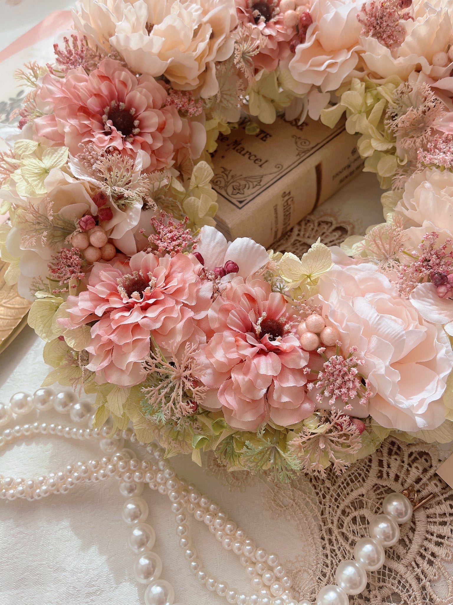 ペールカラーの大きなフラワーリース|flowers luciole(フラワーズ ルシオール)
