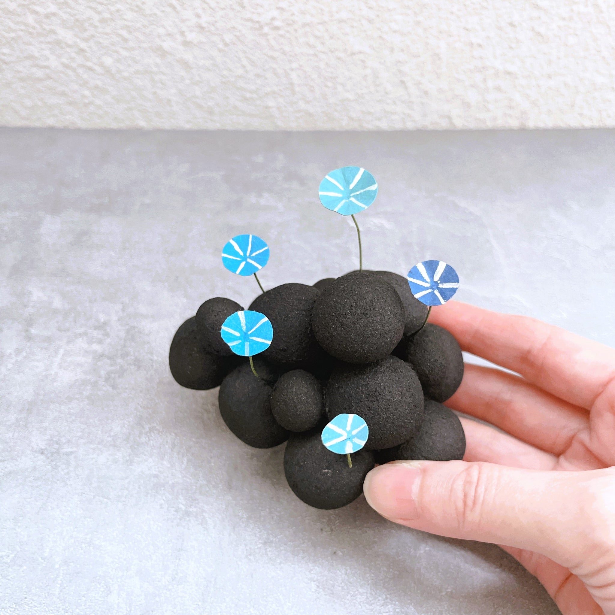 丸い炭団を集合させて、丸いペーパーリーフを挿しました。