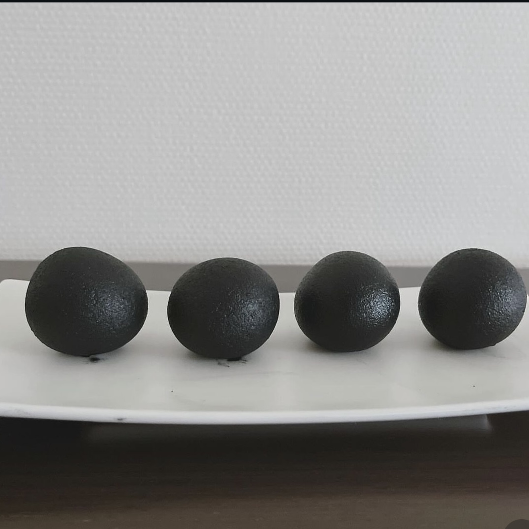 さらに粉にして成型した炭のお団子=炭団(たどん)
