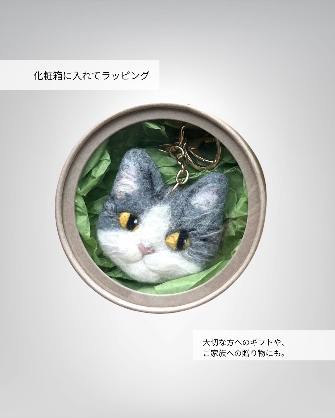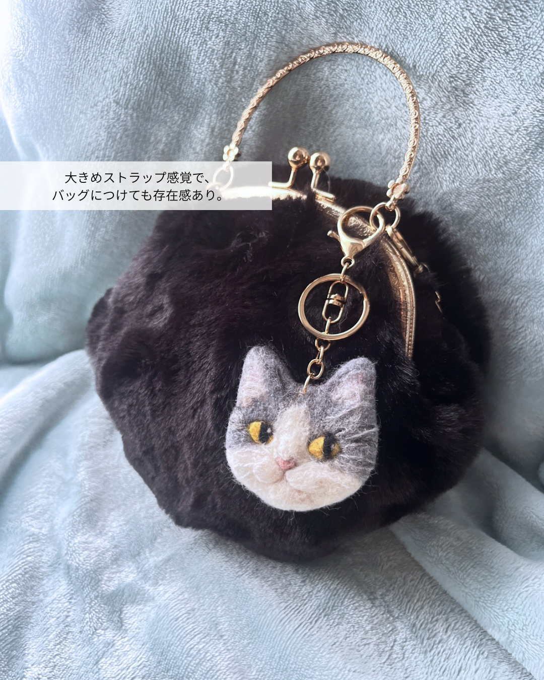 羊毛フェルトで表情豊かに仕上げた“存在感ある猫ストラップ”シリーズです。