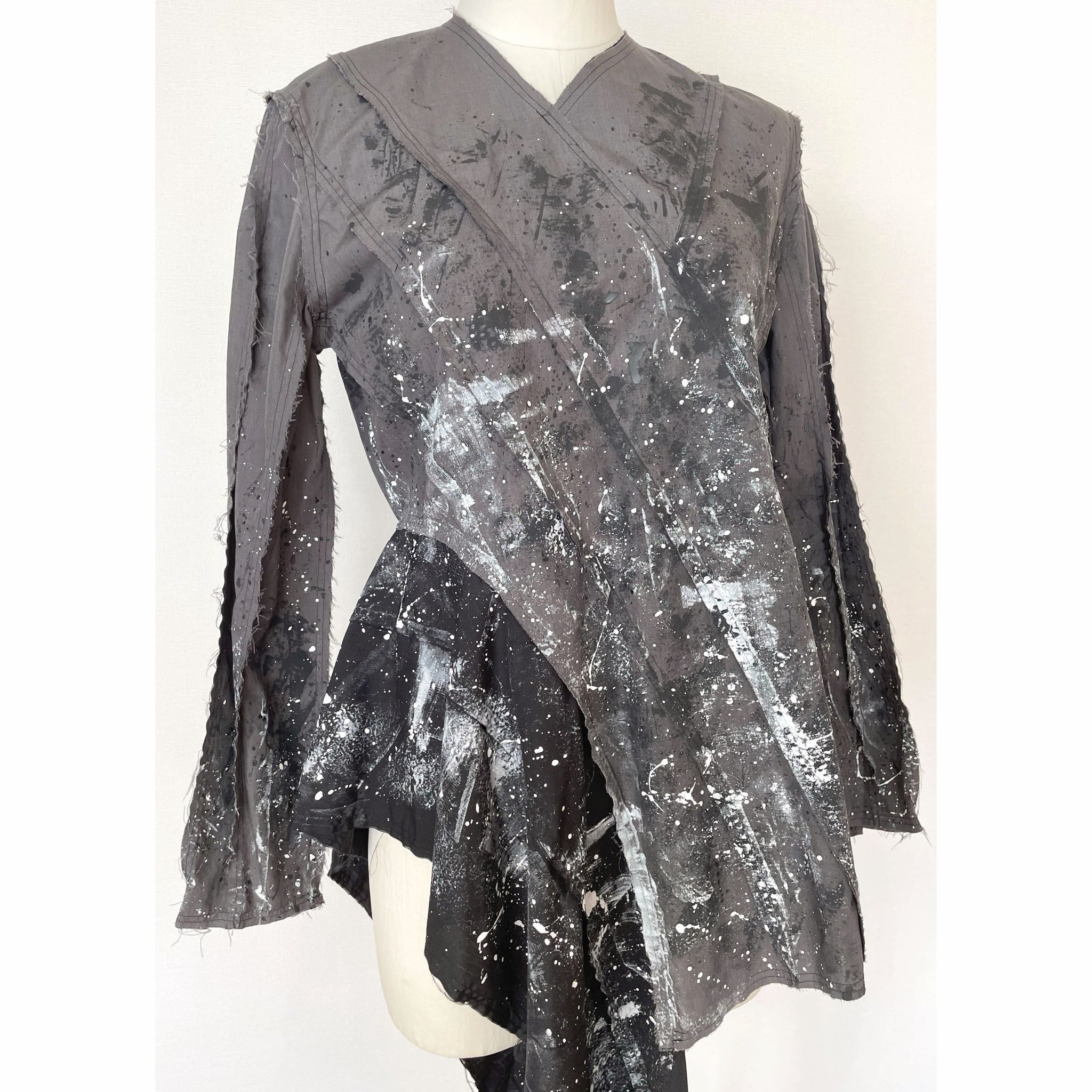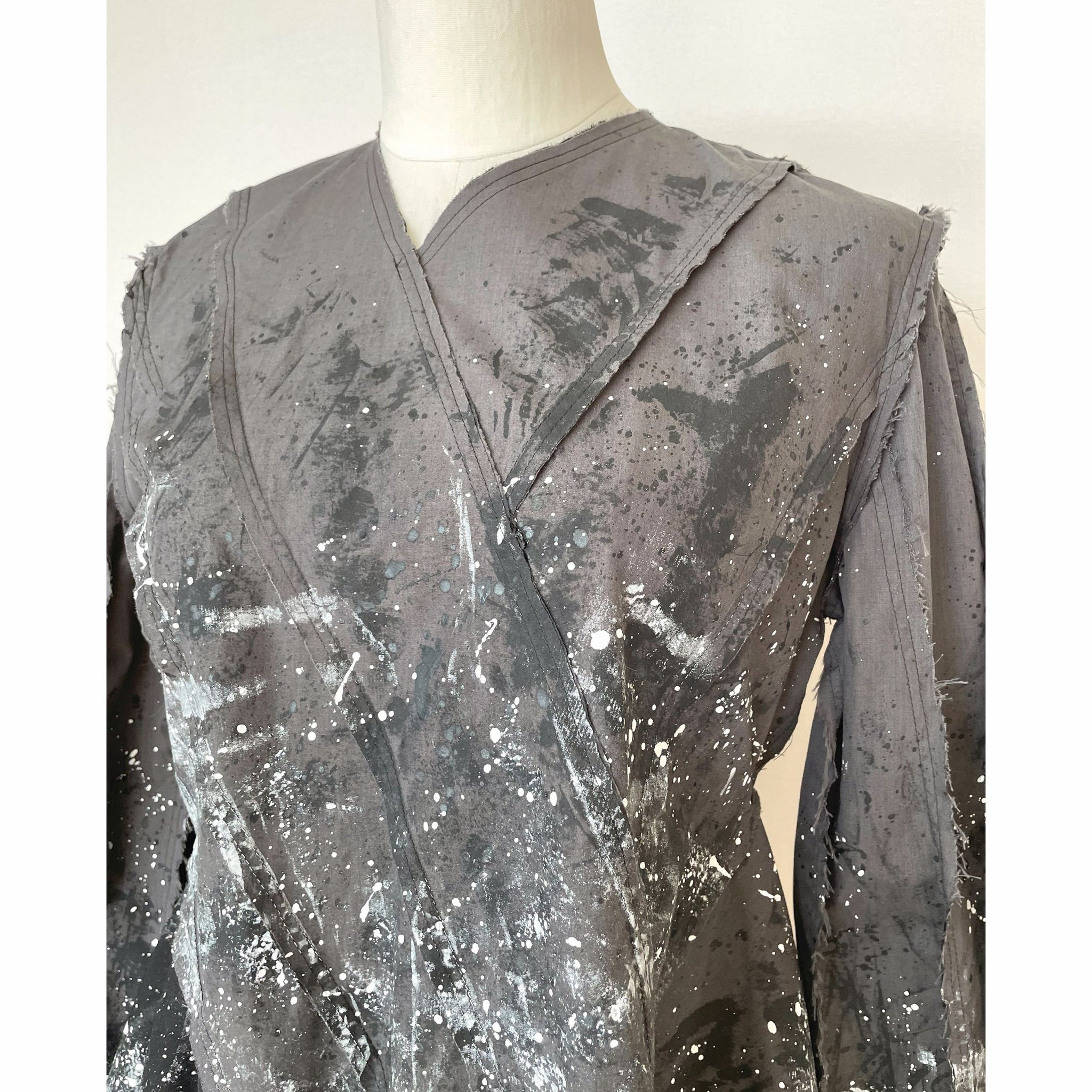 • 画像をギャラリービューアに読み込む, Patchwork shirt paint gray - パッチワークシャツ ペイントグレー|Merci DIEU(メルシーデュー)