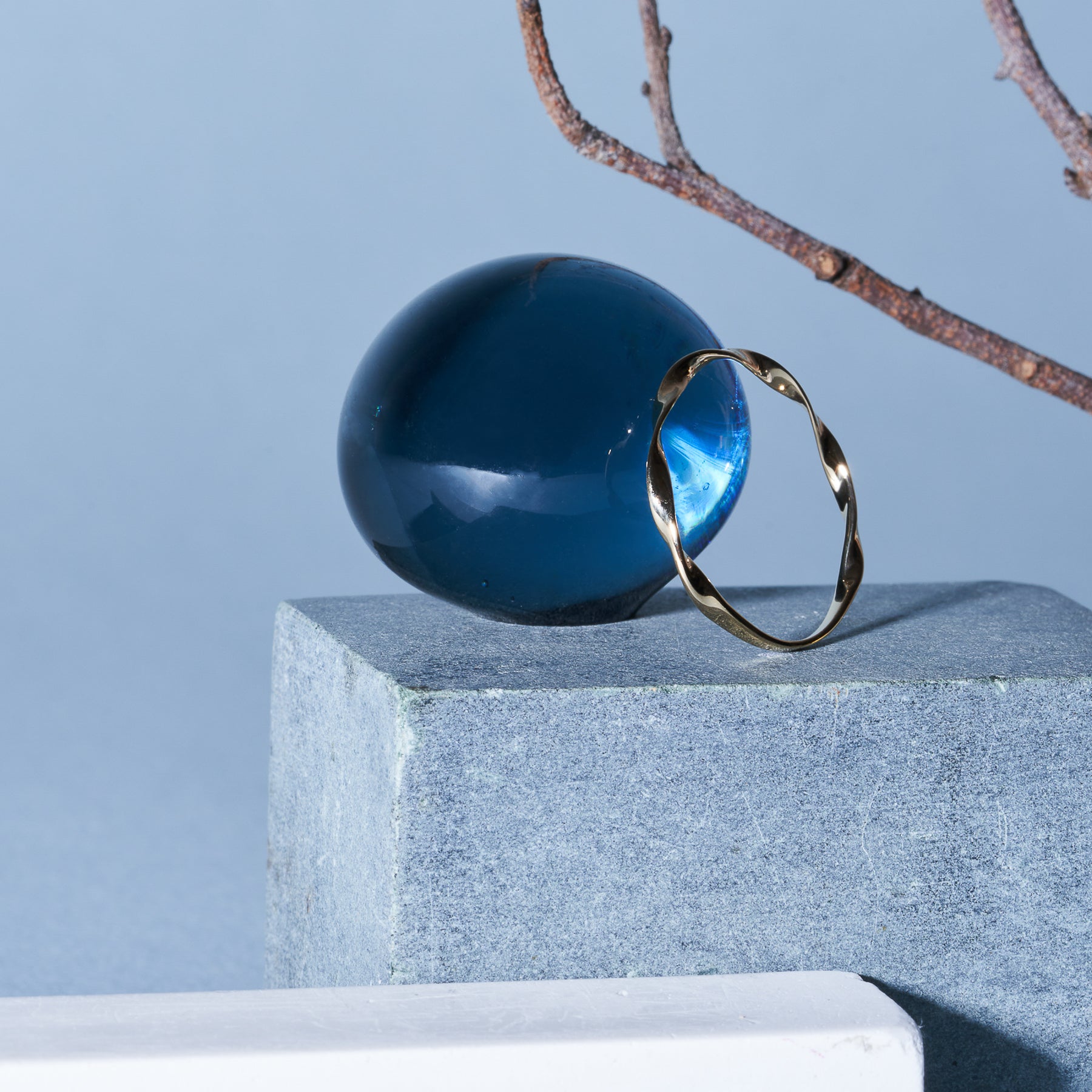 極細のウェーブがかった地金デザインリング。