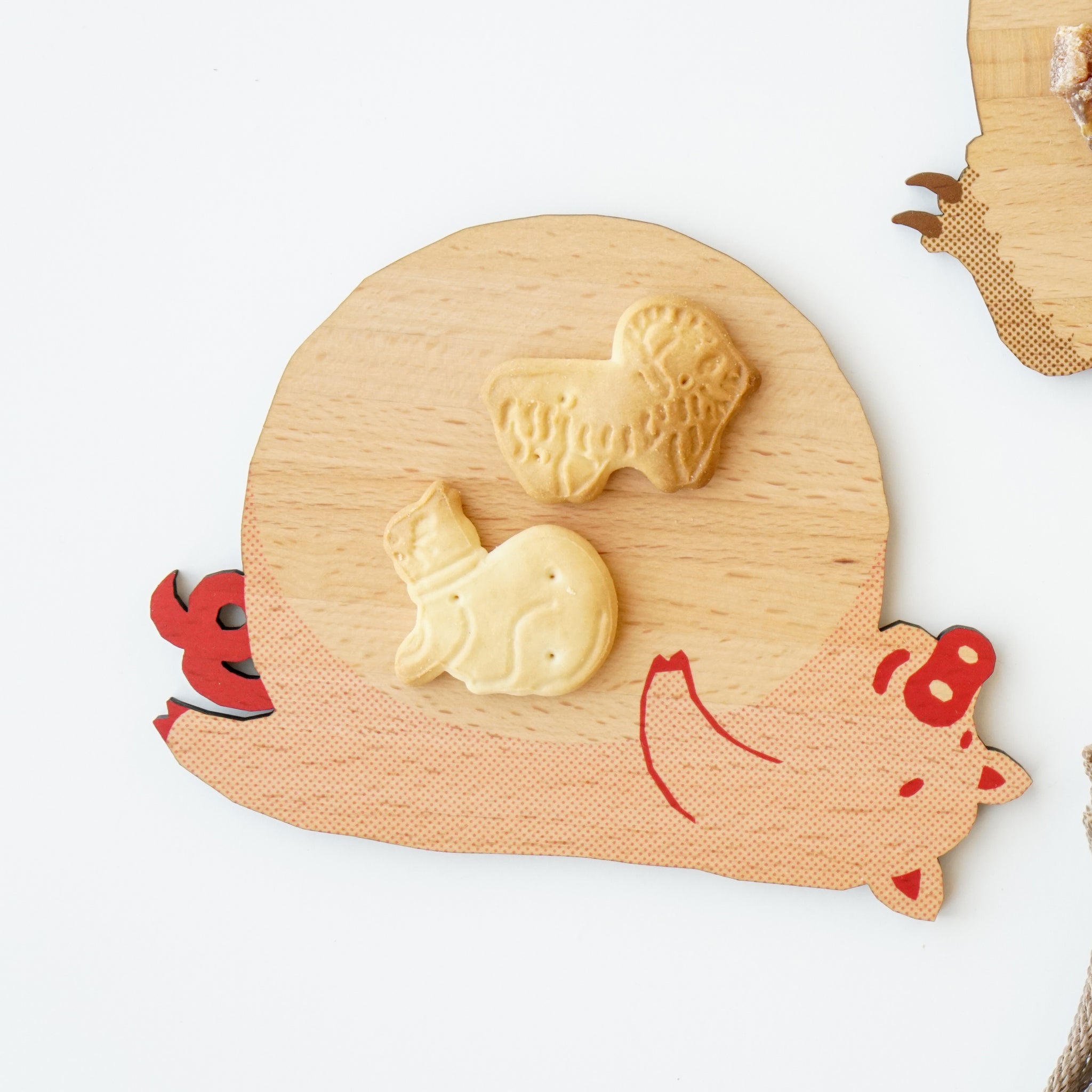 Ten&O Art+Craft ウッドプレートは再利用された端材から作られたコレクションです。可愛らしい動物を描いたデザインのプレートは、コースターやディスプレイプレート、小物置きなど、使い方は自由。天然木の端材を使用しているため、木目も一つひとつ異なります。