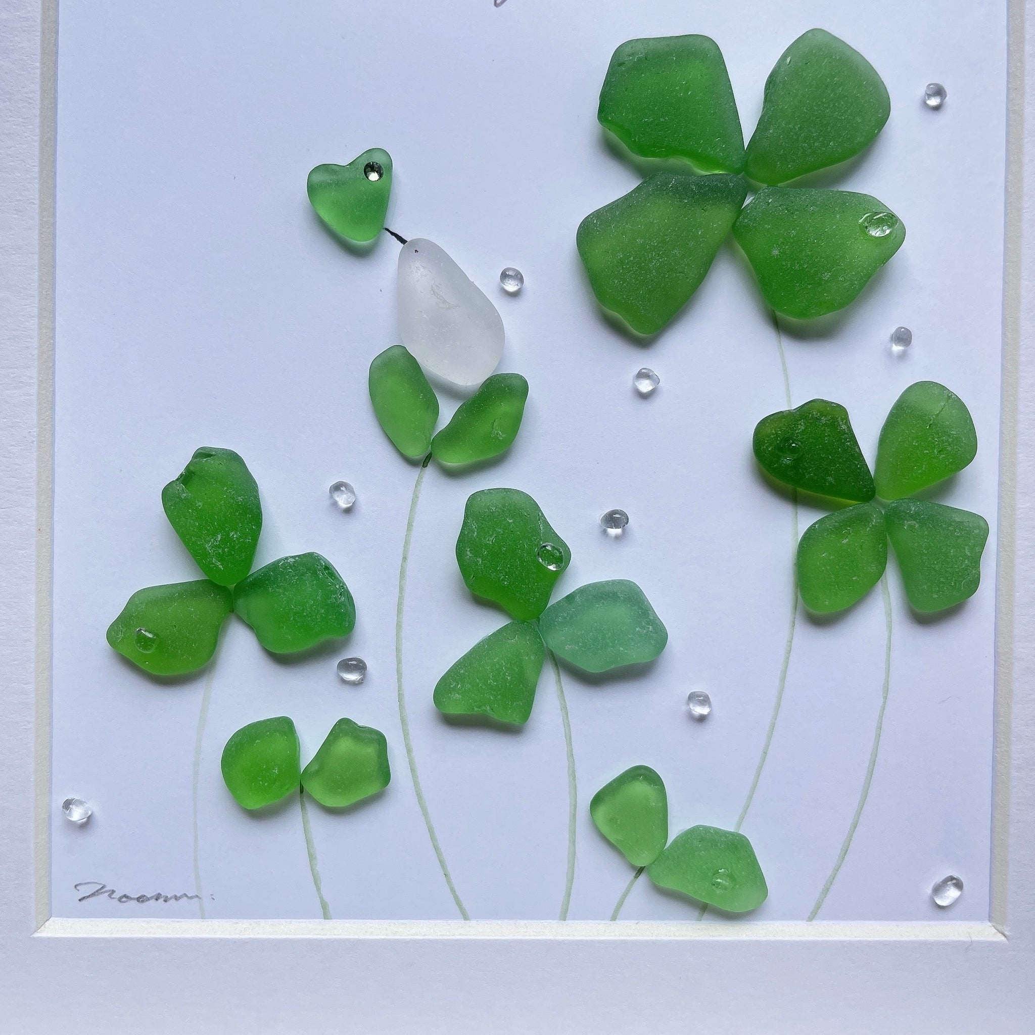 グリーンのシーグラスをふんだんに使って、 クローバー畑を表現しました。