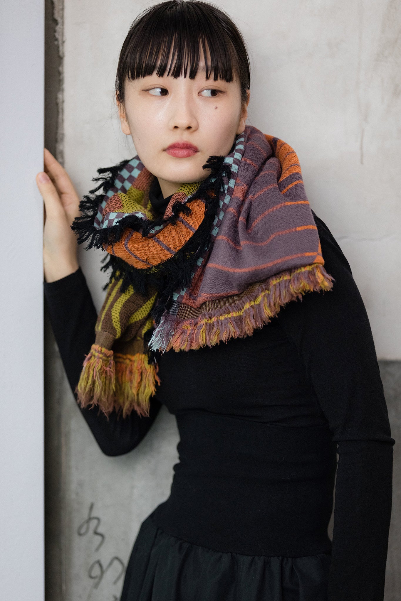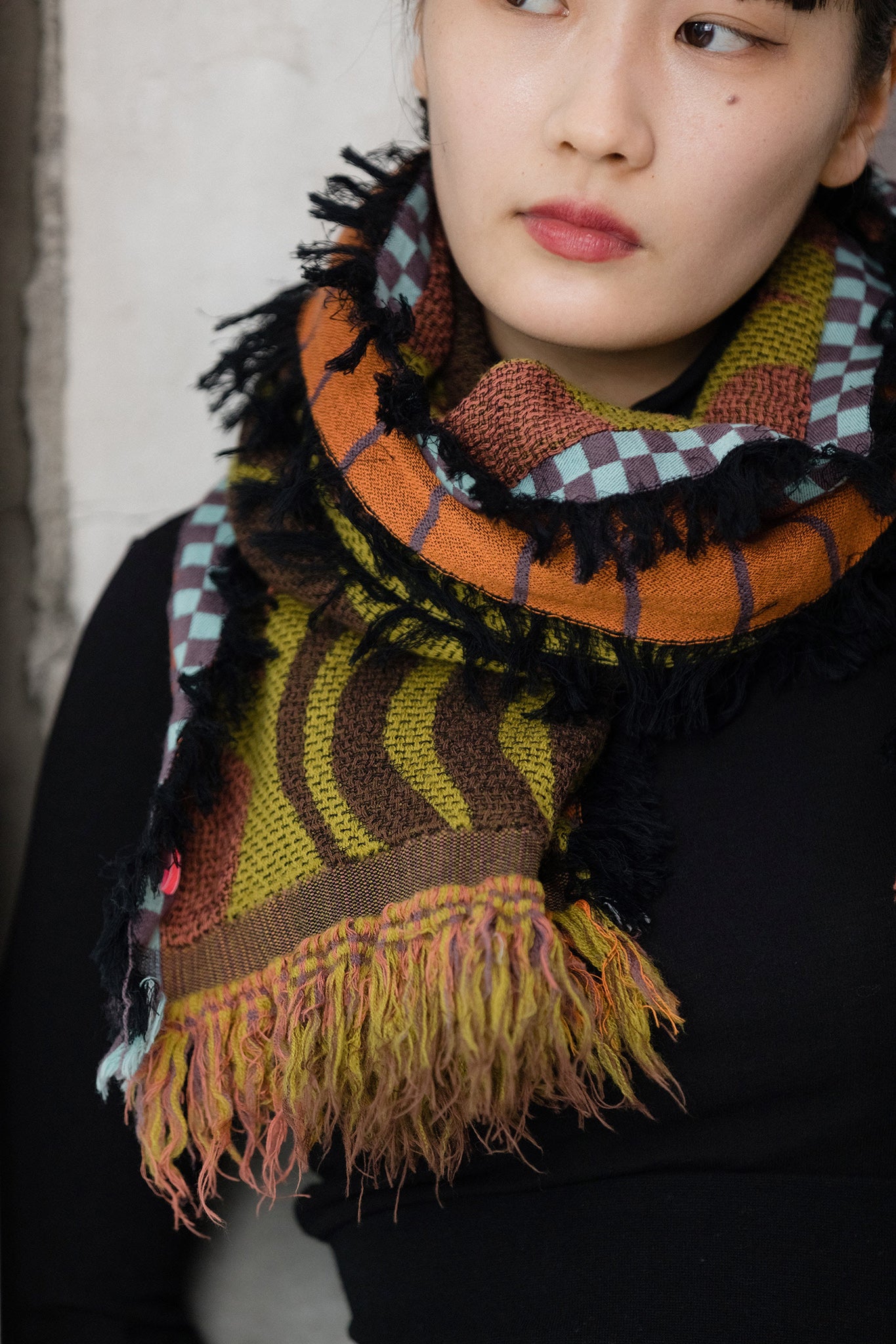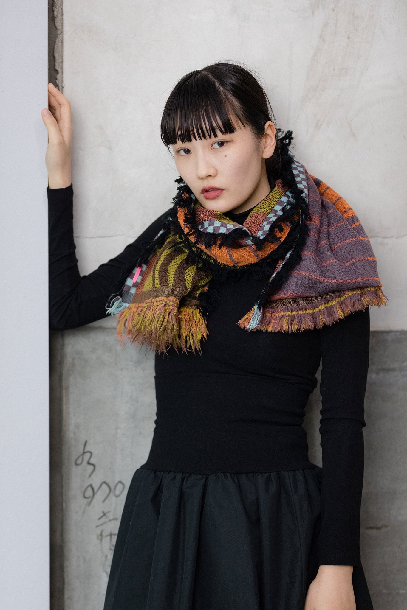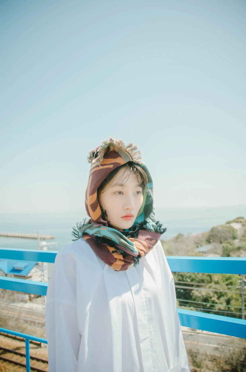 ストールの端を頭に被って”真知子巻き(まちこまき)”も。
