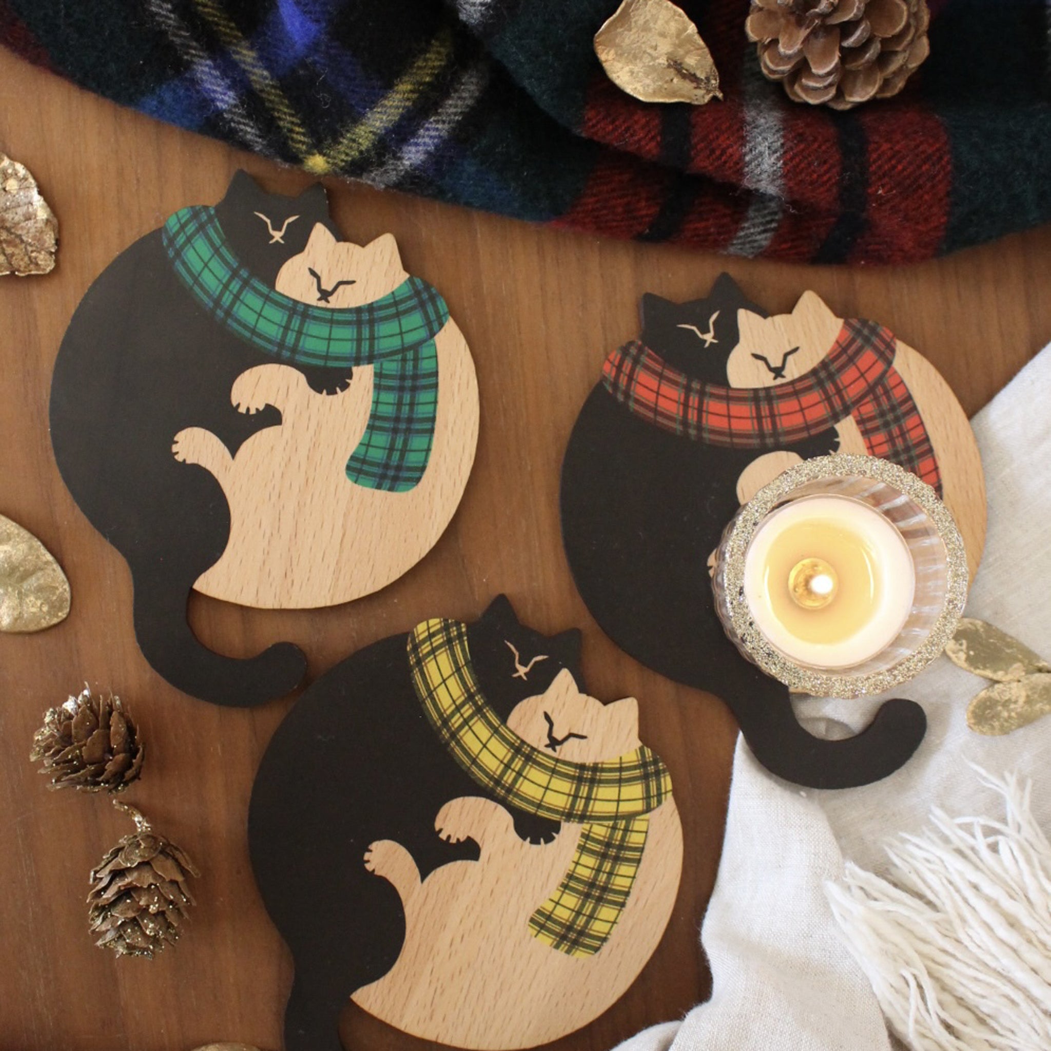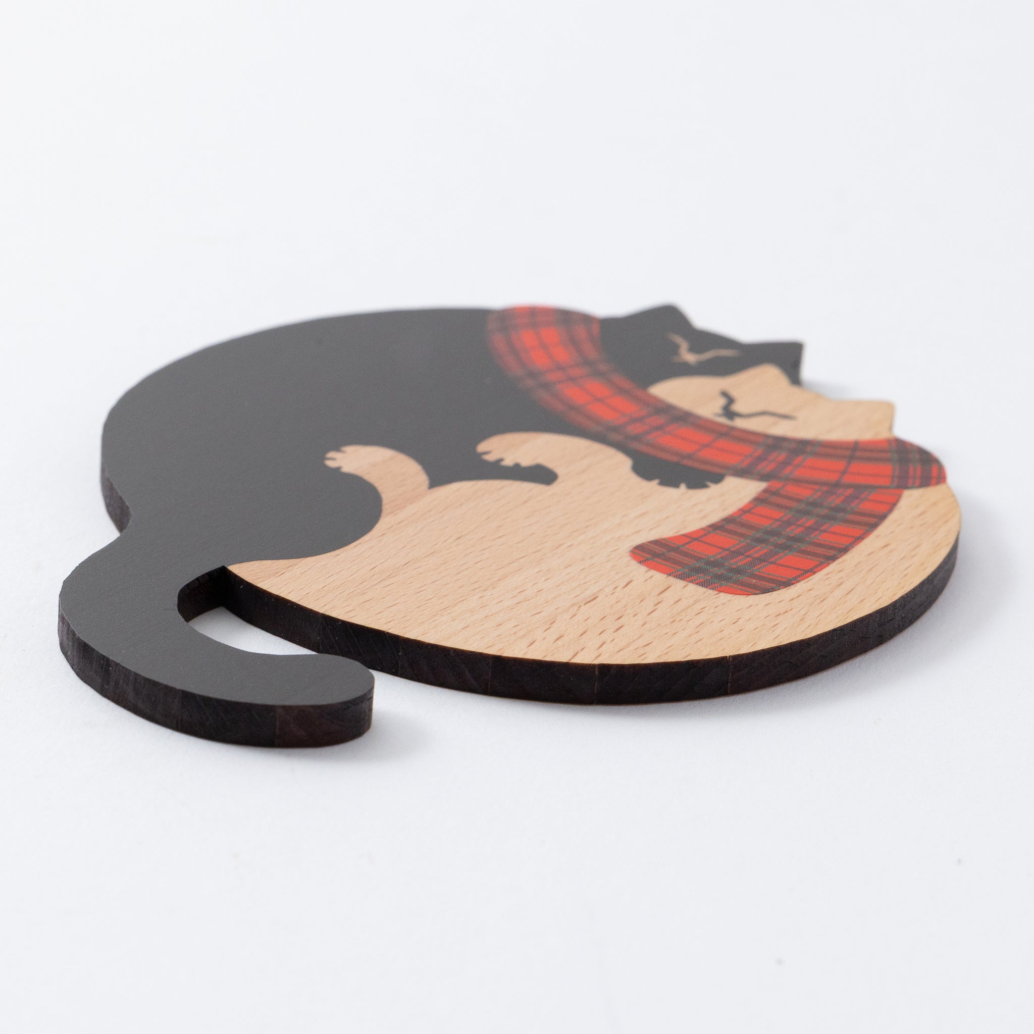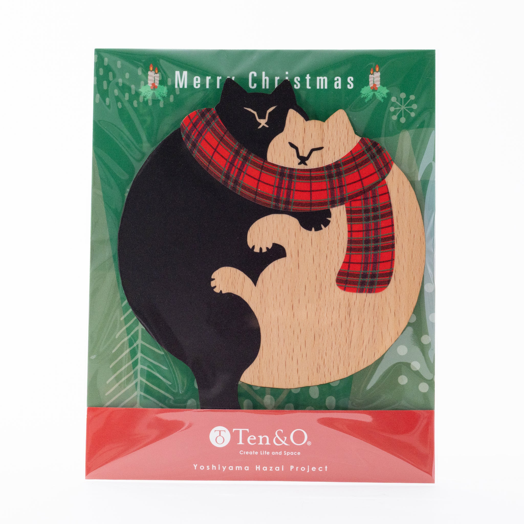 【クリスマス限定パッケージ】木製コースター・プレート|ねこまみれ〈ほっこりレッド〉|Ten&O