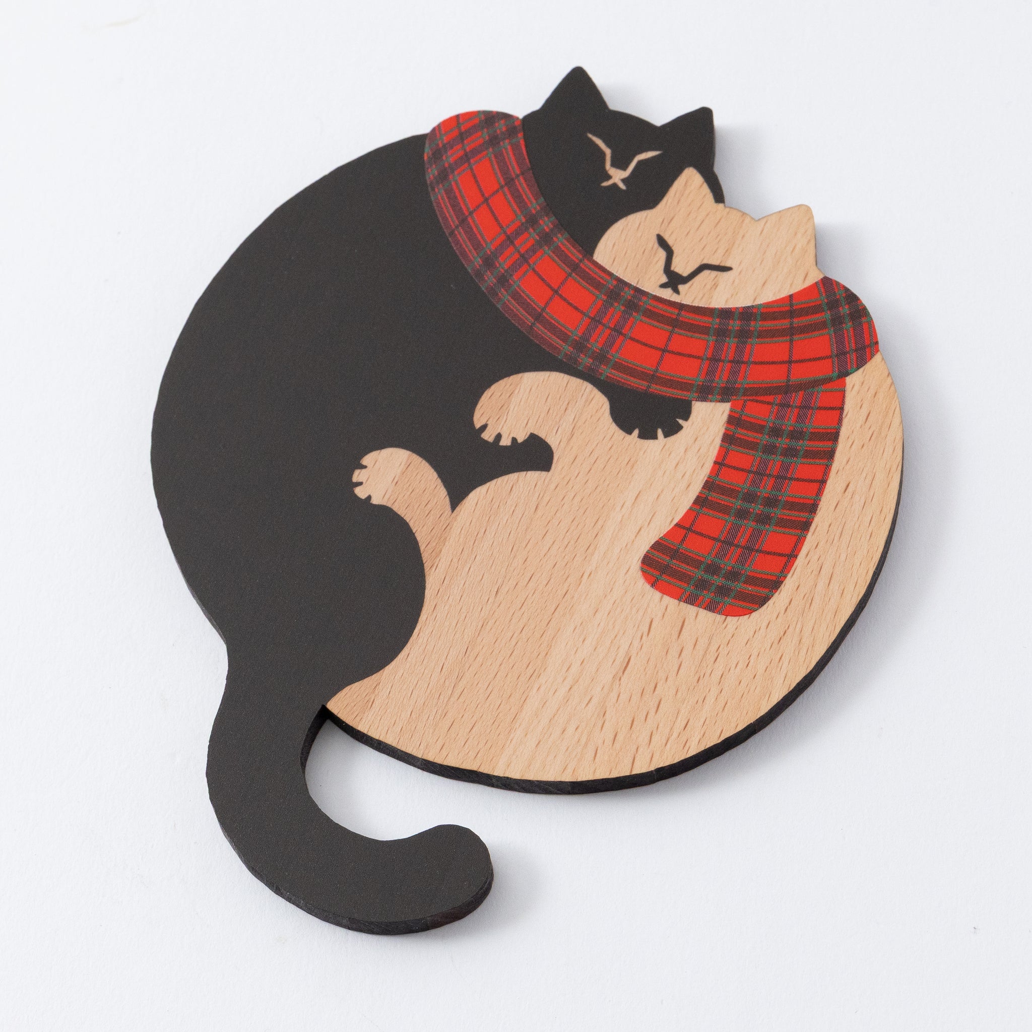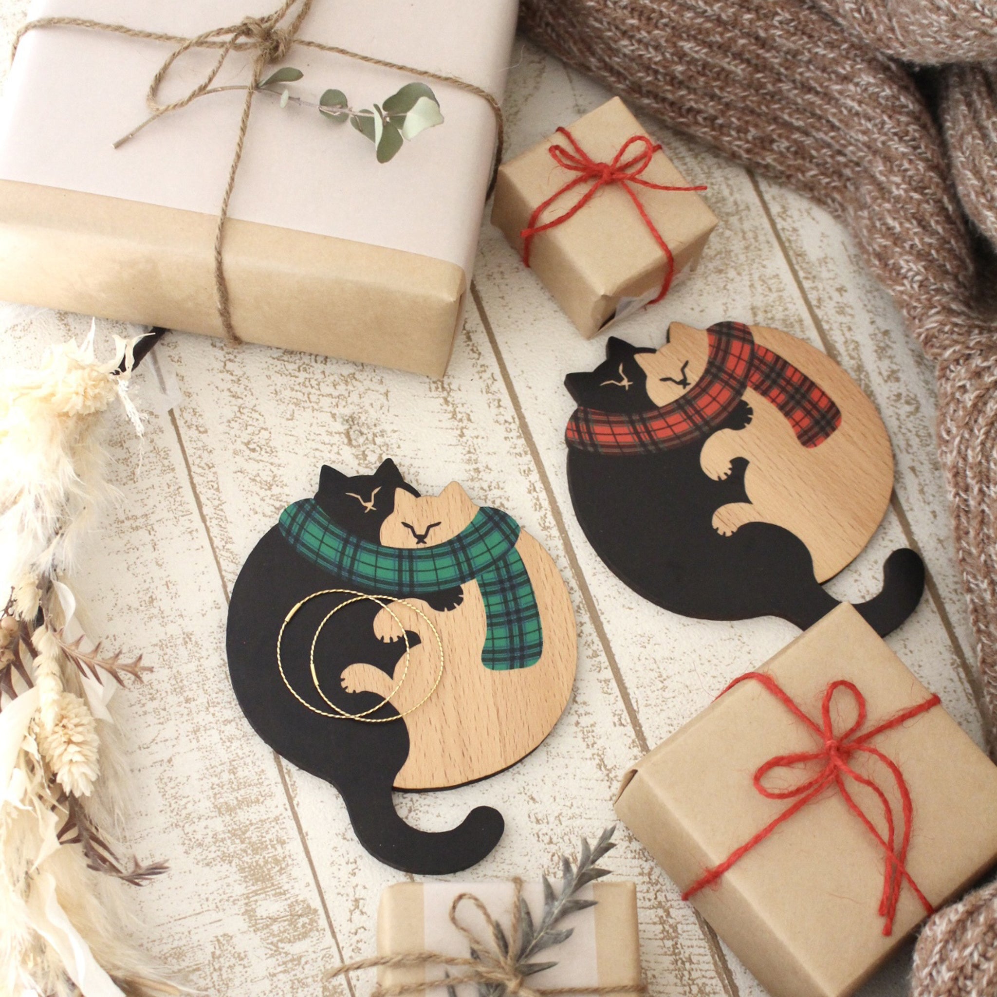 • 画像をギャラリービューアに読み込む, 【クリスマス限定パッケージ】木製コースター・プレート|ねこまみれ〈ほっこりレッド〉|Ten&O