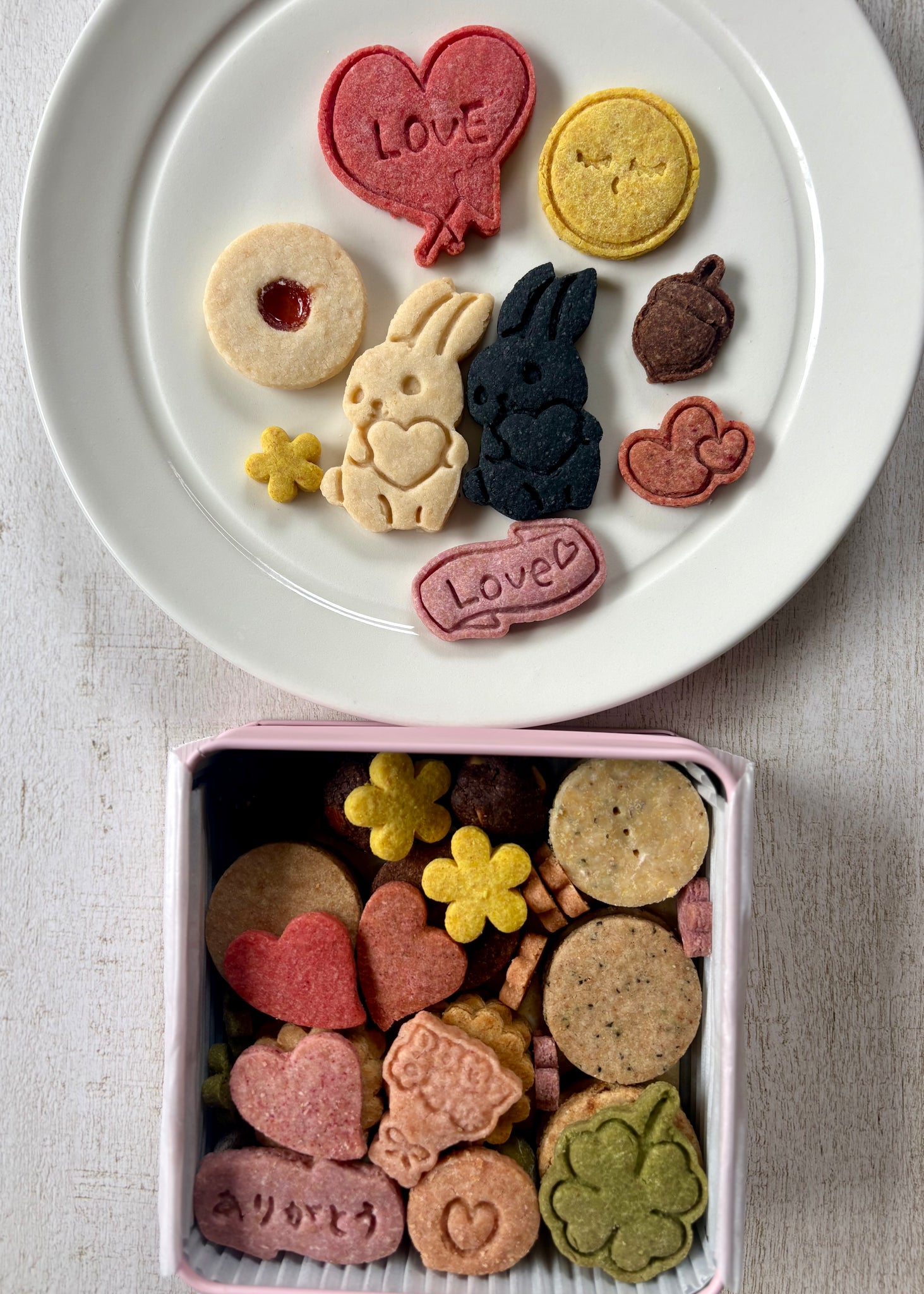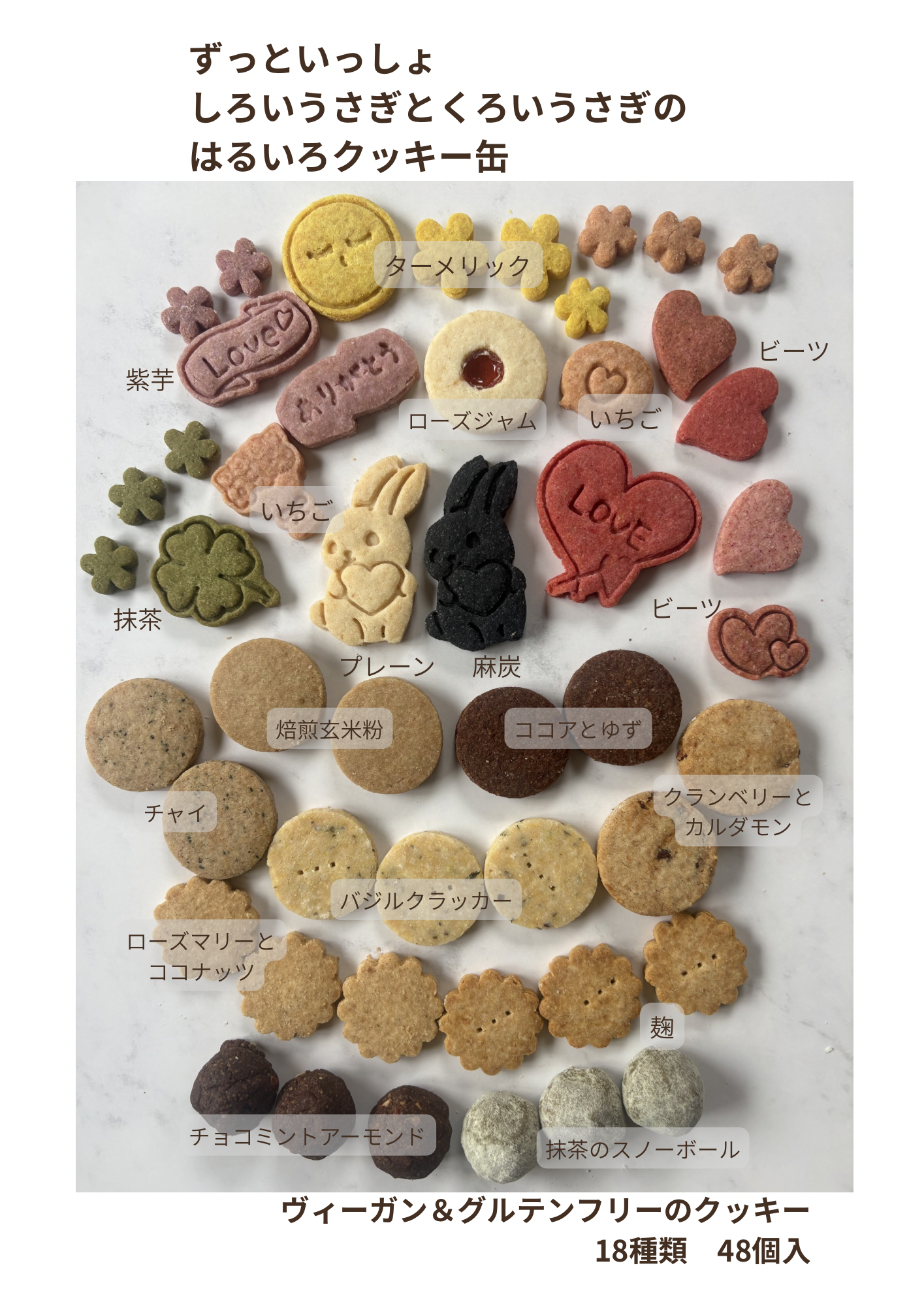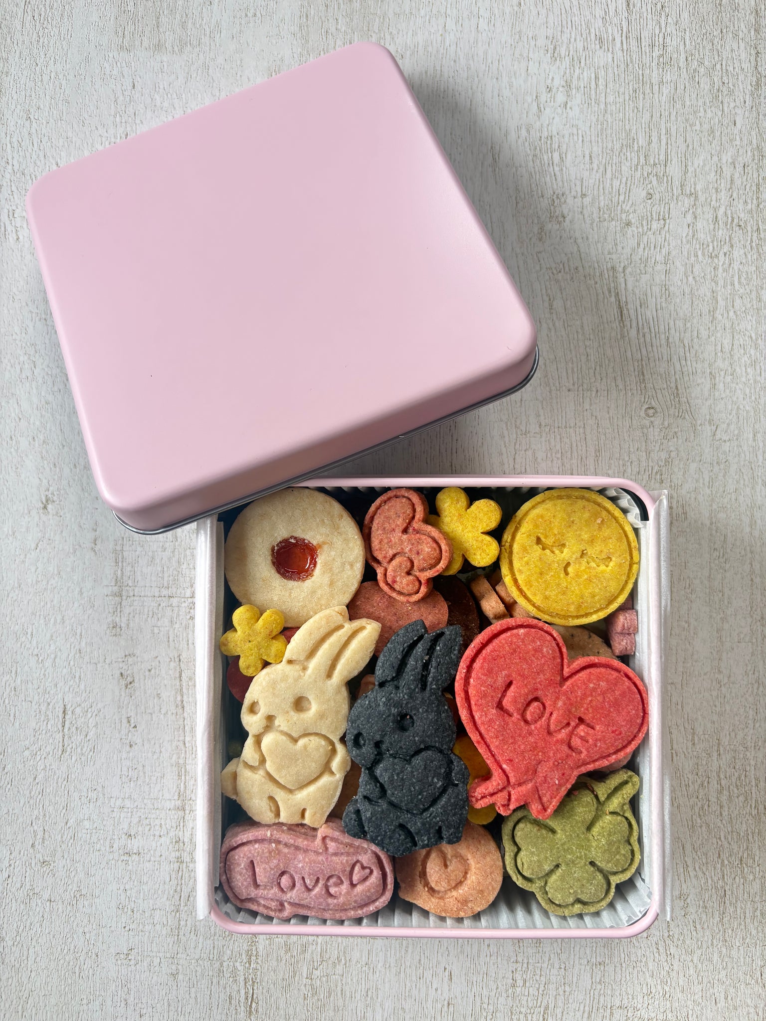 野菜や果物の自然な色合いの、カラフルで可愛いクッキーを詰め合わせた、ヴィーガン&グルテンフリーのクッキー缶は、贈り物にも喜ばれます。