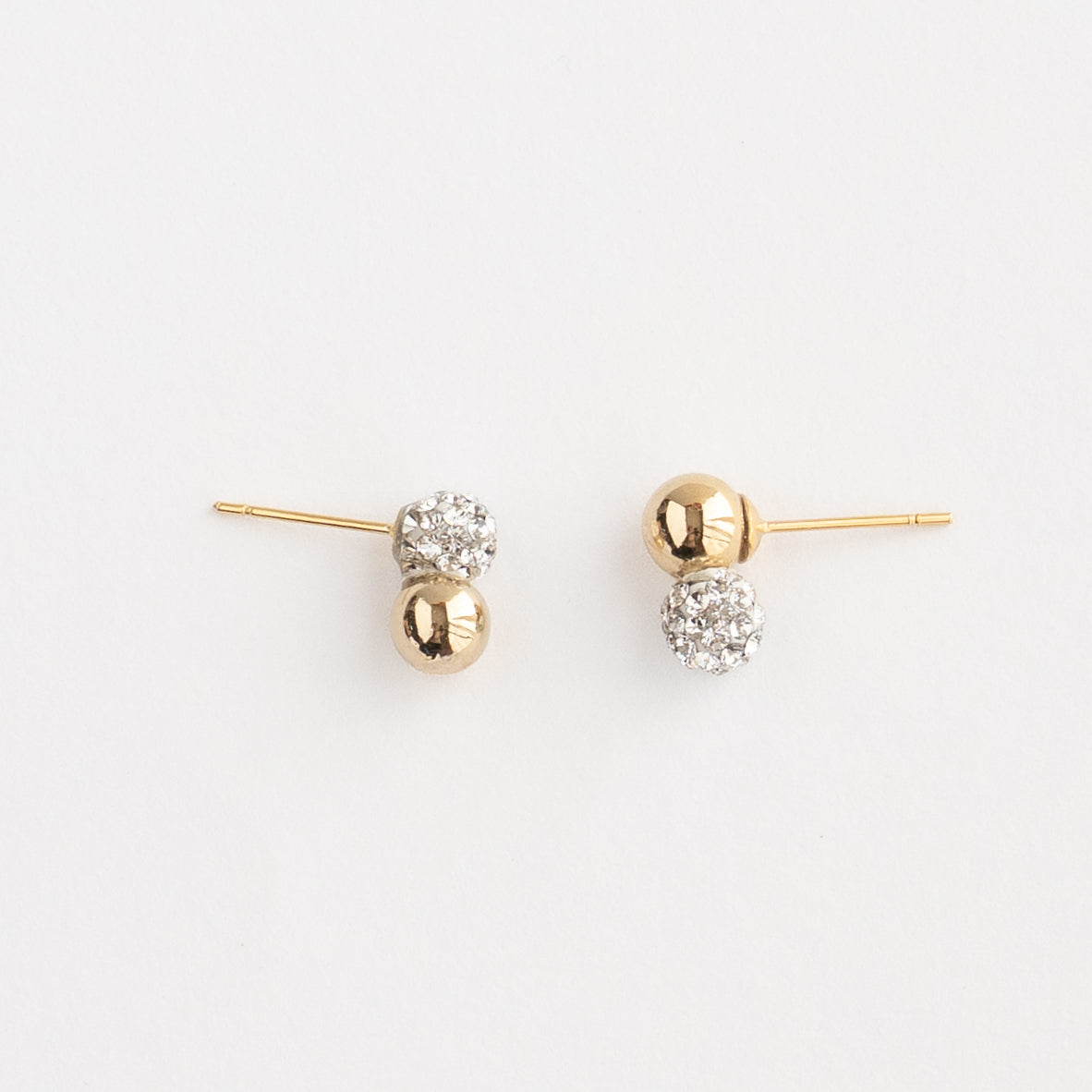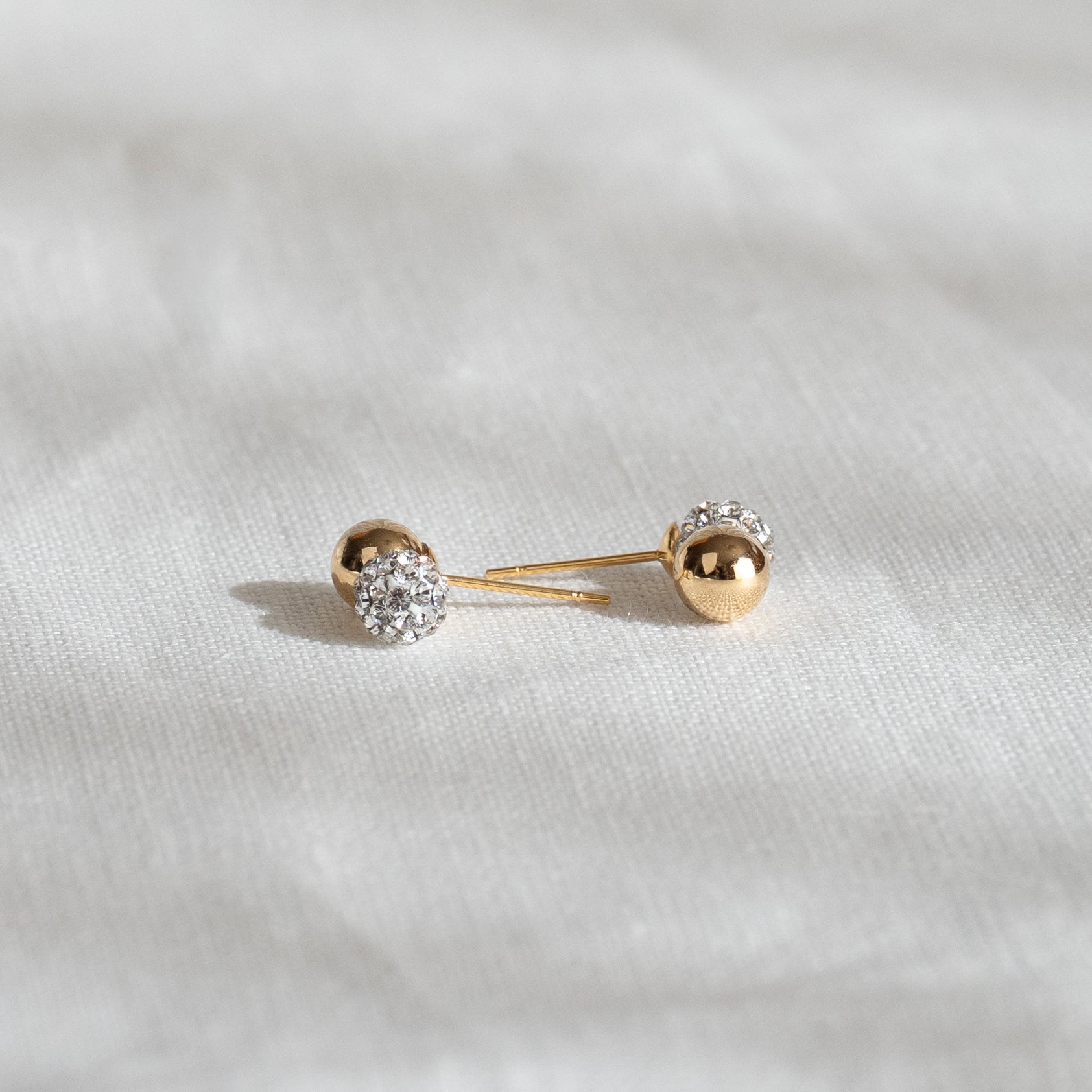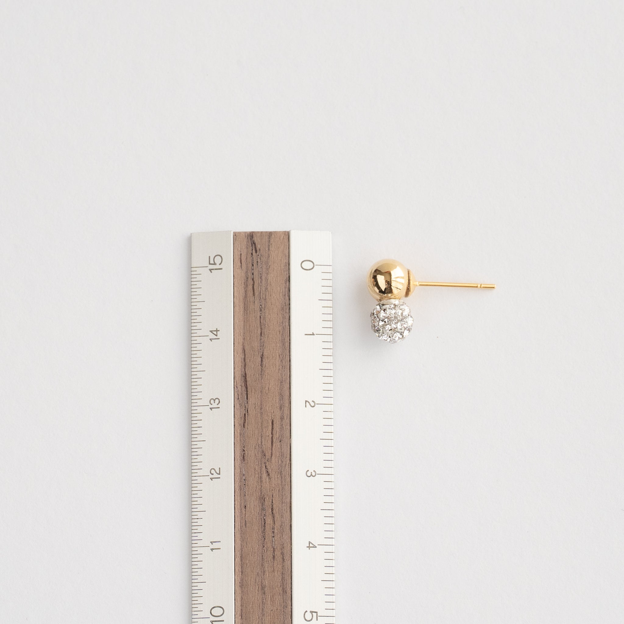 小さなサイズの中に、クリスタルガラスの繊細なきらめきとゴールドボールの落ち着いた艶をぎゅっと閉じ込めた耳飾りです。派手さはないけれどきちんと感と上品さを残したデザイン。
