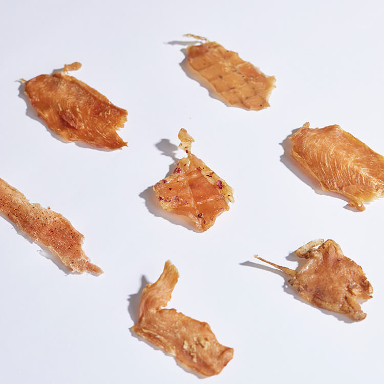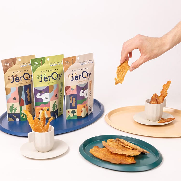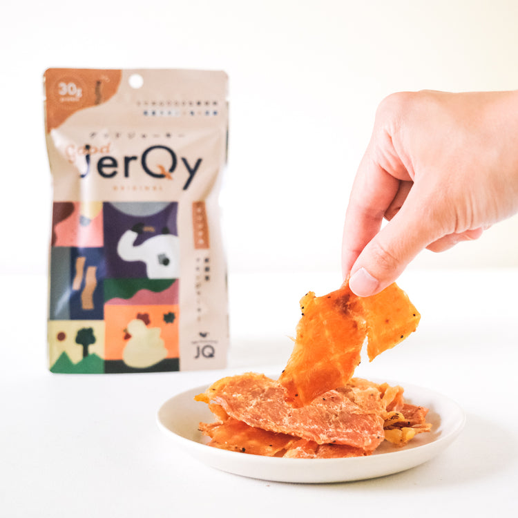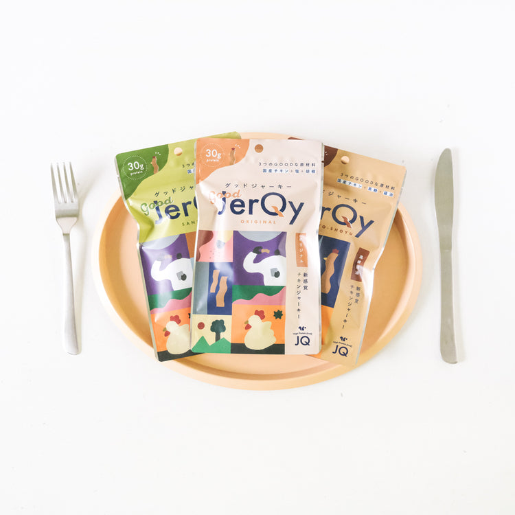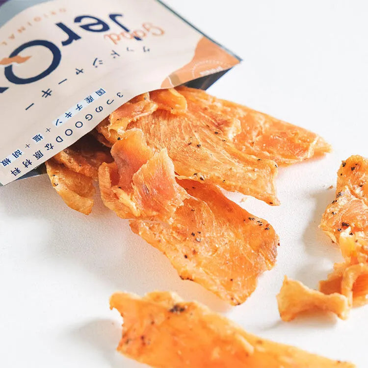 人工添加物を一切使わずに作った、噛めば噛むほどうまみ広がる国産チキンジャーキーです。「引き算のおいしさ」にこだわったスナックミーのオリジナル商品『good JerQy (グッドジャーキー)』シリーズより、以下などのフレーバーを25袋ランダムで詰め合わせてお届けします。低カロリー・高たんぱくの減塩仕様で、原材料はお醤油や胡椒などとってもシンプル。お酒のおとものほか、おやつや軽食としてもおすすめです。