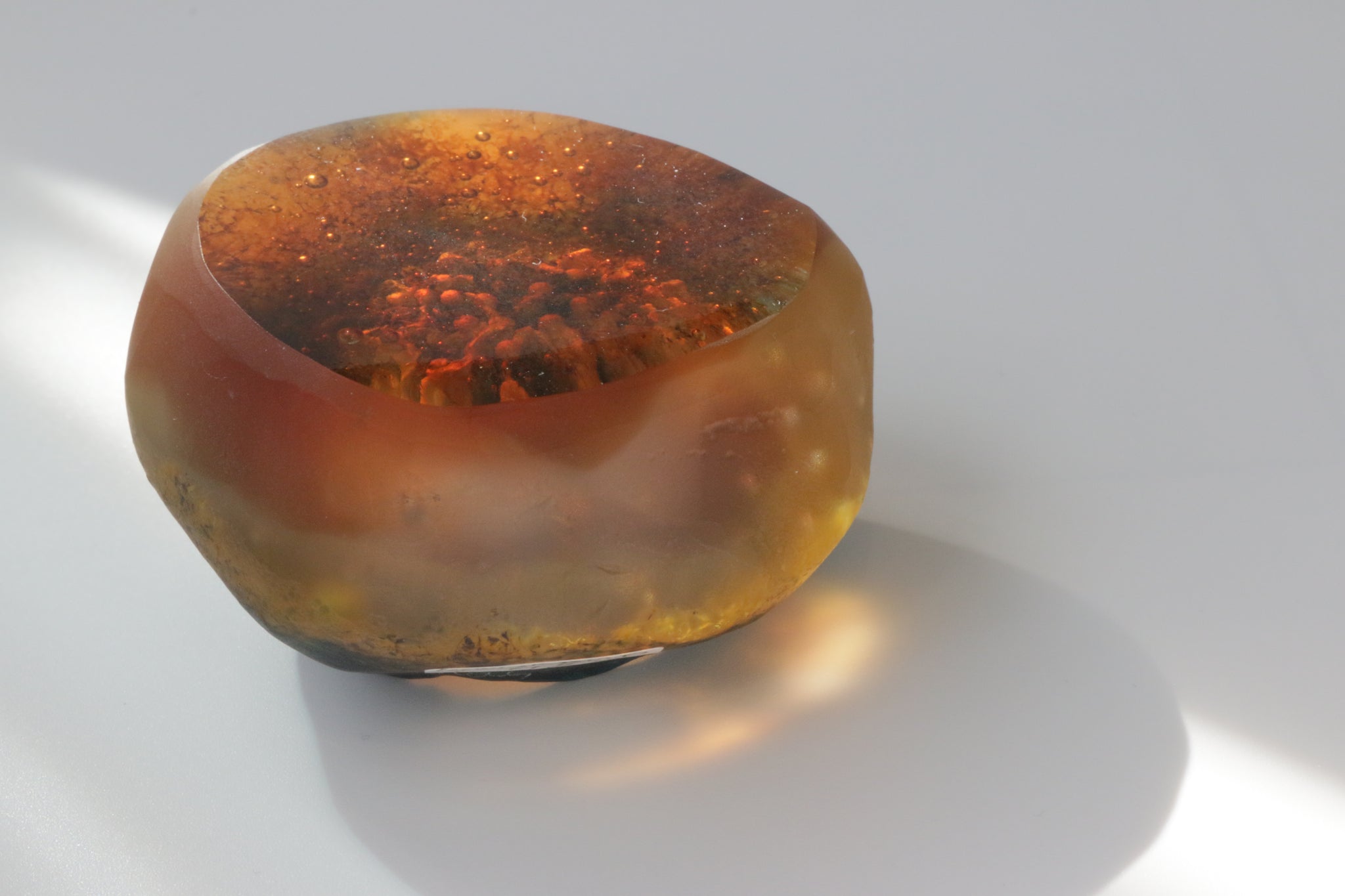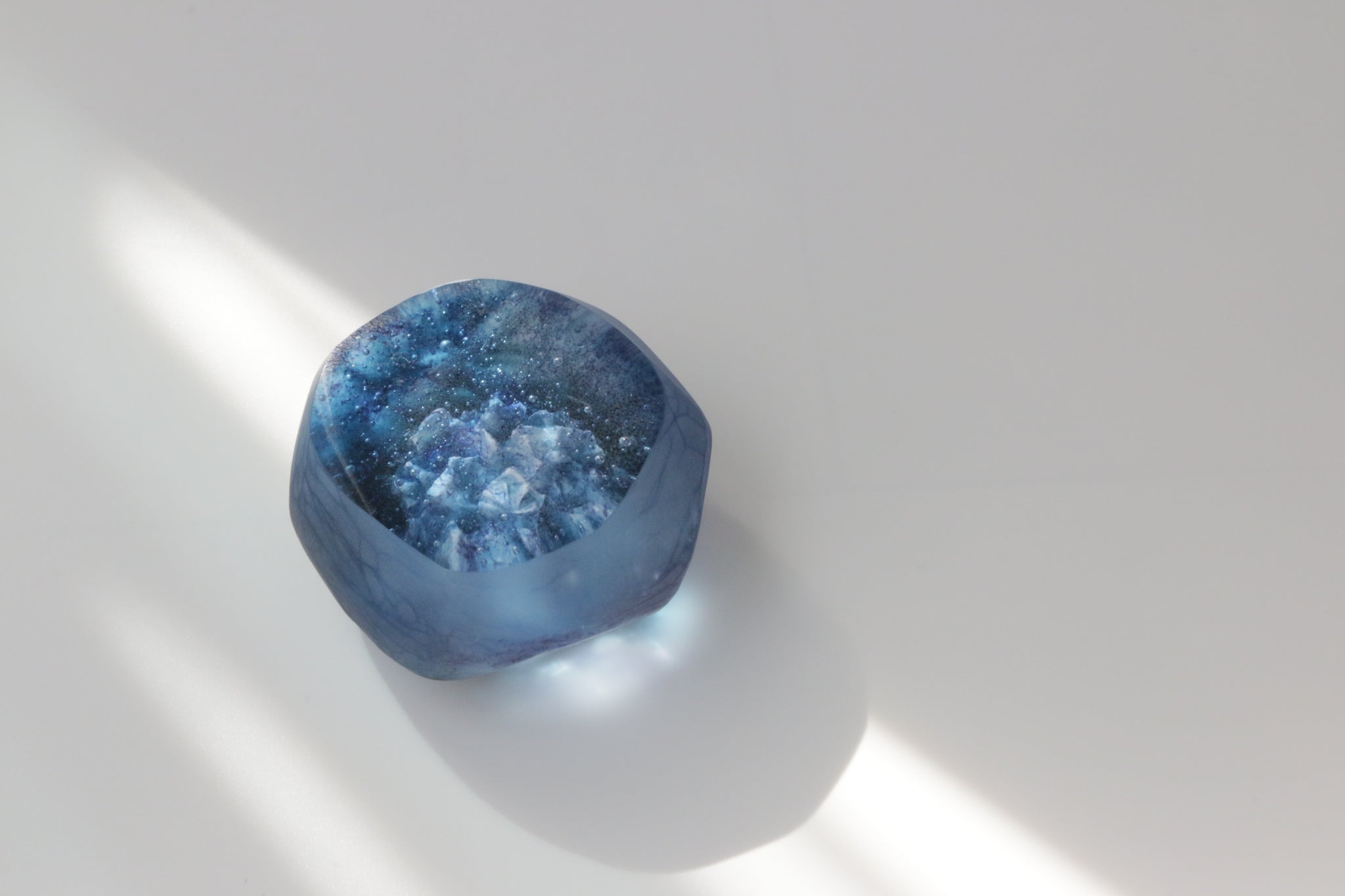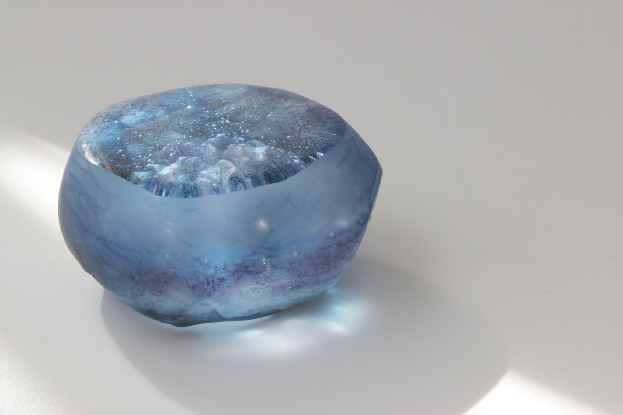 水のゆらめき、気泡、深み。吸い込まれるような奥行きに惹かれ、水の世界をイメージした作品をガラス鋳造技法で制作しています。