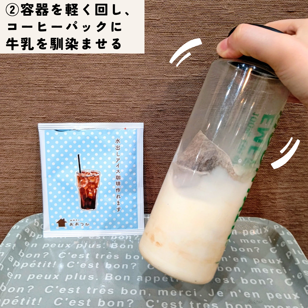 作り方はいたって簡単、パックを水に入れるだけでアイスコーヒーが牛乳に入れるとミルクブリューコーヒーが作れます。