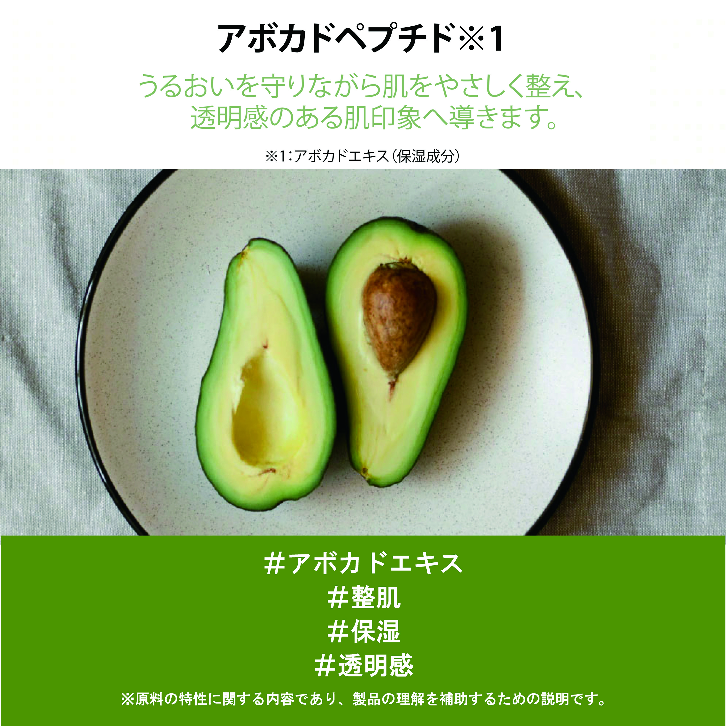 肌をやさしく整え、透明感のある肌印象へ導くアボカドペプチド※1配合。
