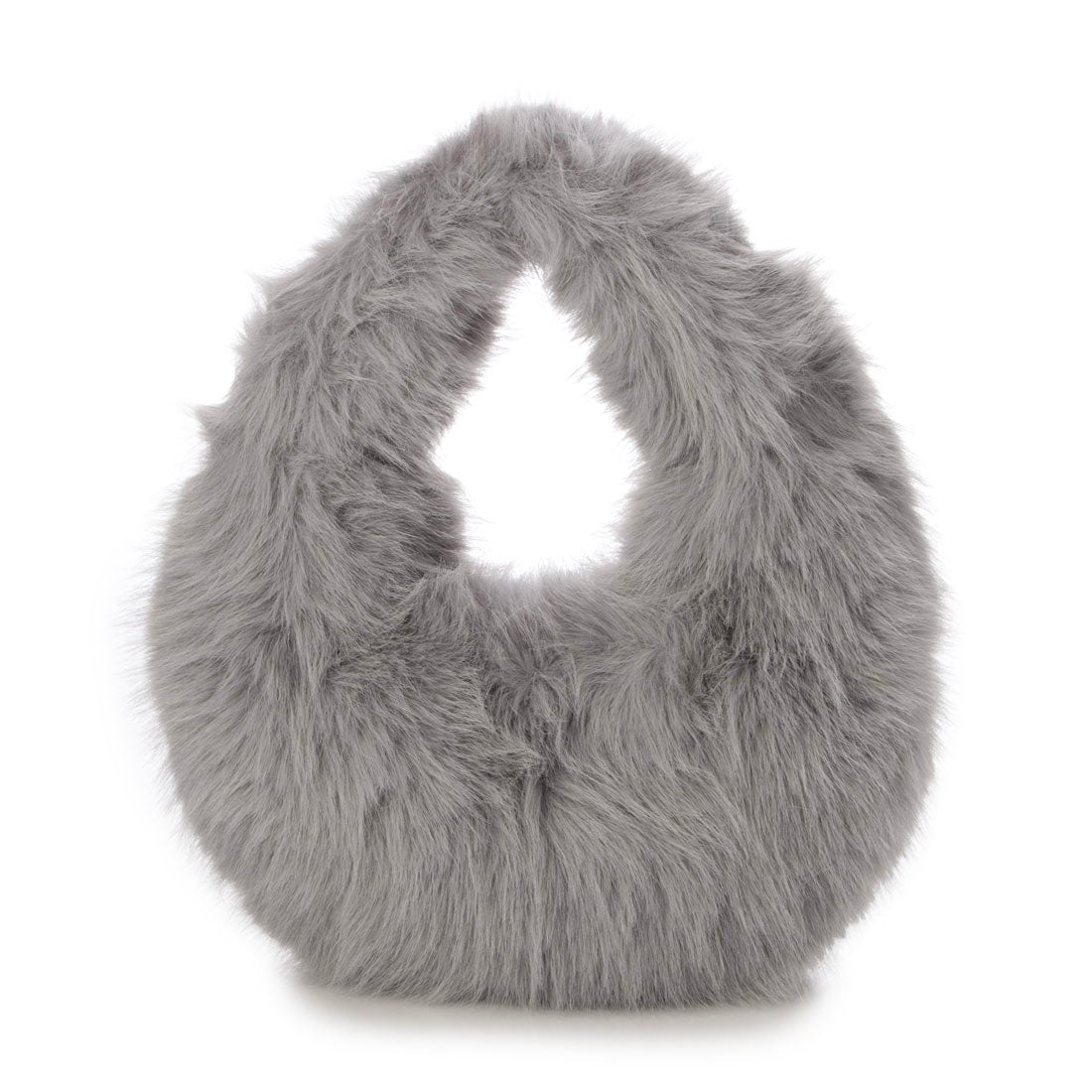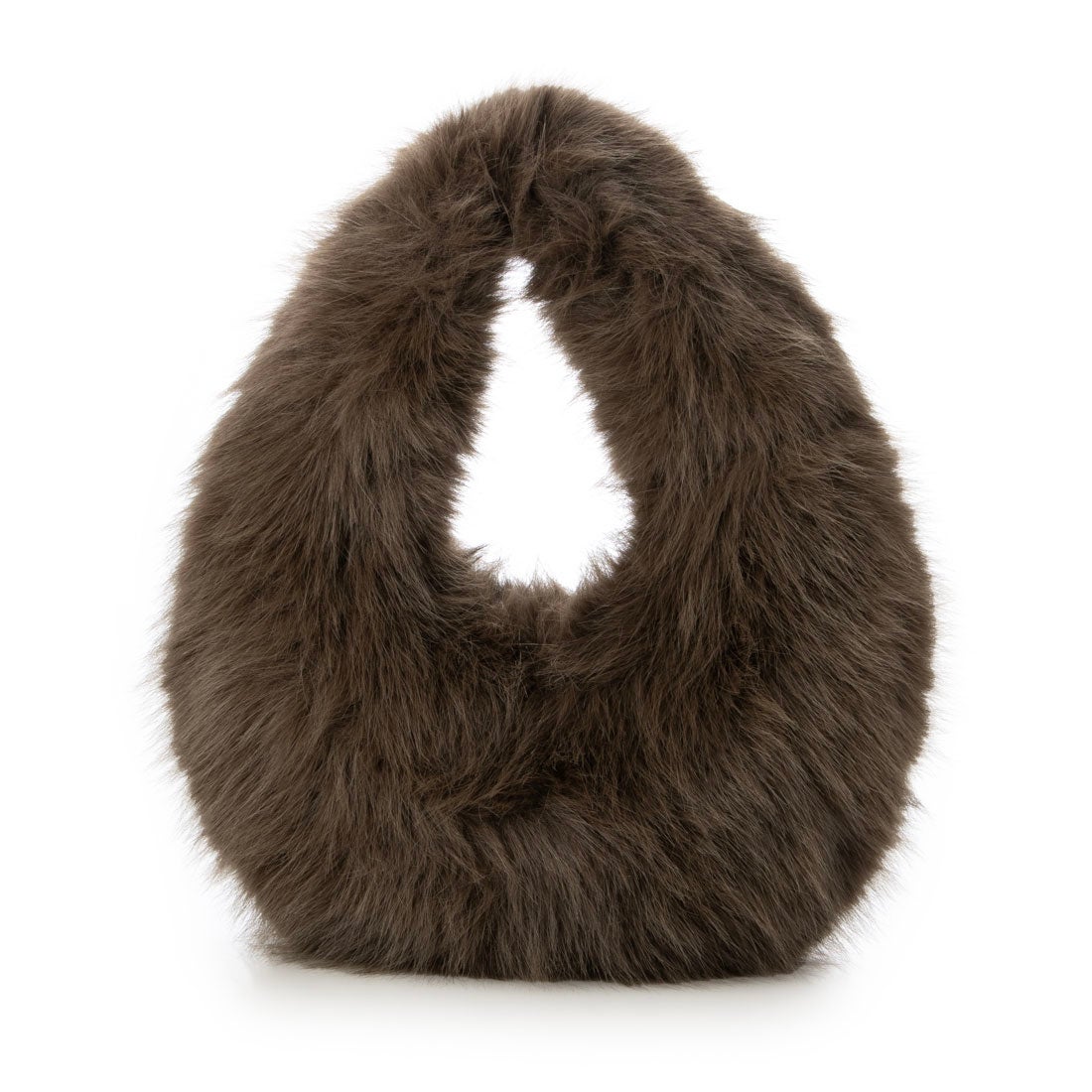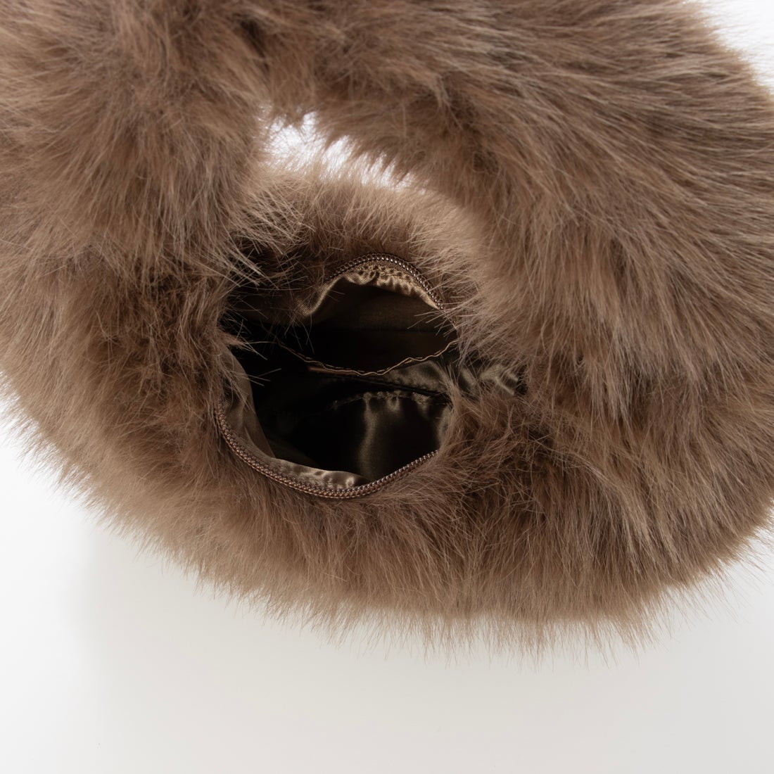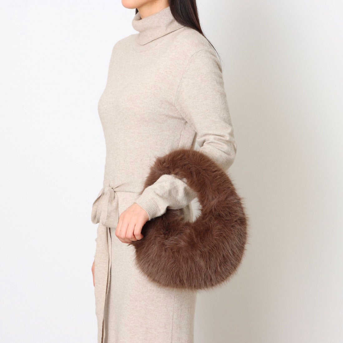 とても手触りの良いフェイクファーを使ったオーバル型の手提げバッグ。
