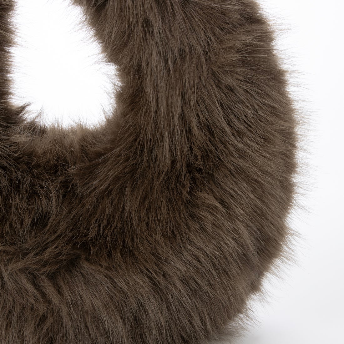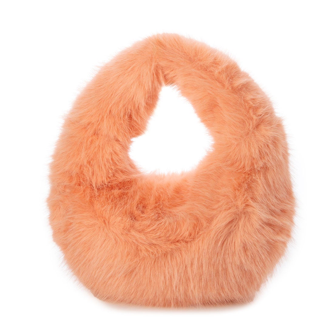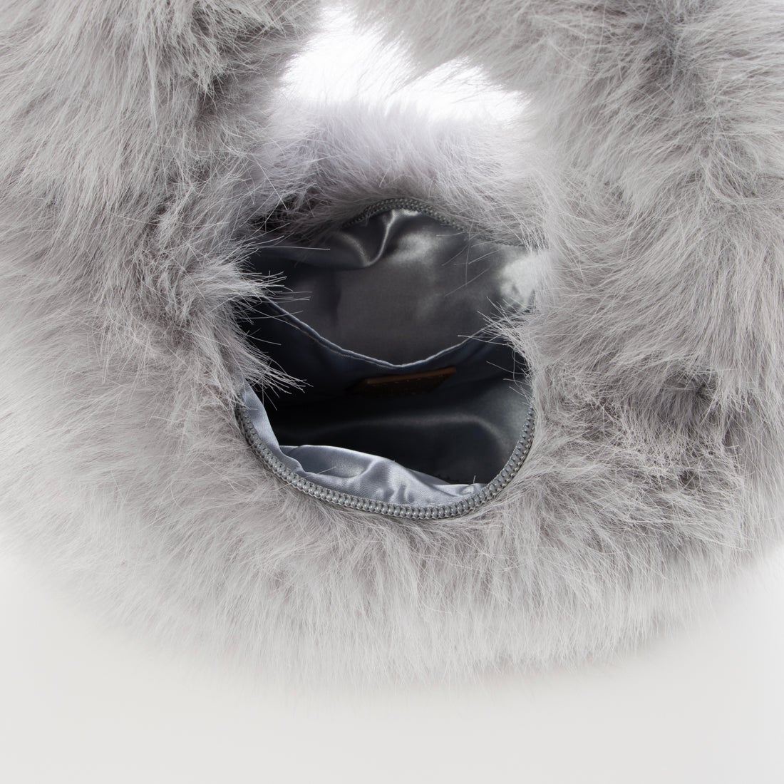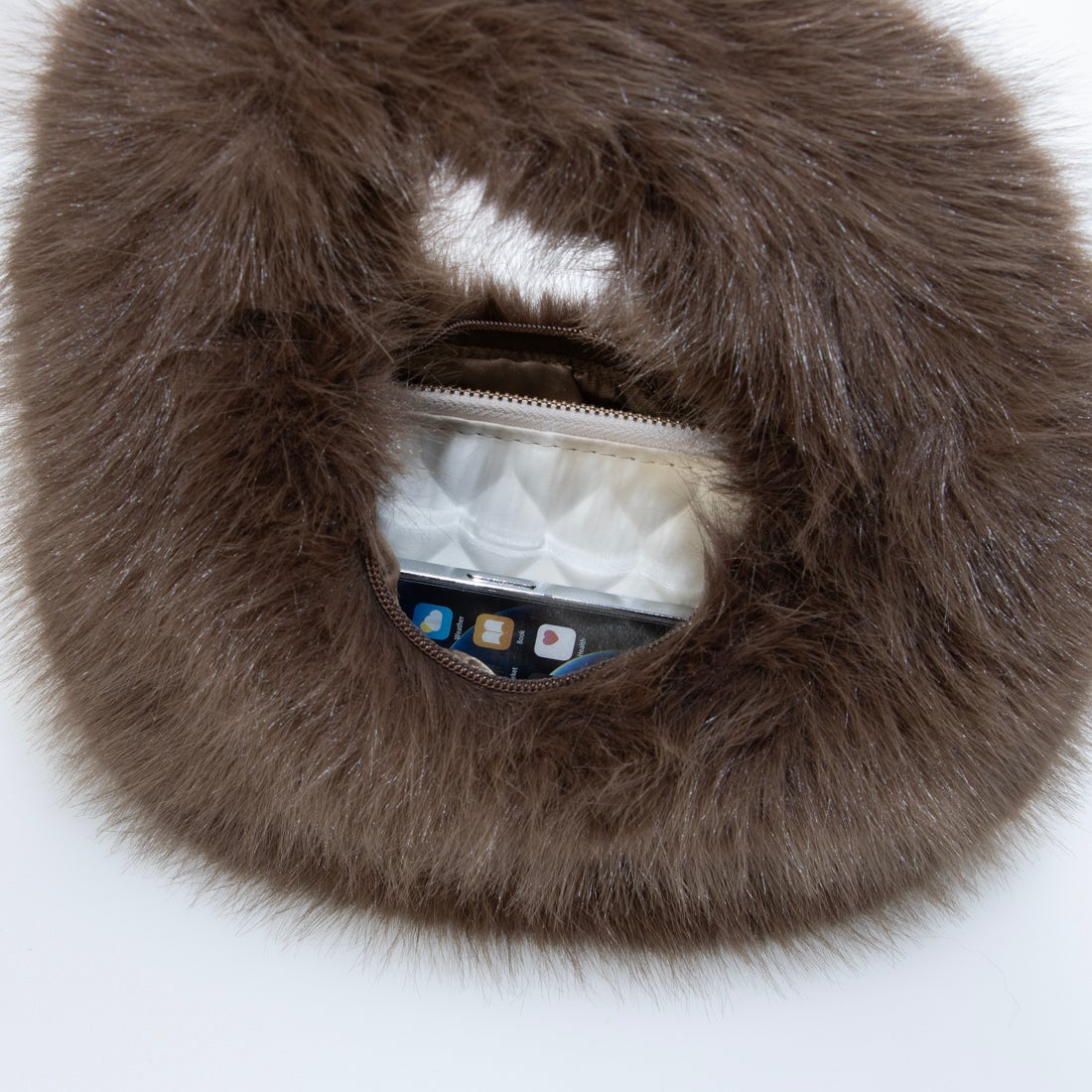 とても手触りの良いフェイクファーを使ったオーバル型の手提げバッグ。