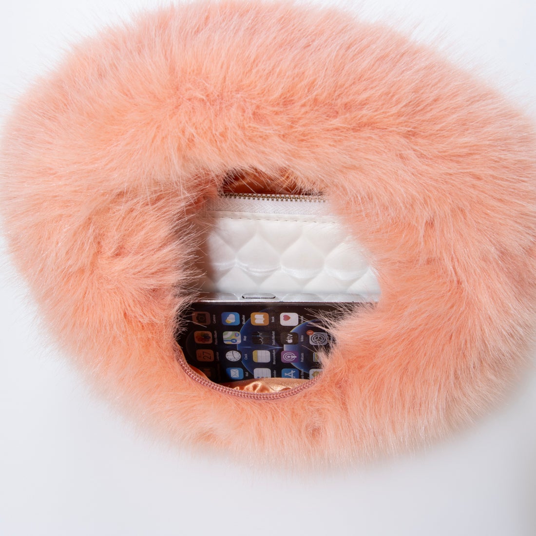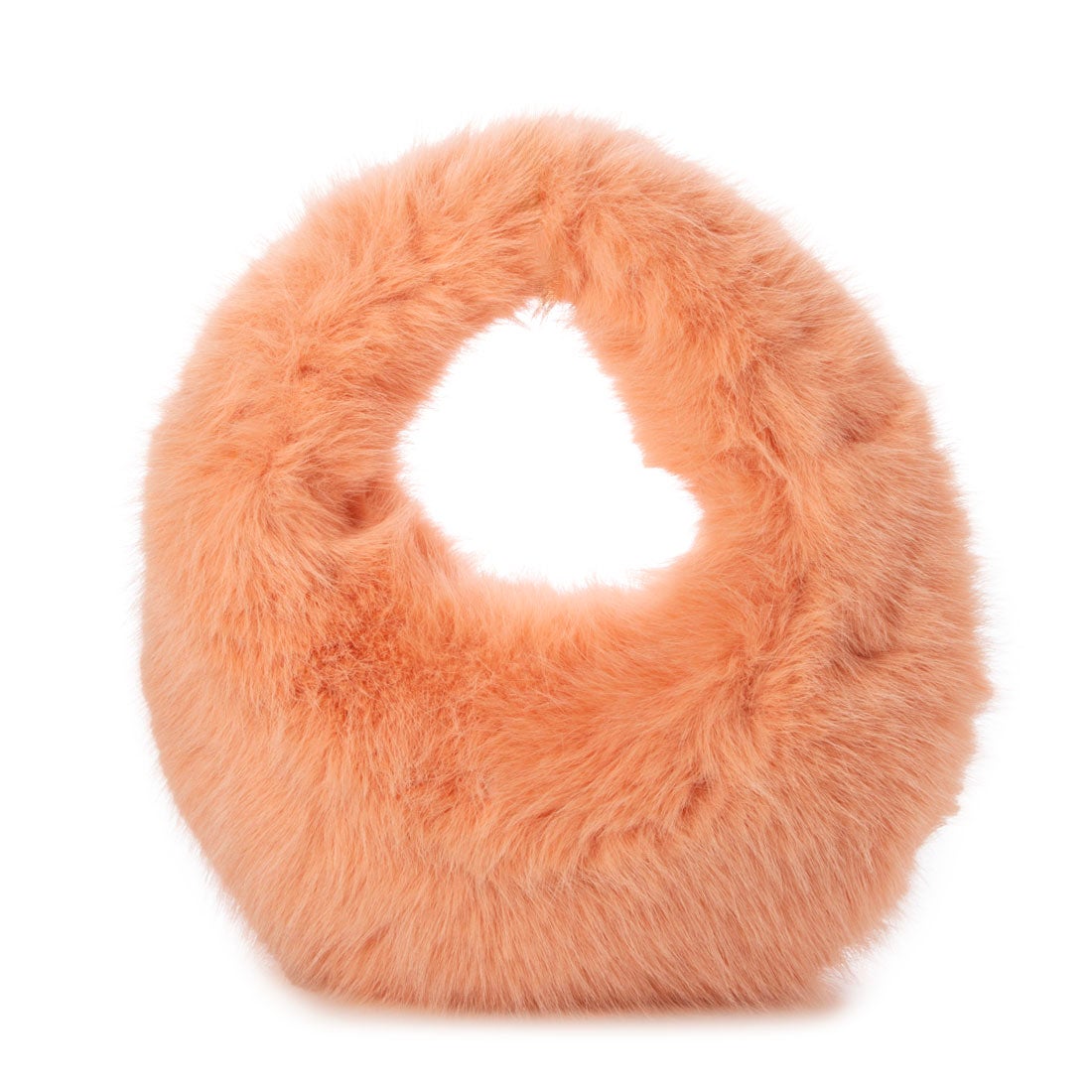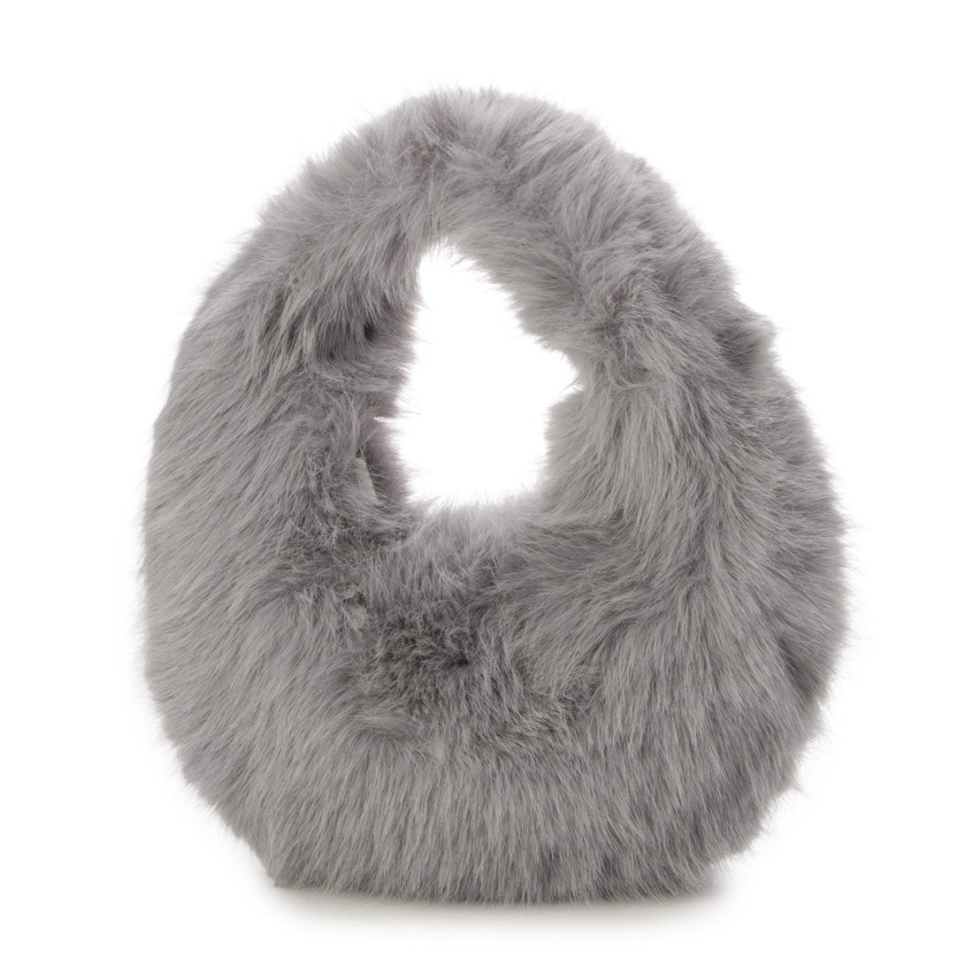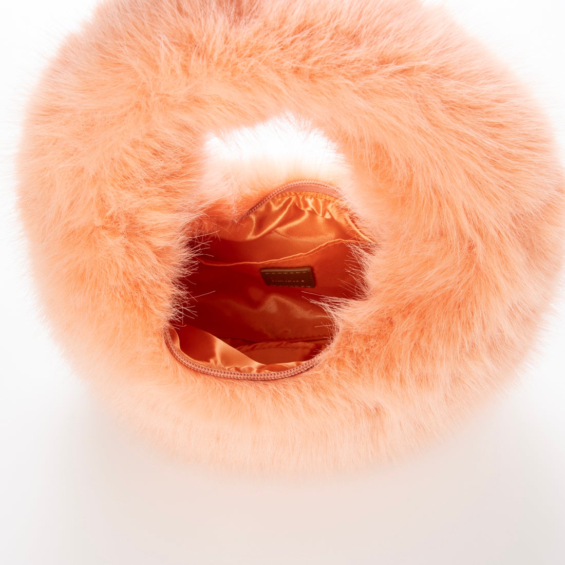とても手触りの良いフェイクファーを使ったオーバル型の手提げバッグ。
