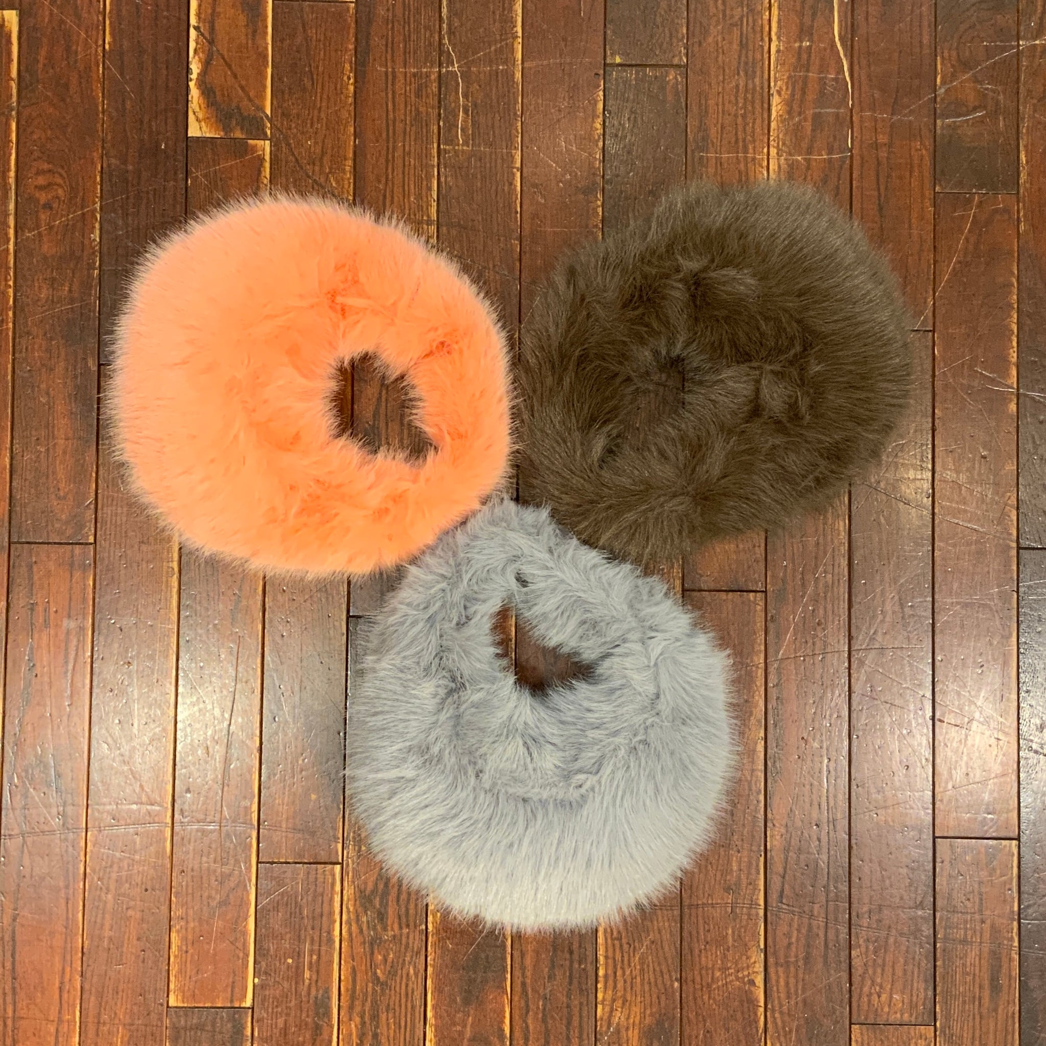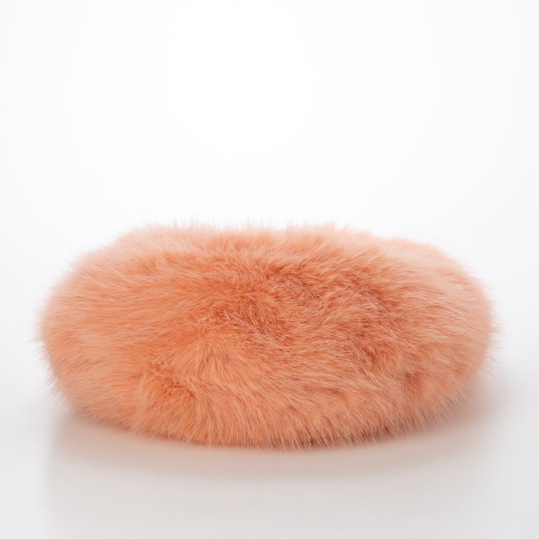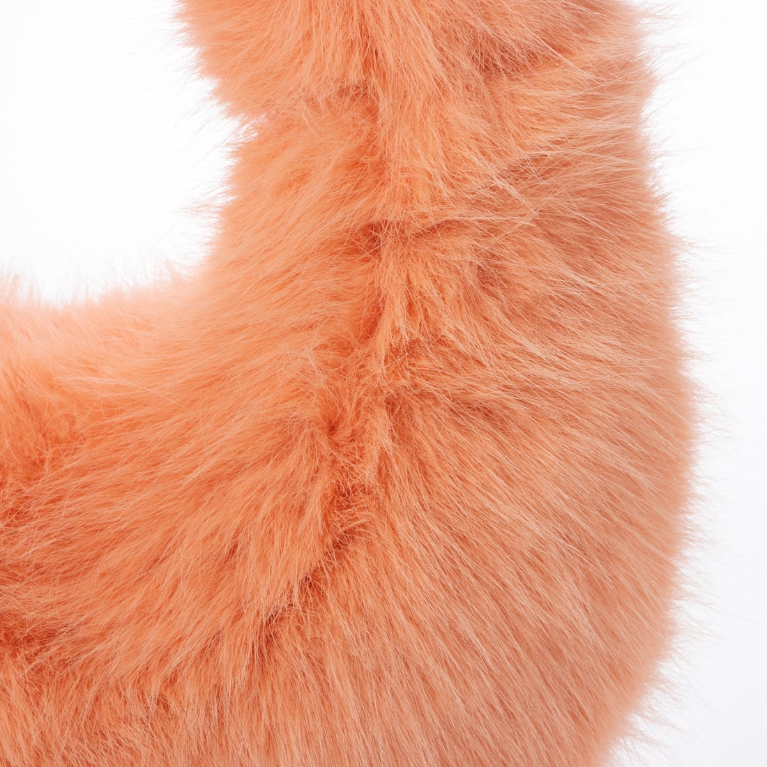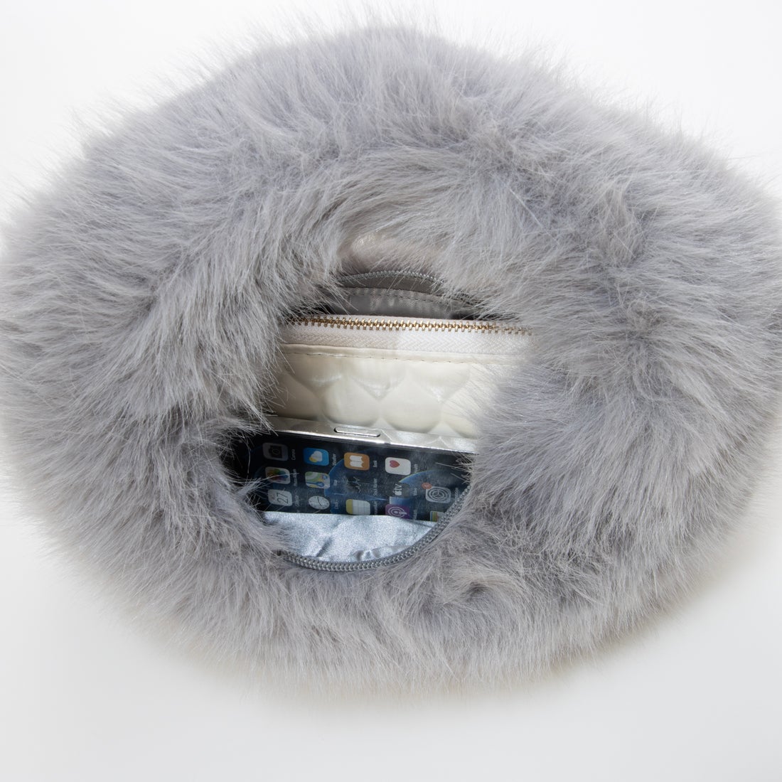 とても手触りの良いフェイクファーを使ったオーバル型の手提げバッグ。