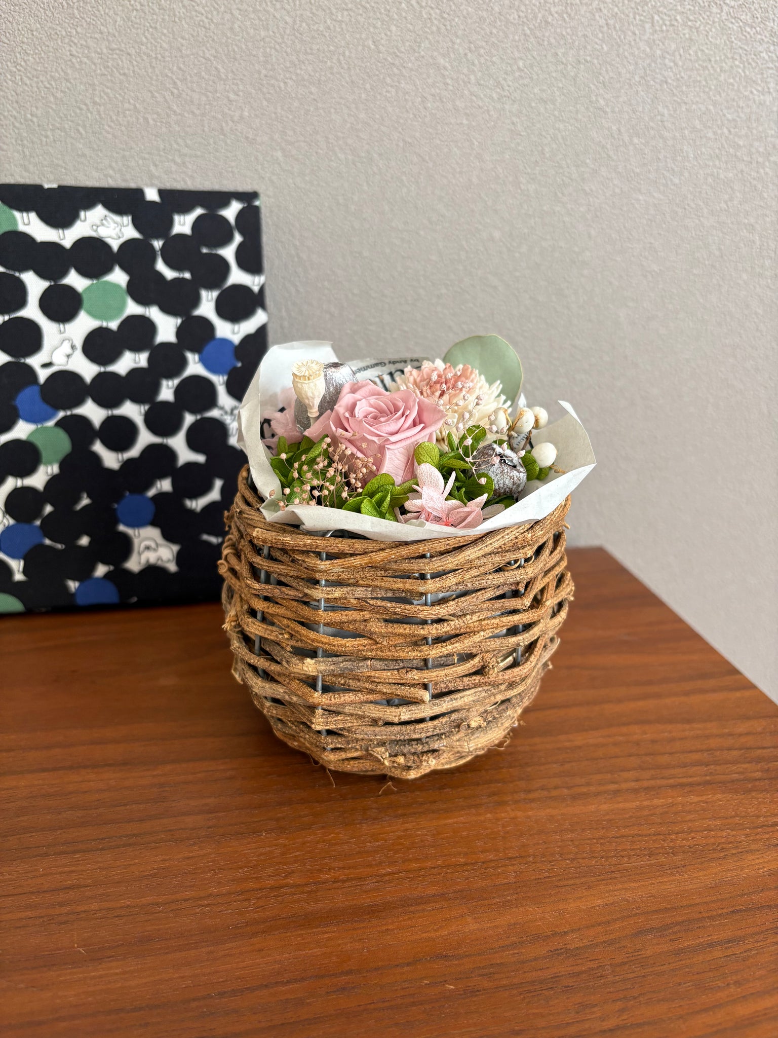 コロンとした籠にナチュラルにアレンジしました