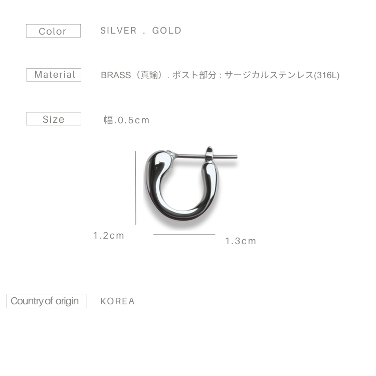 ころんとしたドロップシルエットが、耳元にやさしいニュアンスを添えるフープピアス。
