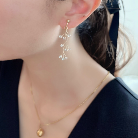 揺れるロングビーズフリンジピアス 夜空の一番星 ライトブルー 【シルバー925 ピアスポスト】 |Ahki Beadwork(アーキービーズワーク)