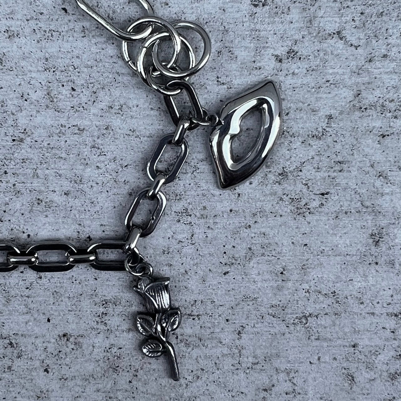 無機質なシルバーチェーンに、チャームを贅沢にあしらったブレスレット。