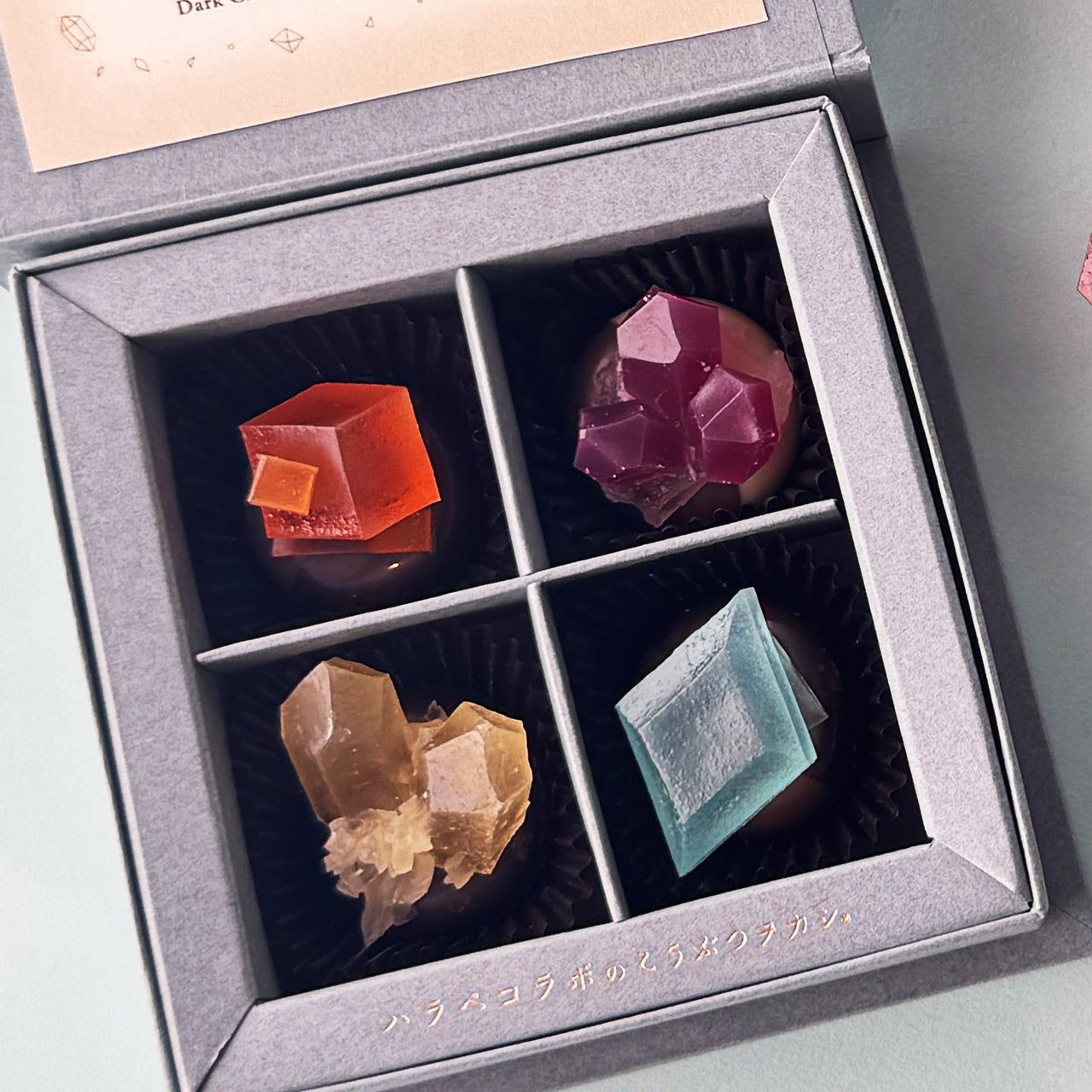 鉱物ショコラ 4粒 BG(チョコレート×琥珀糖)|ハラペコラボ