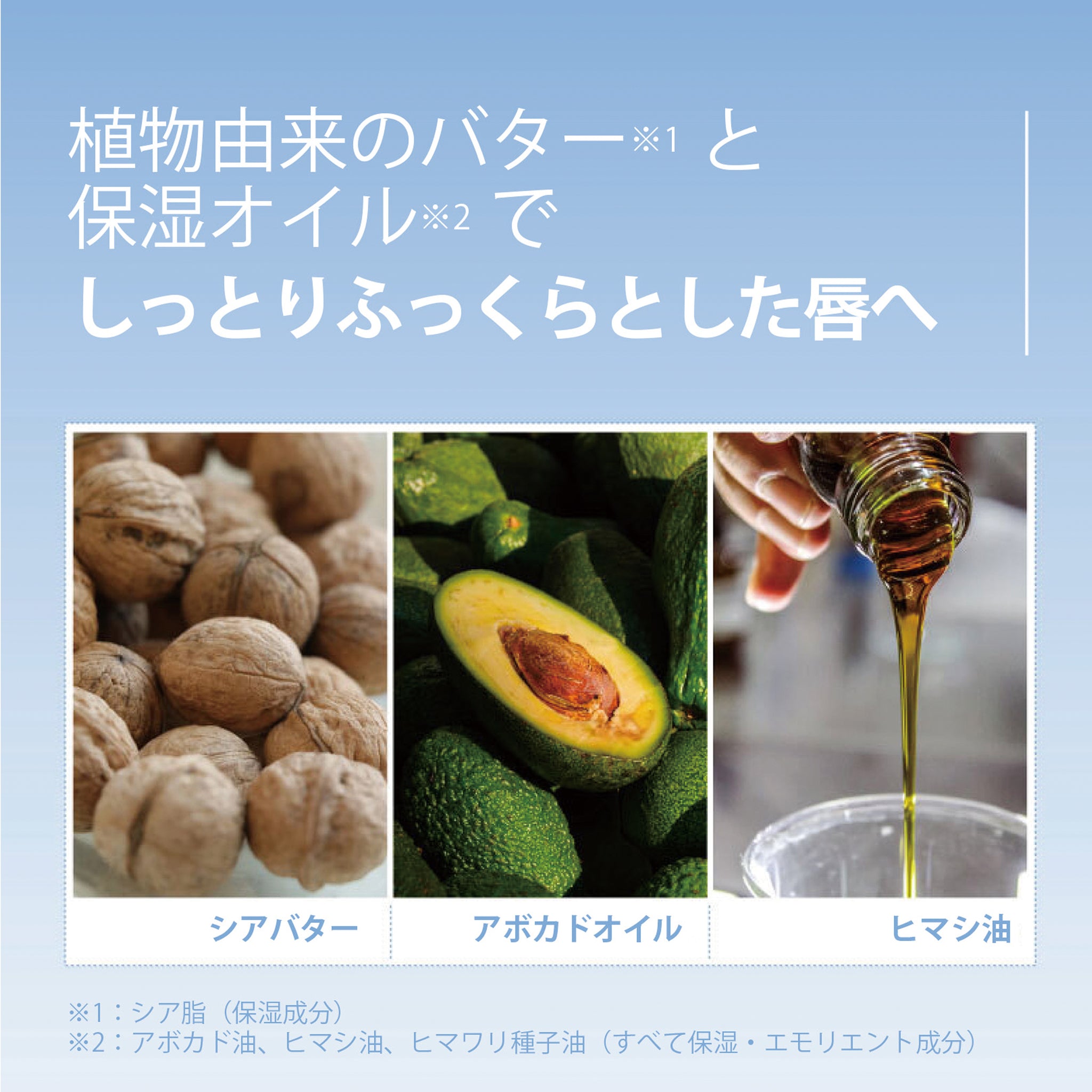 リップバームは植物由来のバター※1と保湿オイル※2配合。