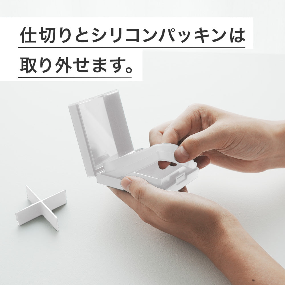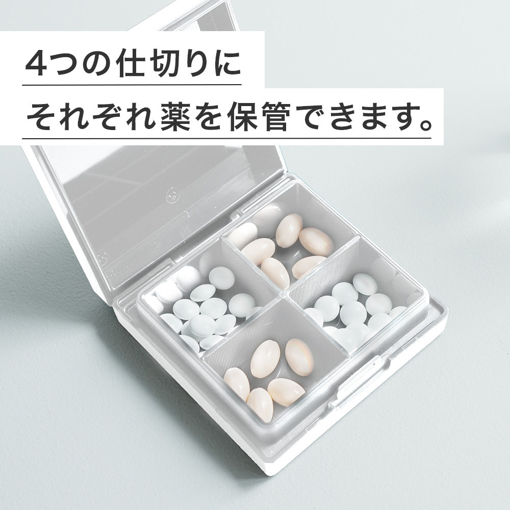 【4つの仕切りで分けて保管可能】取りはずしも可能な仕切り付きで、最大4種類に錠剤を分けての保管が可能です。
