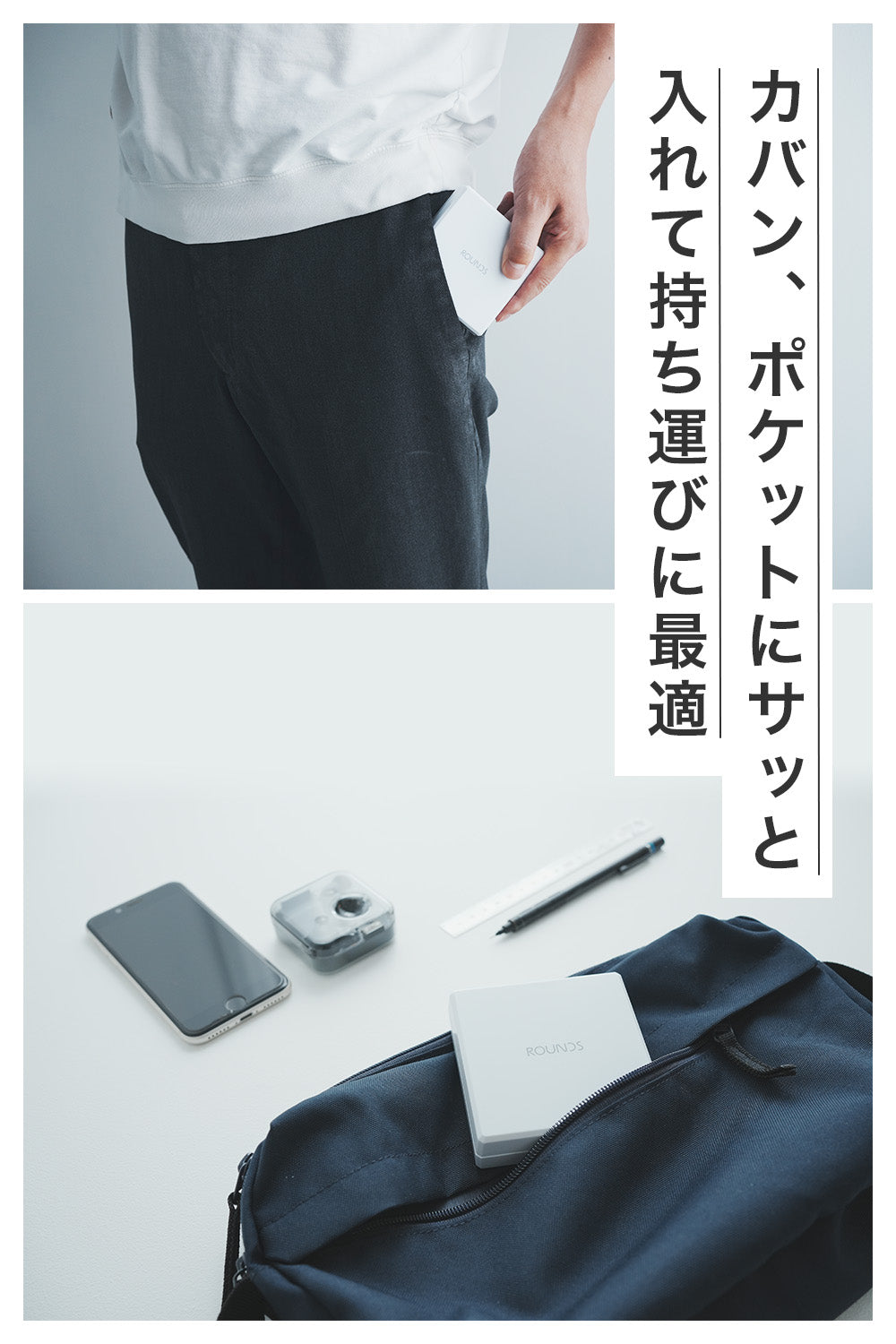 【手のひらサイズで携帯に便利】横8.4×縦8.4cm高さ2.6cmのコンパクト設計だから、どこへでも手軽に持ち運びできます。