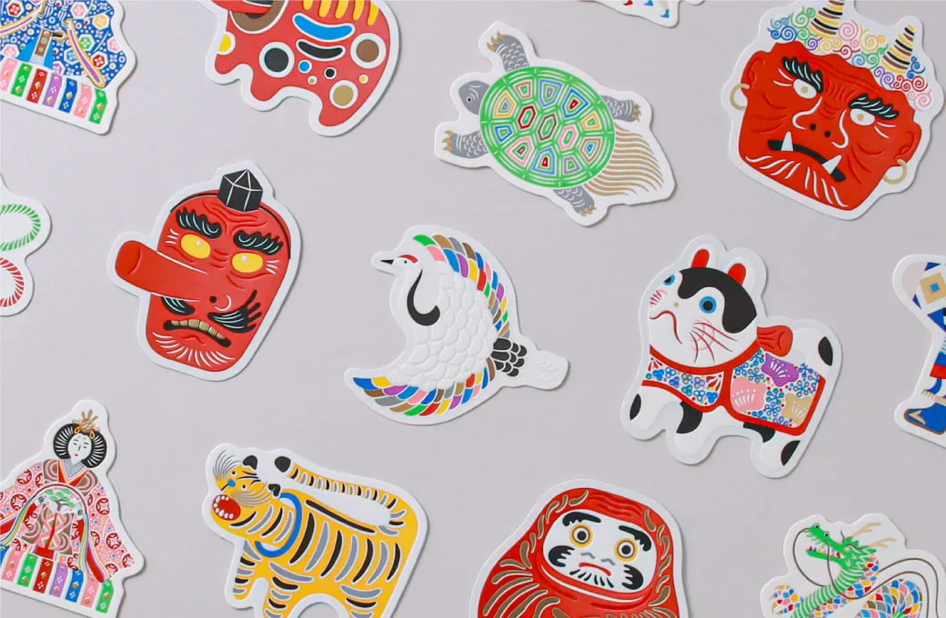 伝統的な活版印刷で一色ずつ刷り重ねた72の幸運・良縁・お守りのモチーフ。
