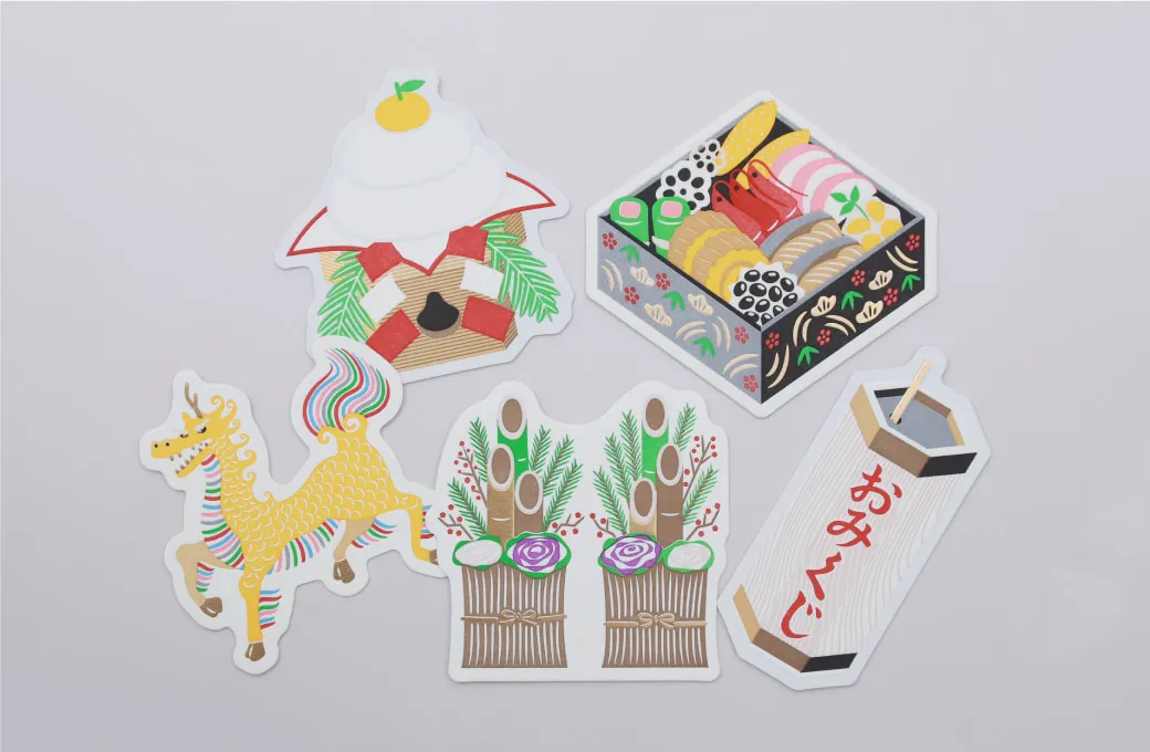 [カード] 画像参照 (モチーフ:鏡餅/おせち/門松/おみくじ/麒麟(きりん) サイズ:約100×100mm以内)