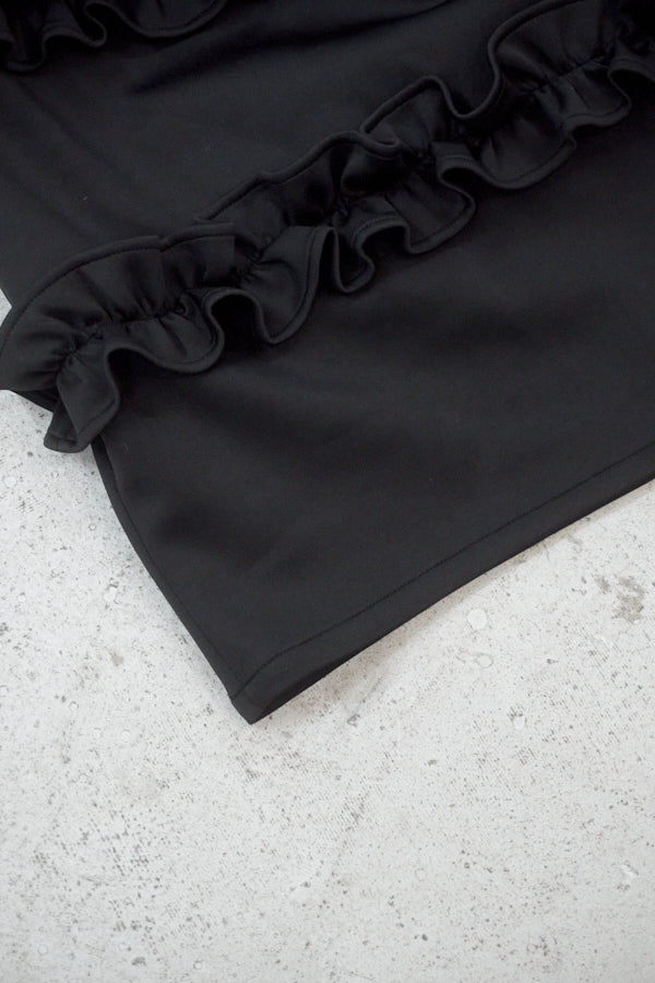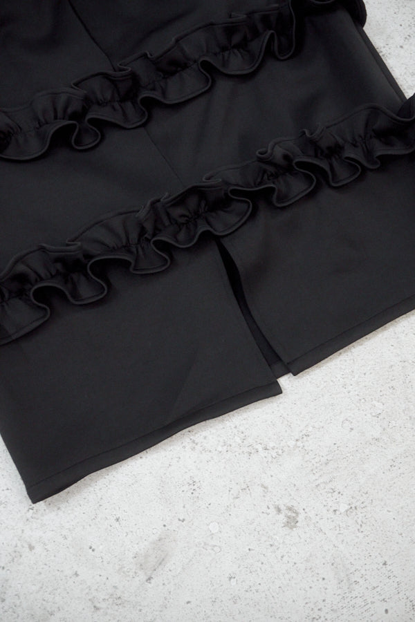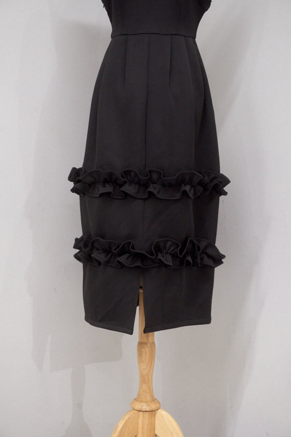 裾は後ろにスリットが入っているため 動きにくさもありません。 肩紐で長さの調節が可能なので 身長問わず着用いただけます。
