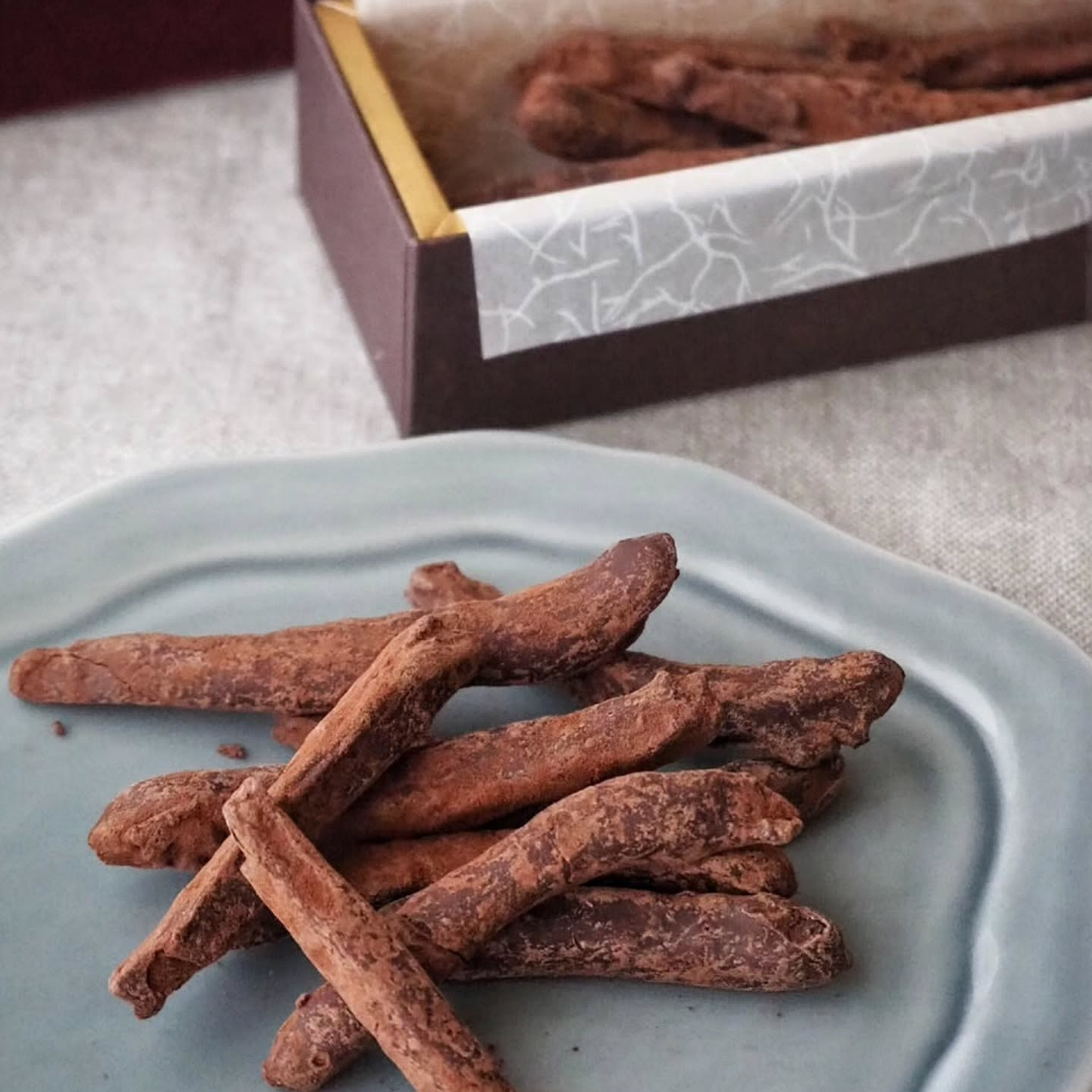 • 柔らかいオレンジピールを一本一本丁寧にチョコレートコーティング