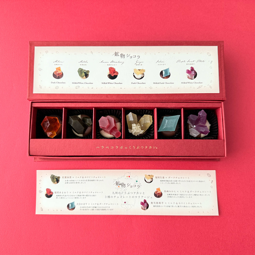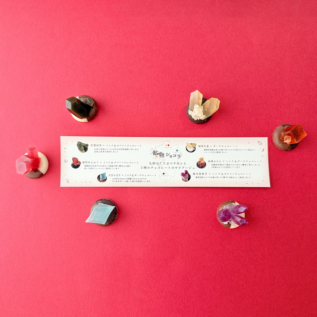 “九州産の厳選素材の美味しさを引き出した琥珀糖”として好評の「九州のこうぶつヲカシ」とチョコレートを掛け合わせた【鉱物ショコラ】が期間限定で登場。