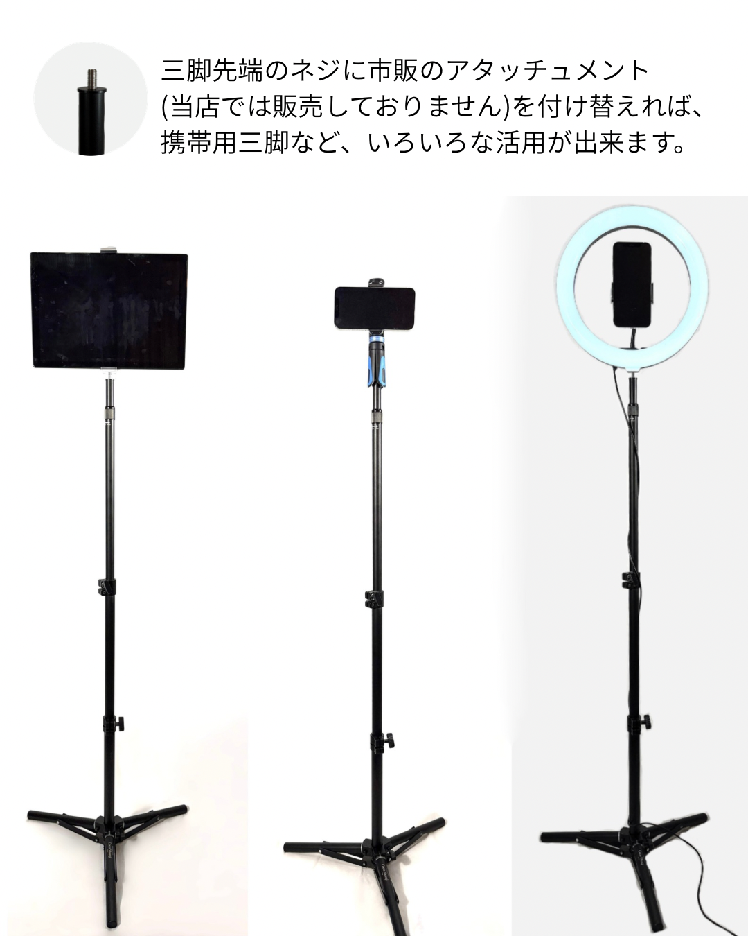 三脚は旅行の際に持参して使ってます。斜め掛けバッグや羽織物掛けをかけておくと便利です。