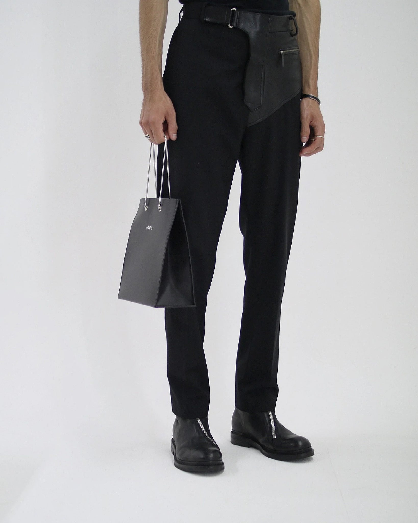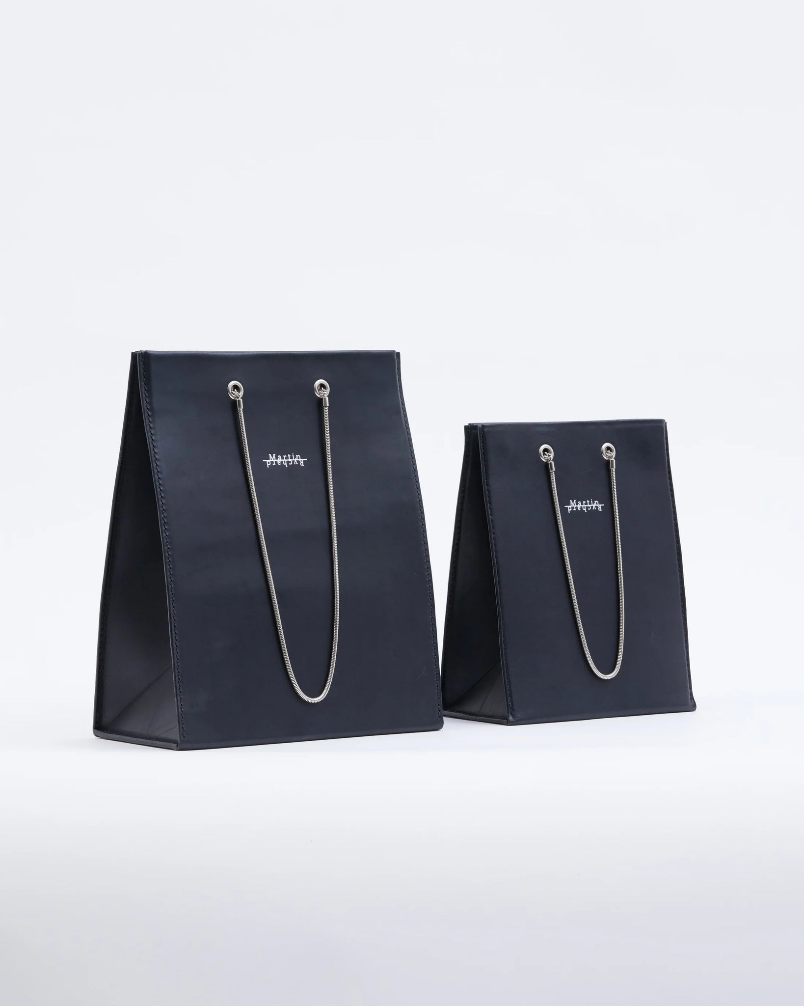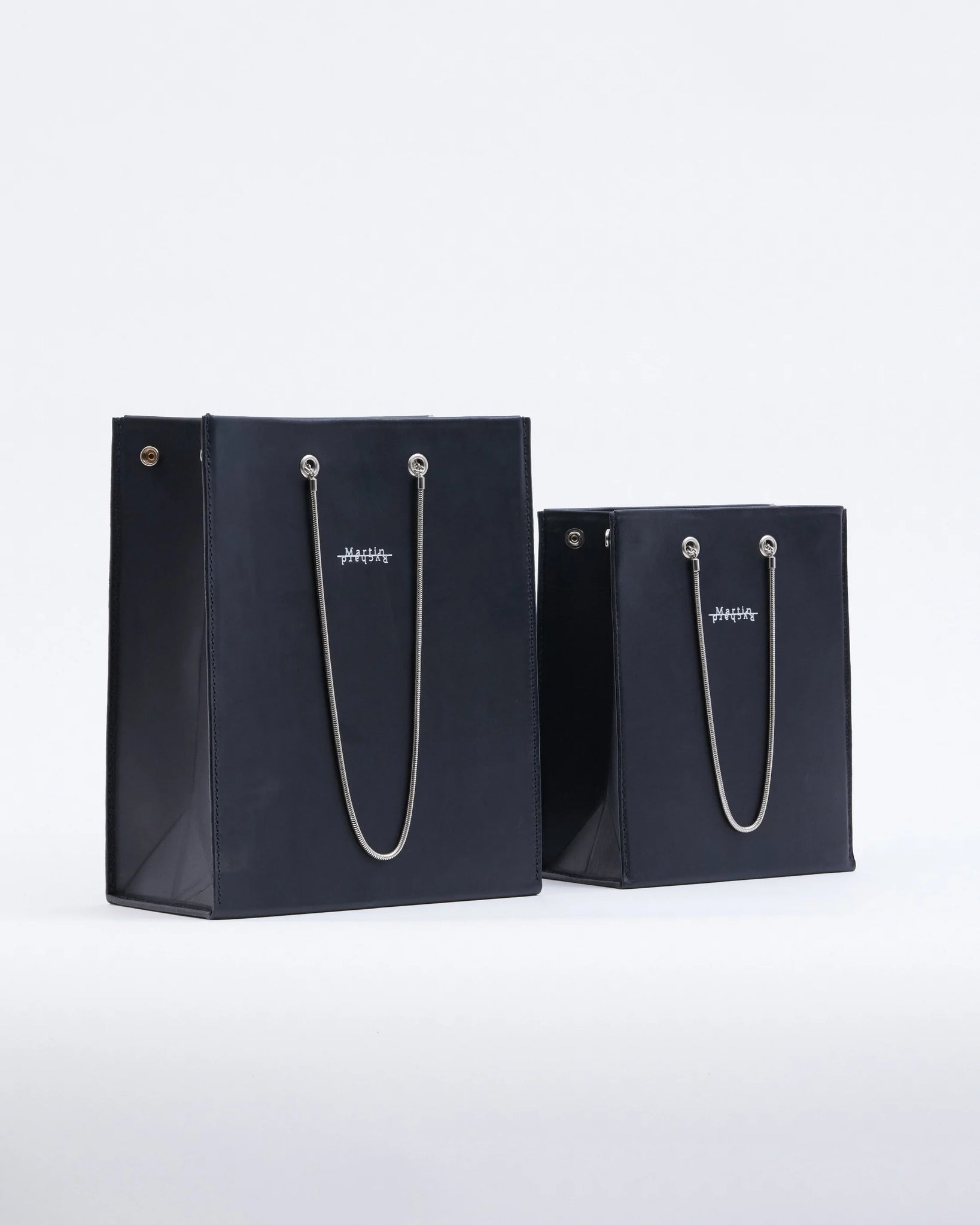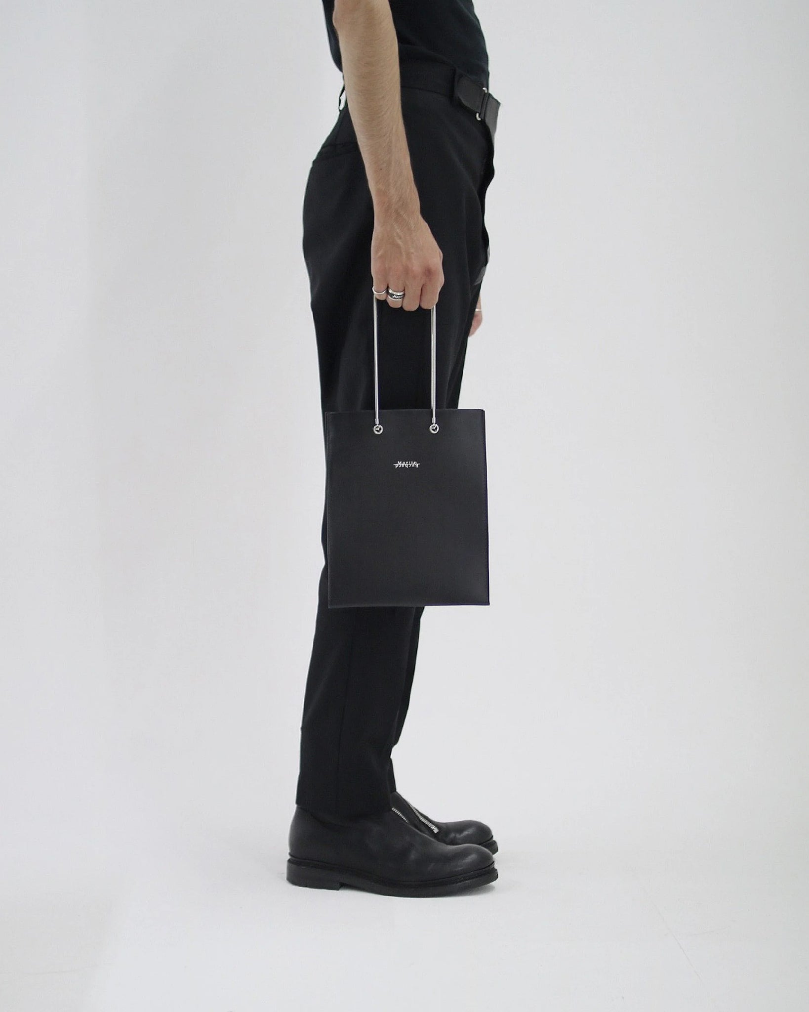 ブランドのショッパーをモチーフに革と金属で造り上げられたレザーショッパー。 存在感がありつつもそれでいてスタイリングの邪魔にならないシンプルで使いやすいバッグ。