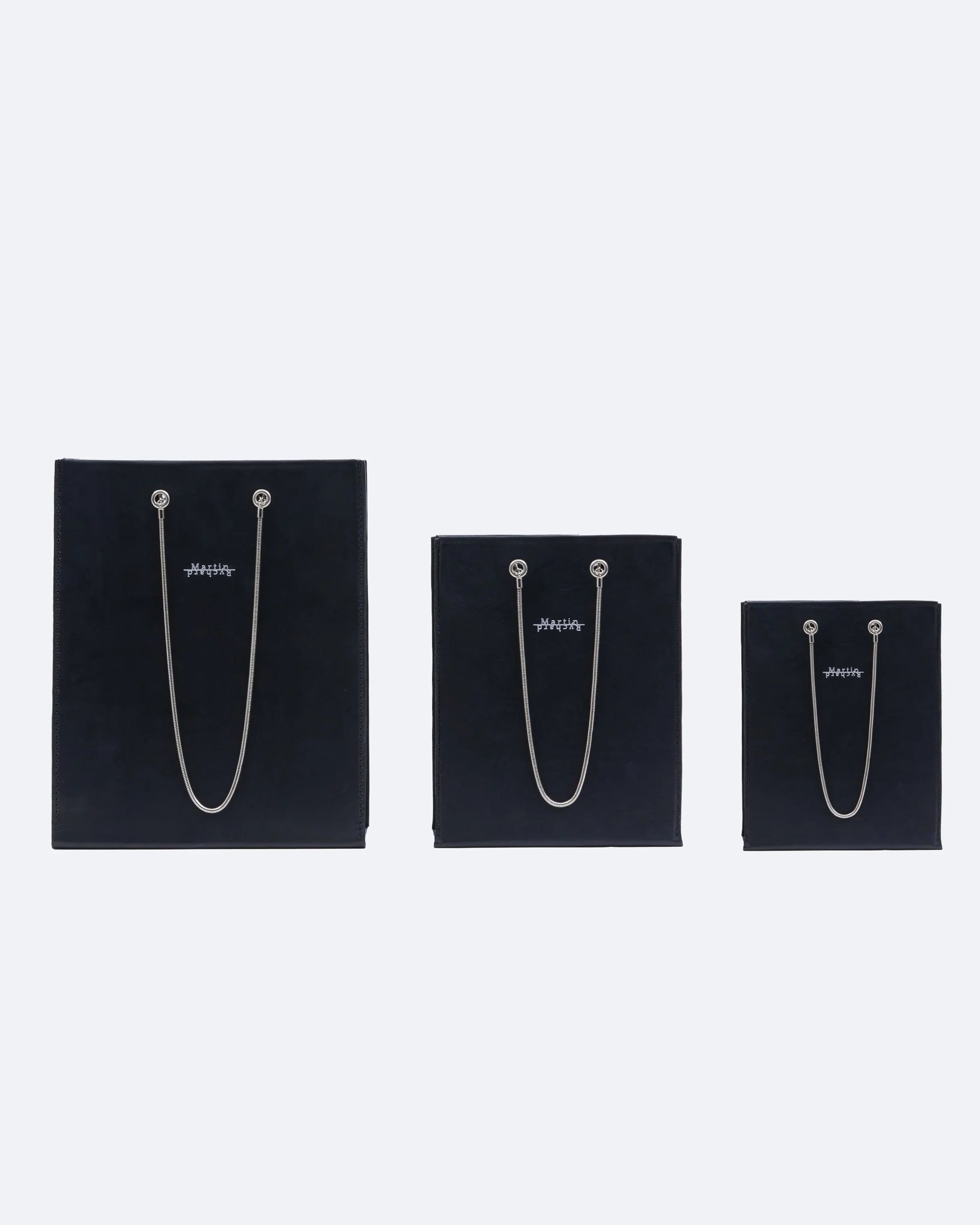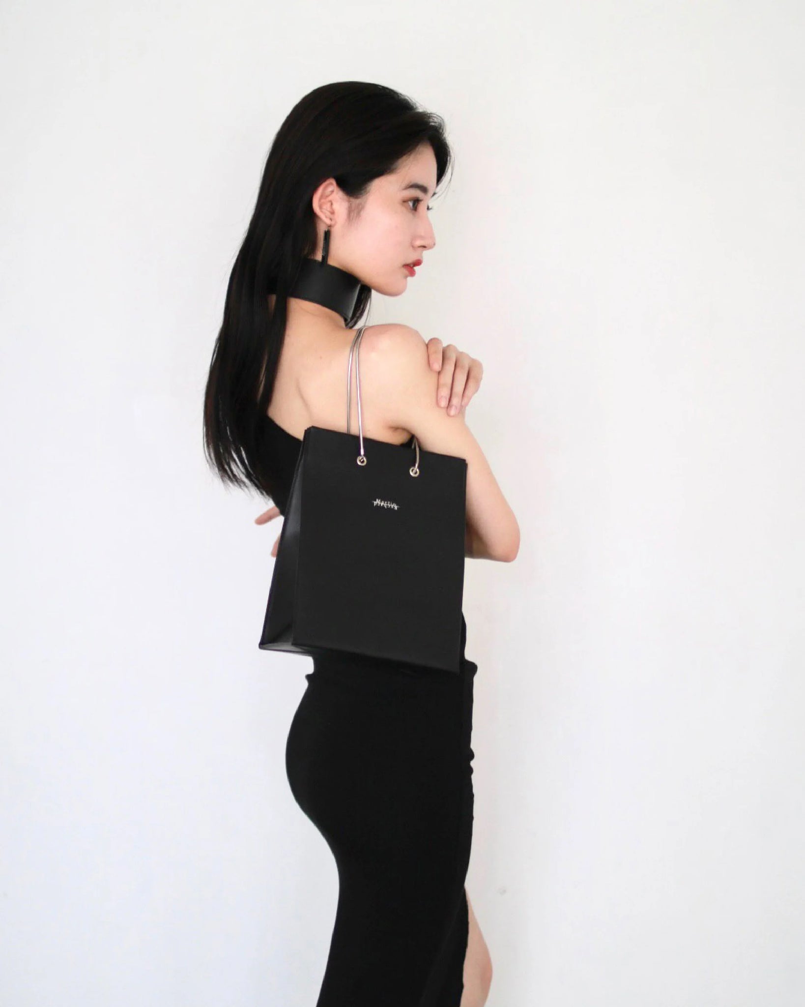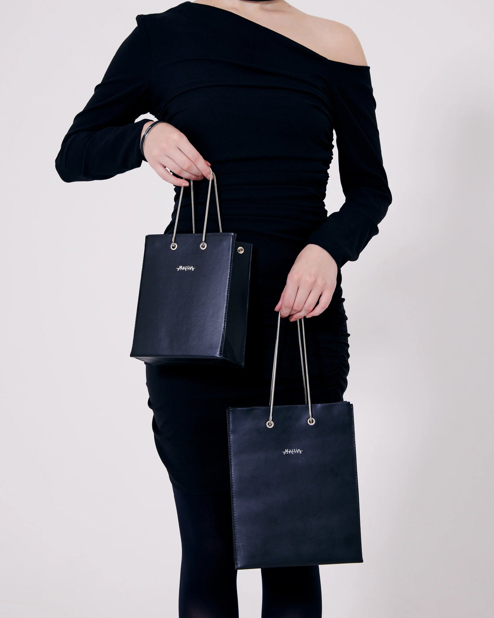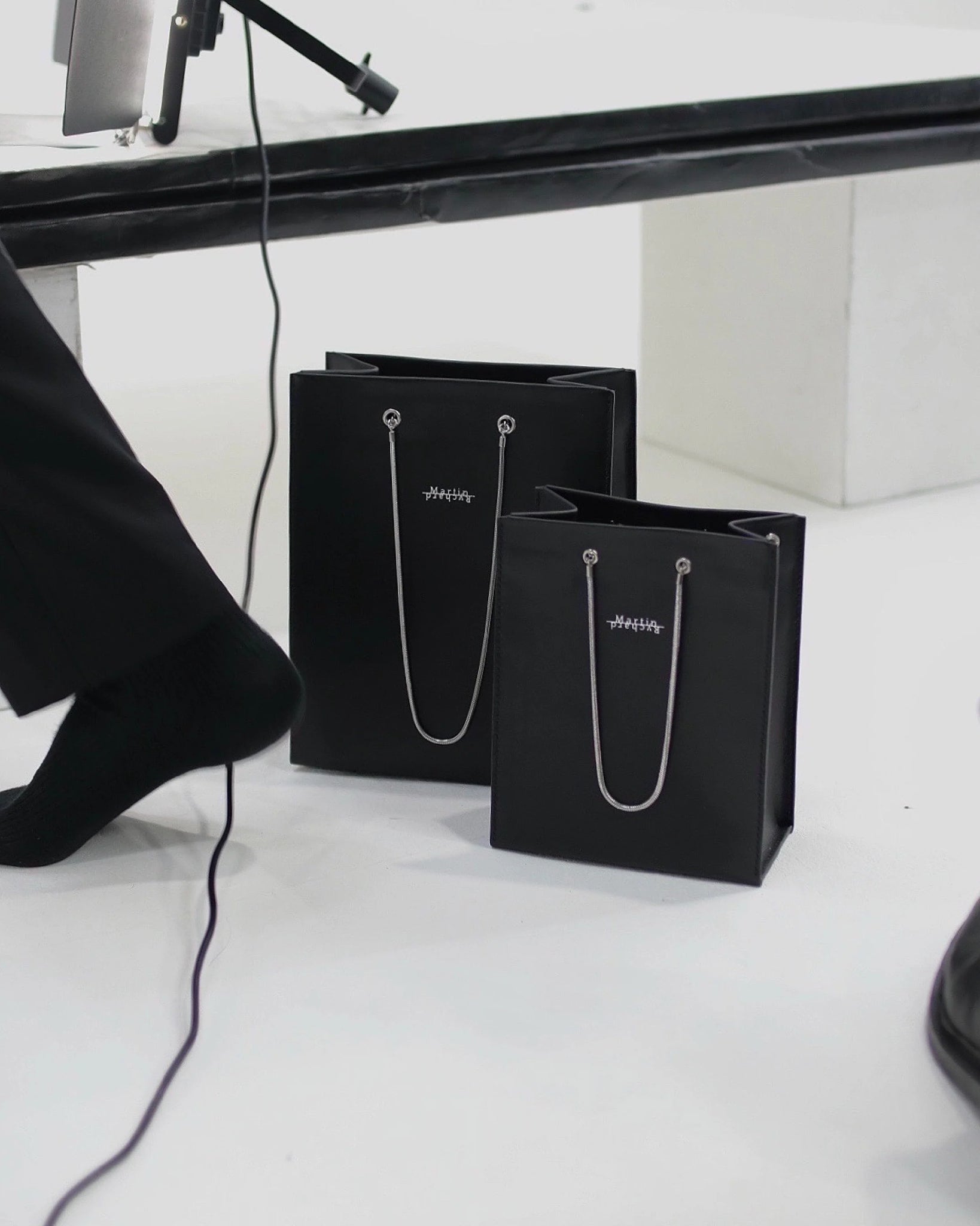 ブランドのショッパーをモチーフに革と金属で造り上げられたレザーショッパー。 存在感がありつつもそれでいてスタイリングの邪魔にならないシンプルで使いやすいバッグ。