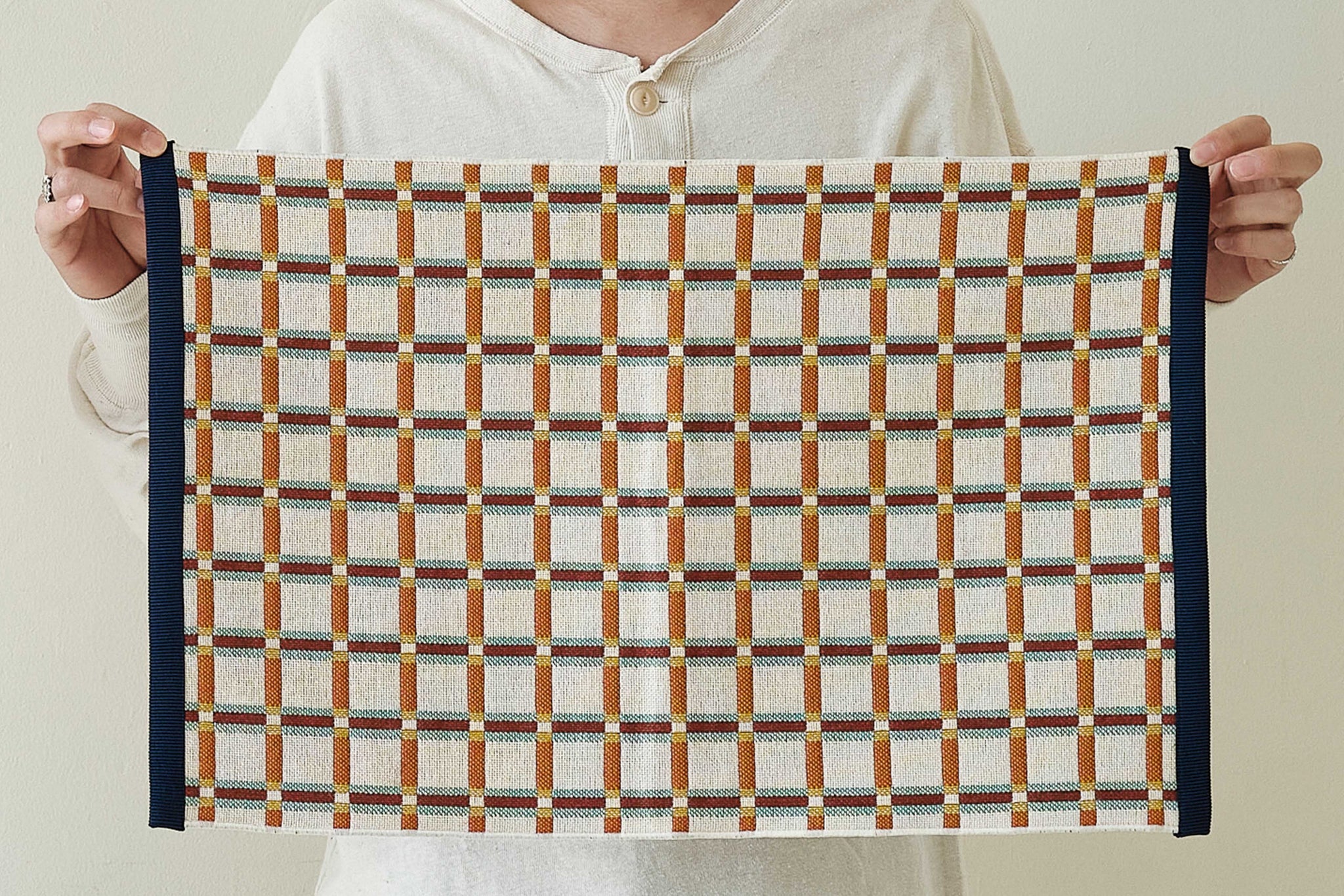 このマットは、京都にある自社工場で、染色から織りまで一貫して仕立てています。長年の経験をもつ職人たちが、素材の個性を大切に、1枚ずつ丁寧に。再生可能な天然素材・ウールの魅力を引き出すために、色の深みややわらかな風合いが引き立つ織りにこだわりました。
