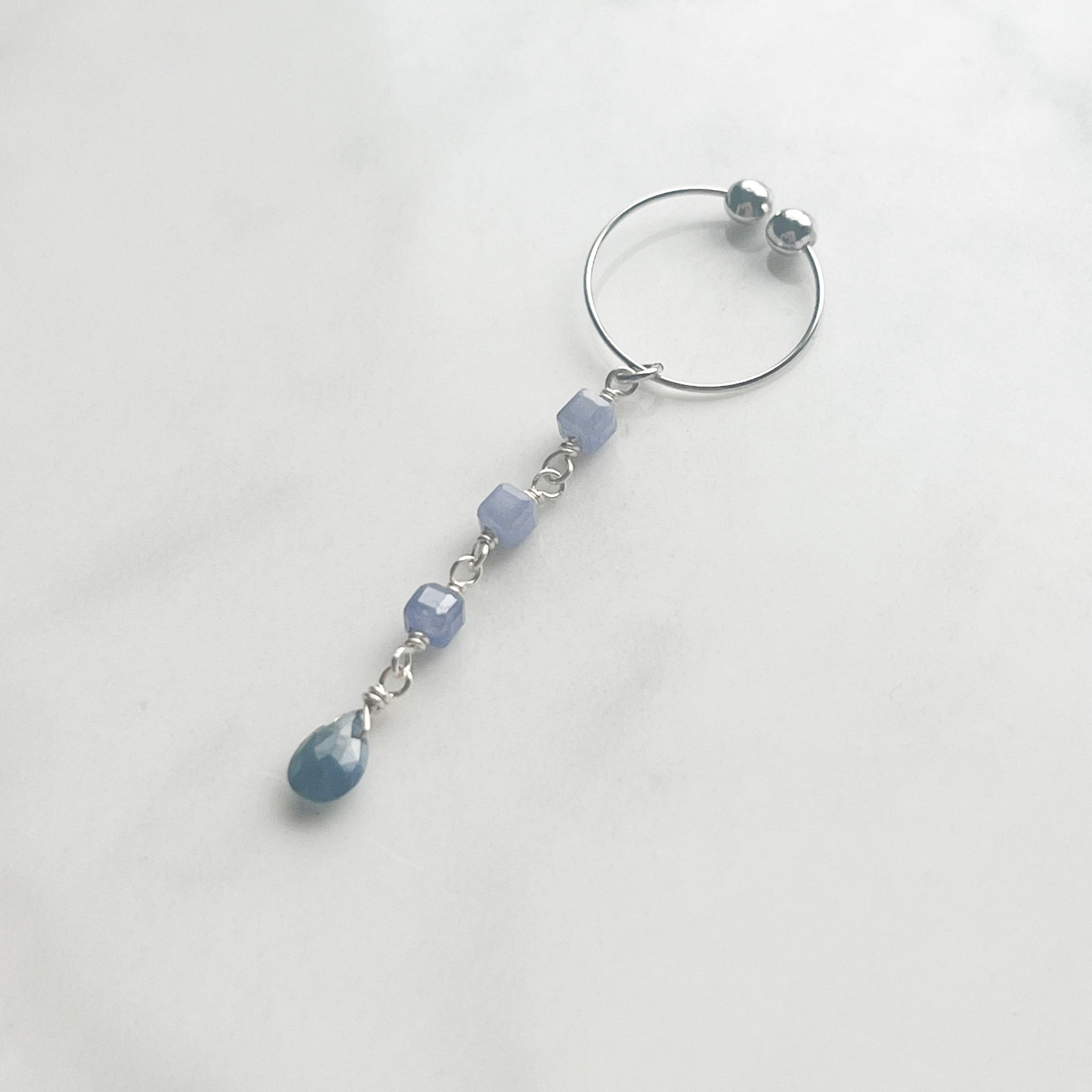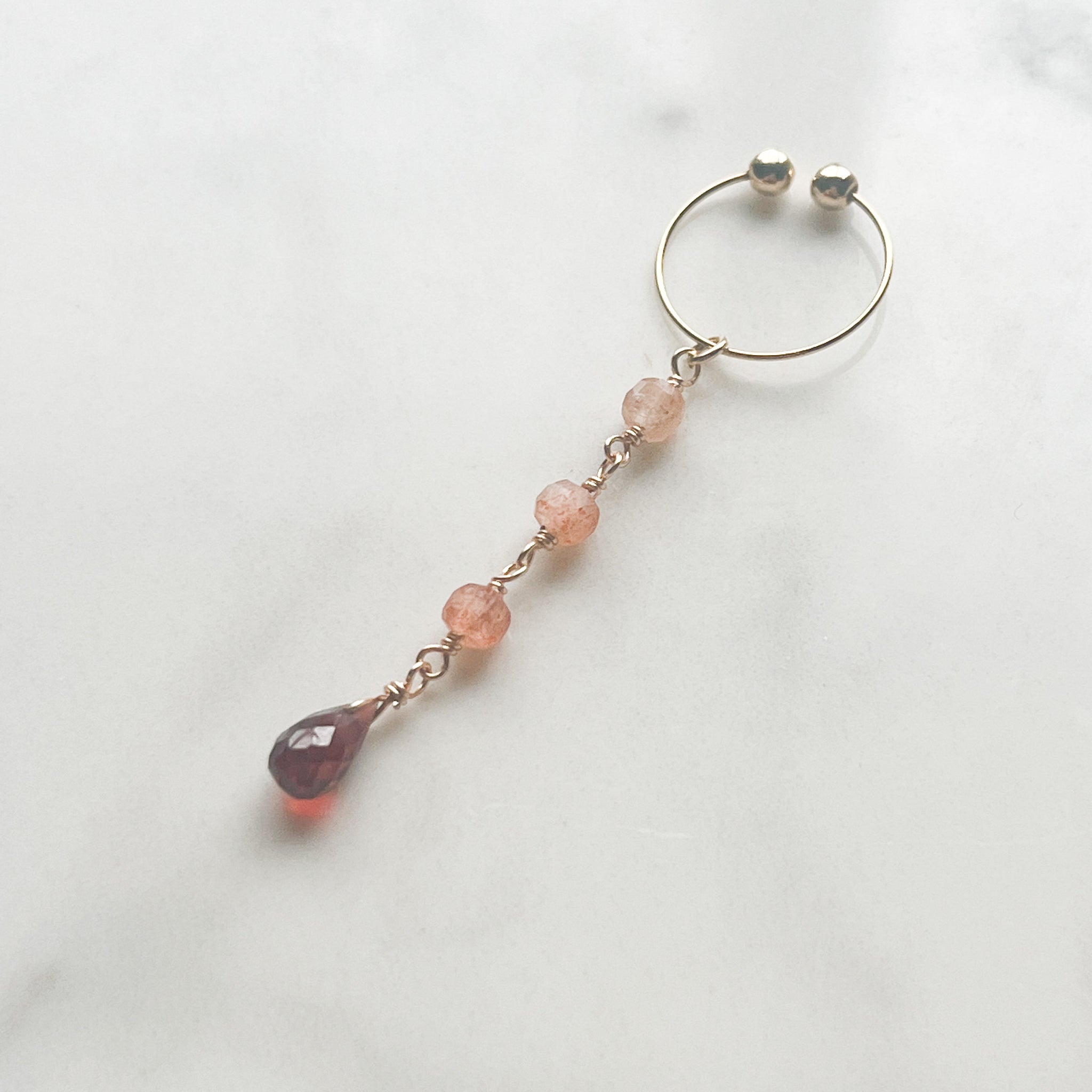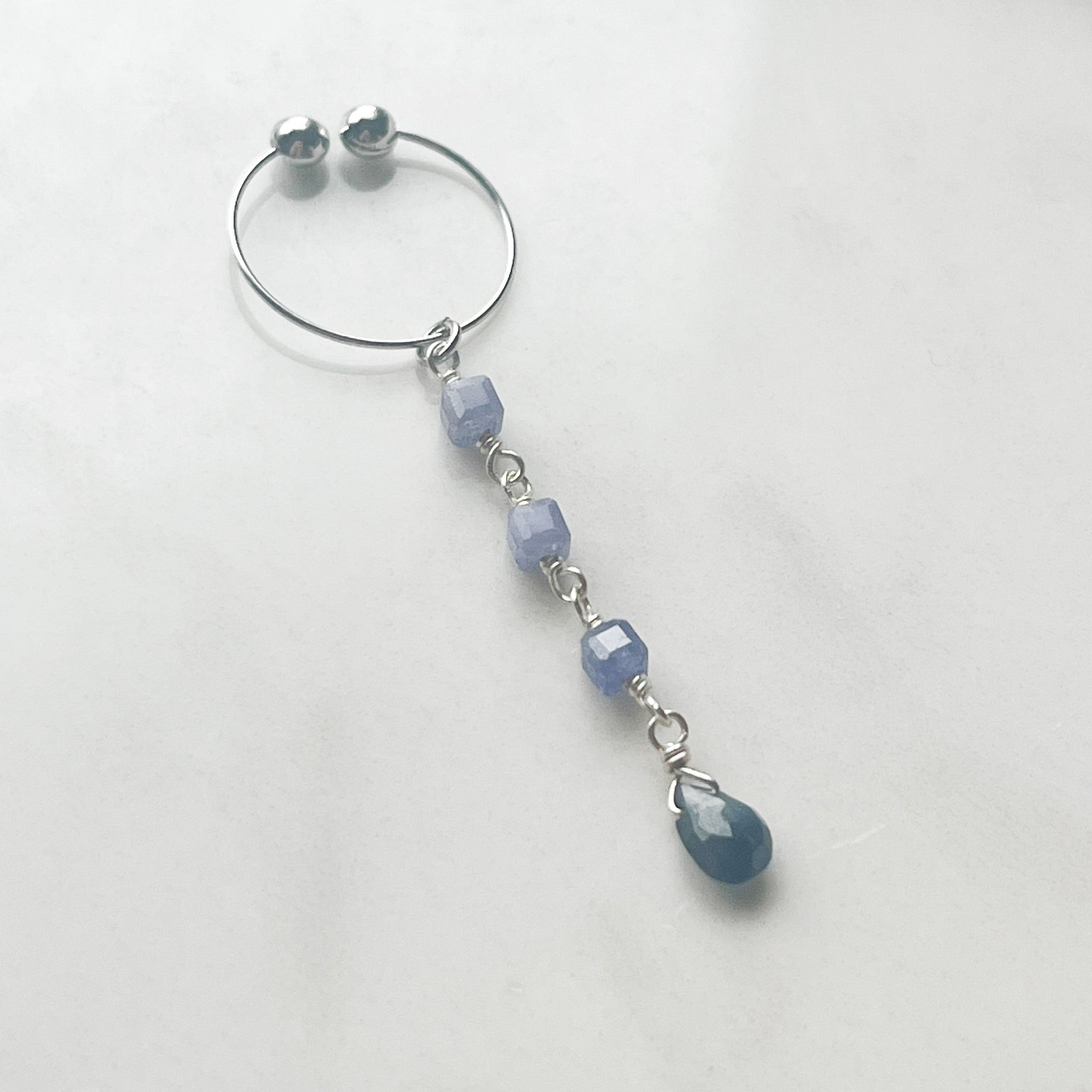 2色の鮮やかな天然石が耳元を華やかに彩るロングイヤーカフです。