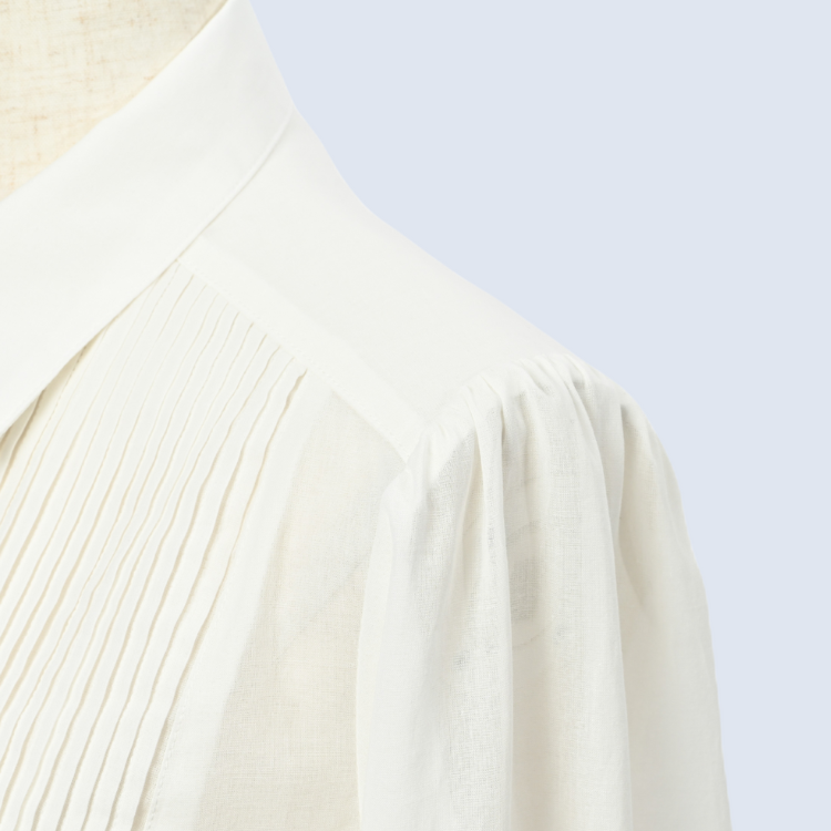 細いピンタックは職人さんの手縫いで、丁寧に仕上げました。