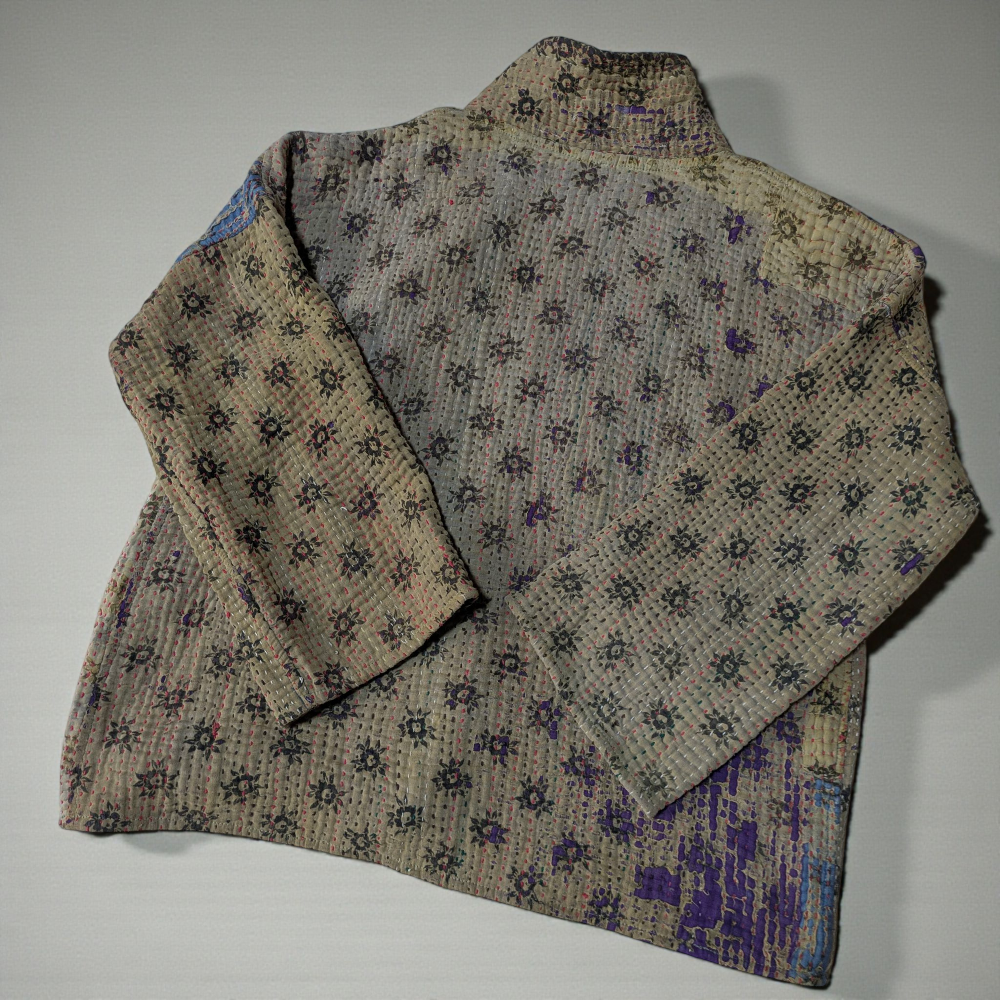 何十年もの時を超えて受け継がれてきたインドの古布を使用したジャケットです。生地の厚さや、一針一針のステッチに至るまで全く同じものはありませ ん。個性豊かな1点物の魅力をお楽しみください。
