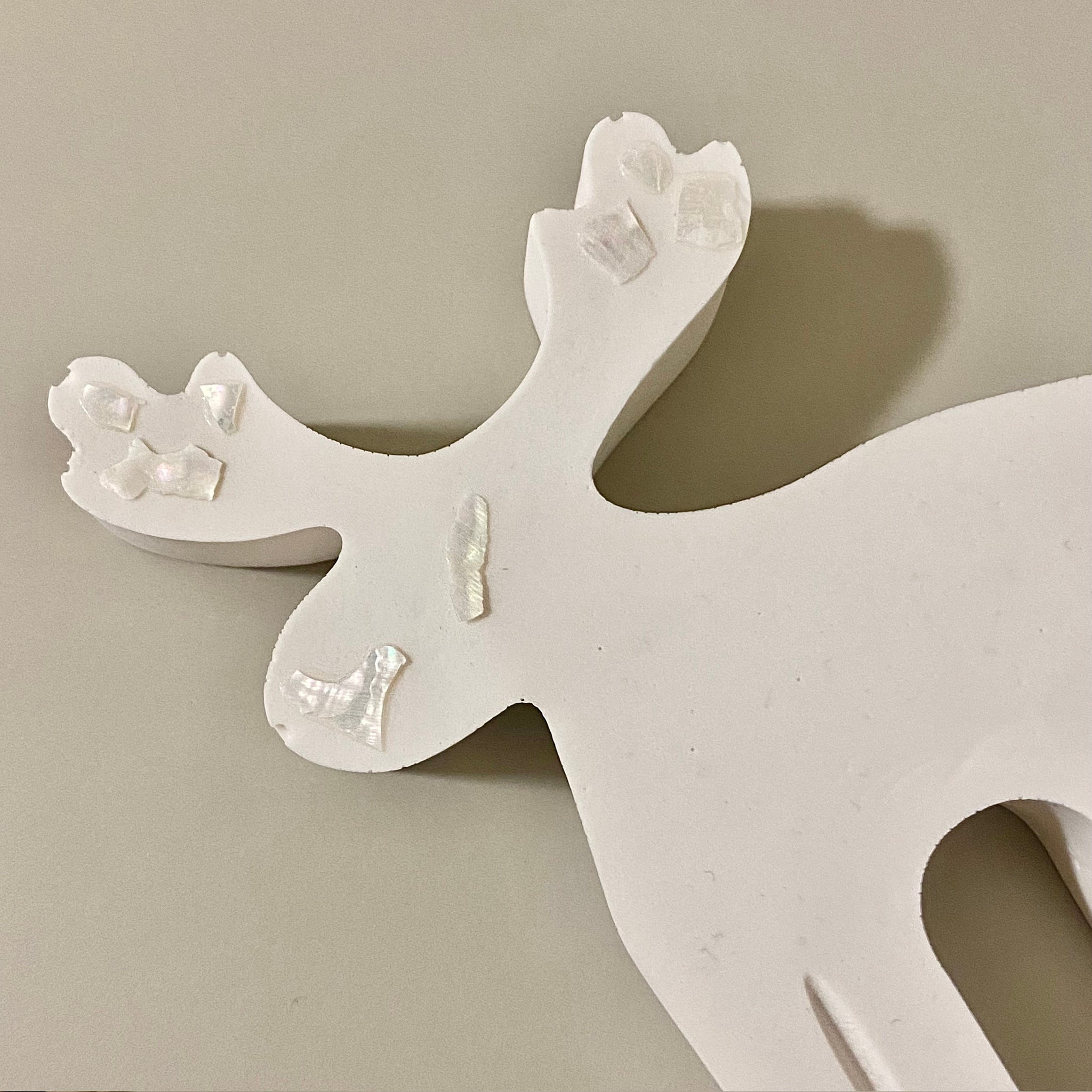 見る角度によって色味が変わる貝殻は冬の季節らしくトナカイの可愛さを引き立てます*