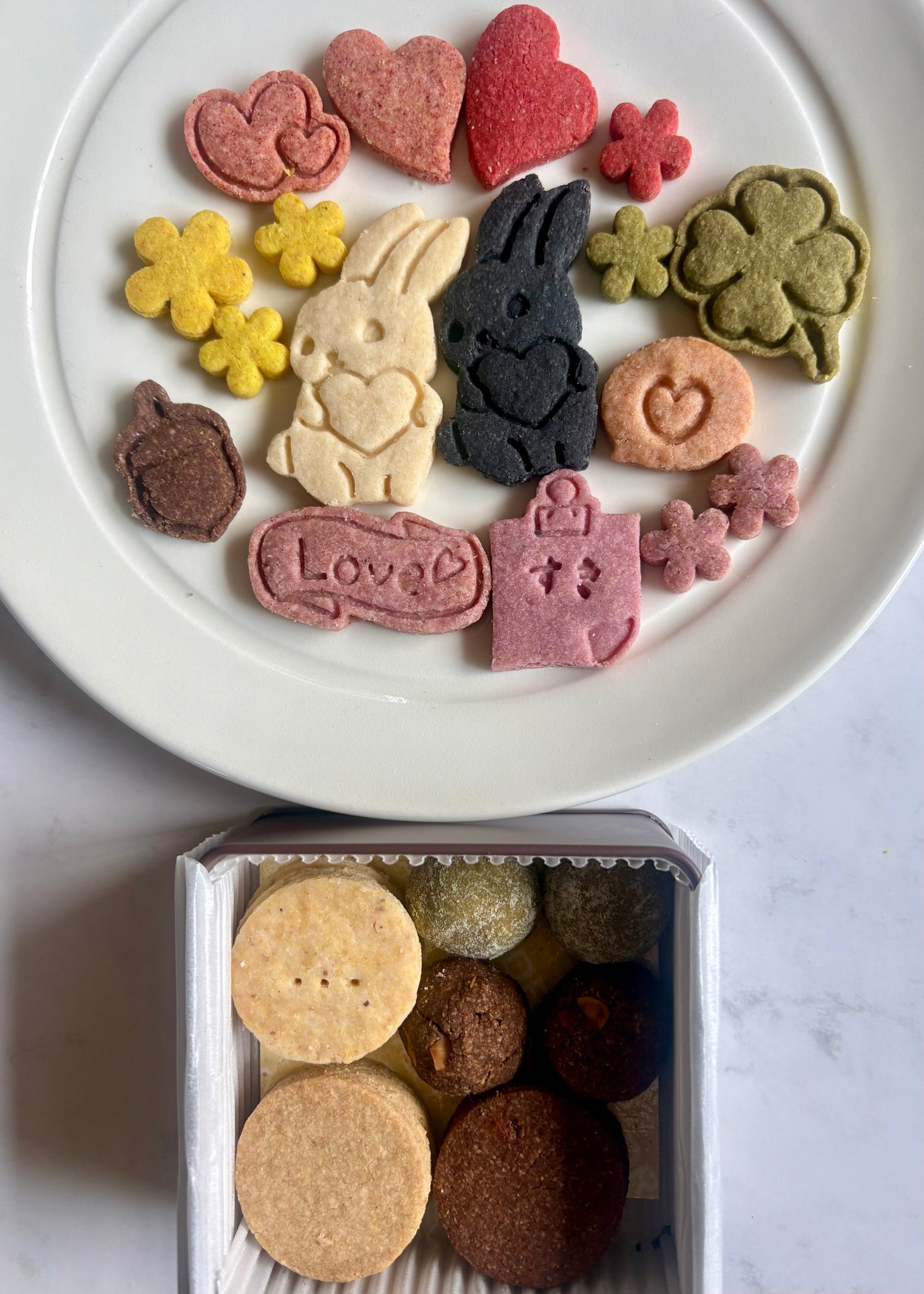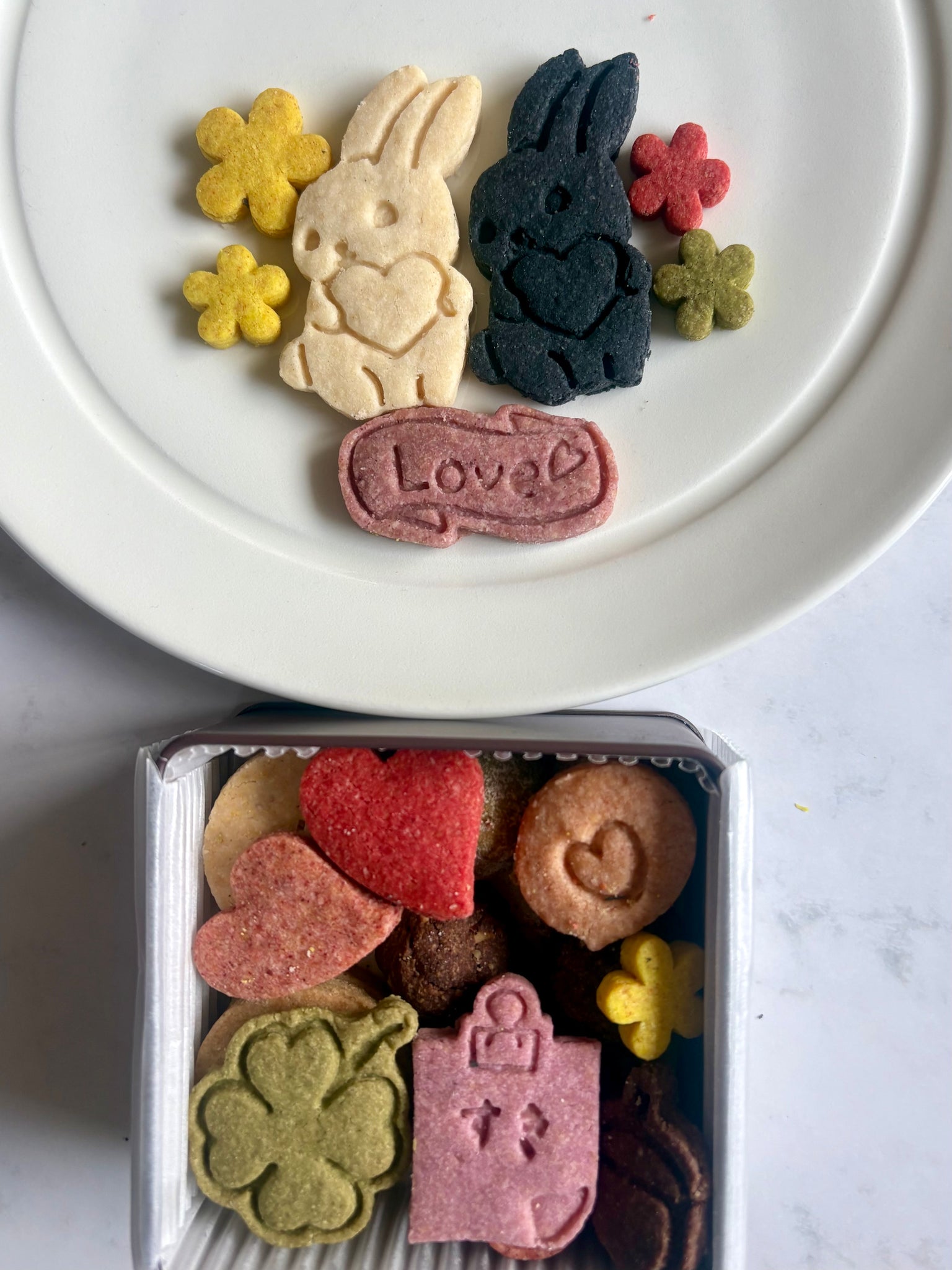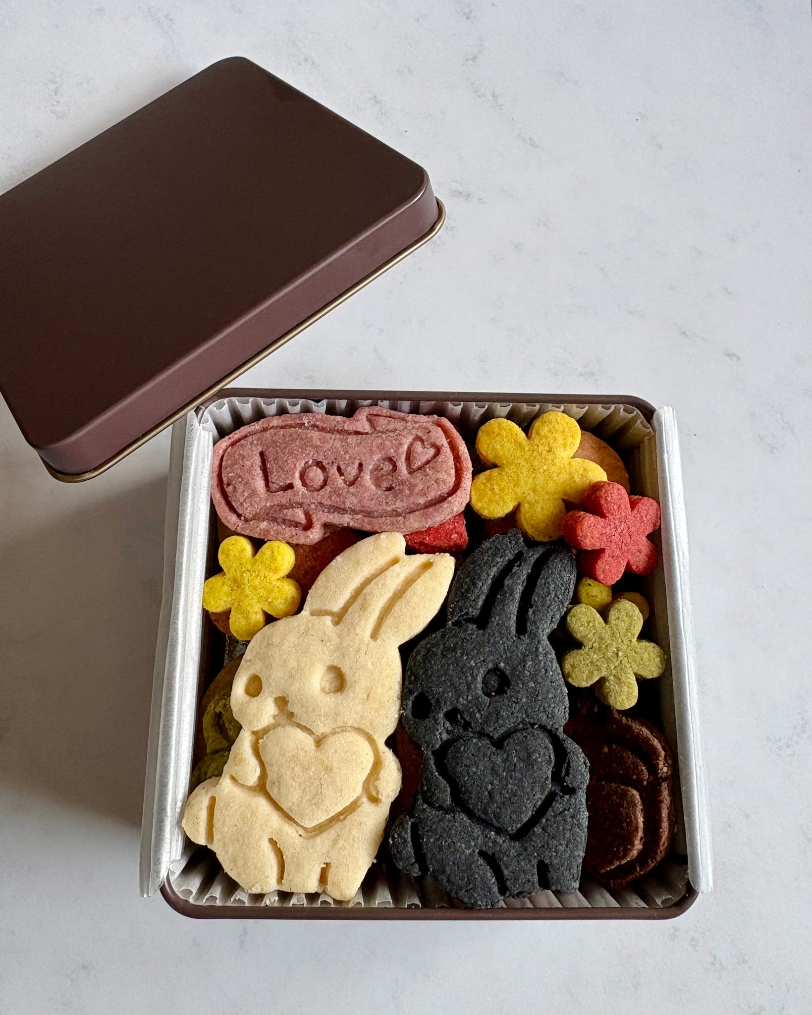 野菜や果物の自然な色合いの、カラフルで可愛いクッキーを詰め合わせた、ヴィーガン&グルテンフリーのクッキー缶は、贈り物にも喜ばれます。