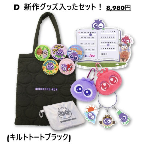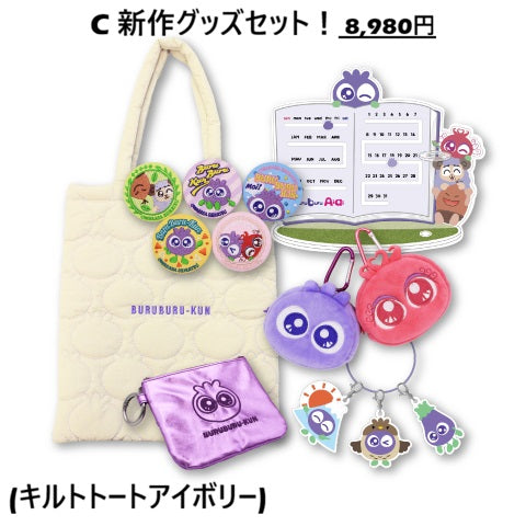 【セット内容】キルトトート(アイボリー)/メタリックティッシュポーチ(パープル)/フェイスミニポーチセット/ランダム刺繍缶バッジ(1種)/万年アクリルカレンダー/初夢アクリルキーホルダー