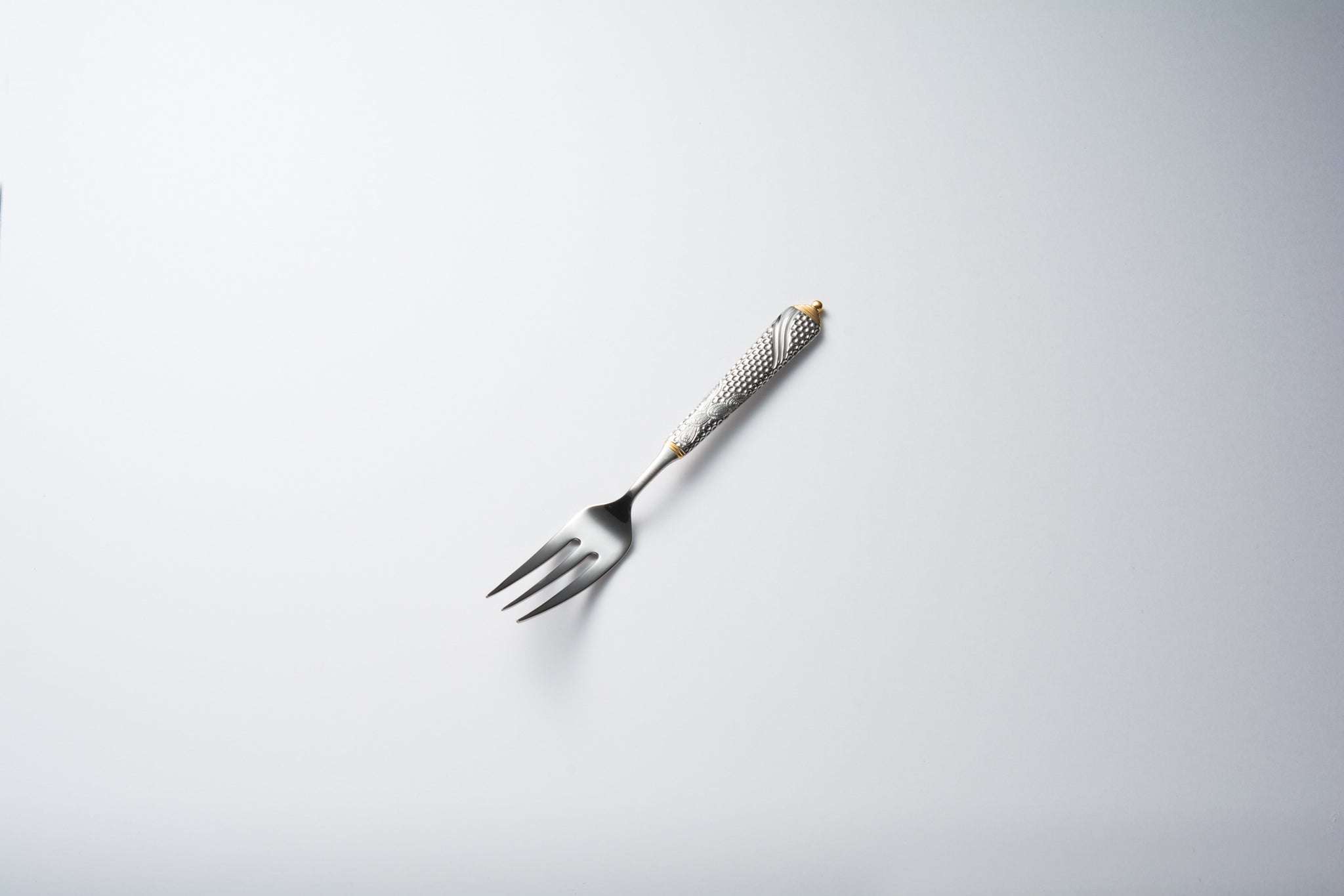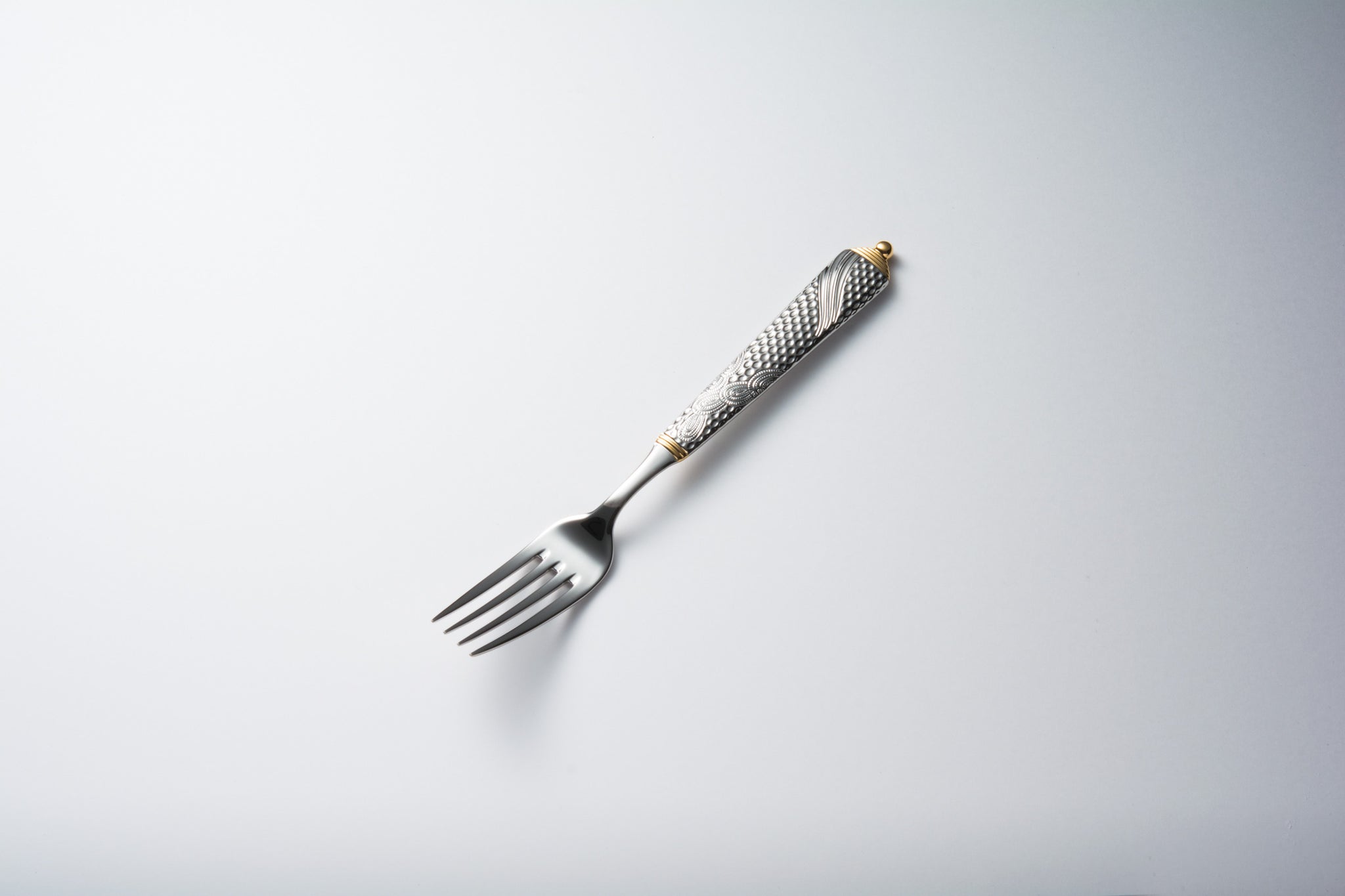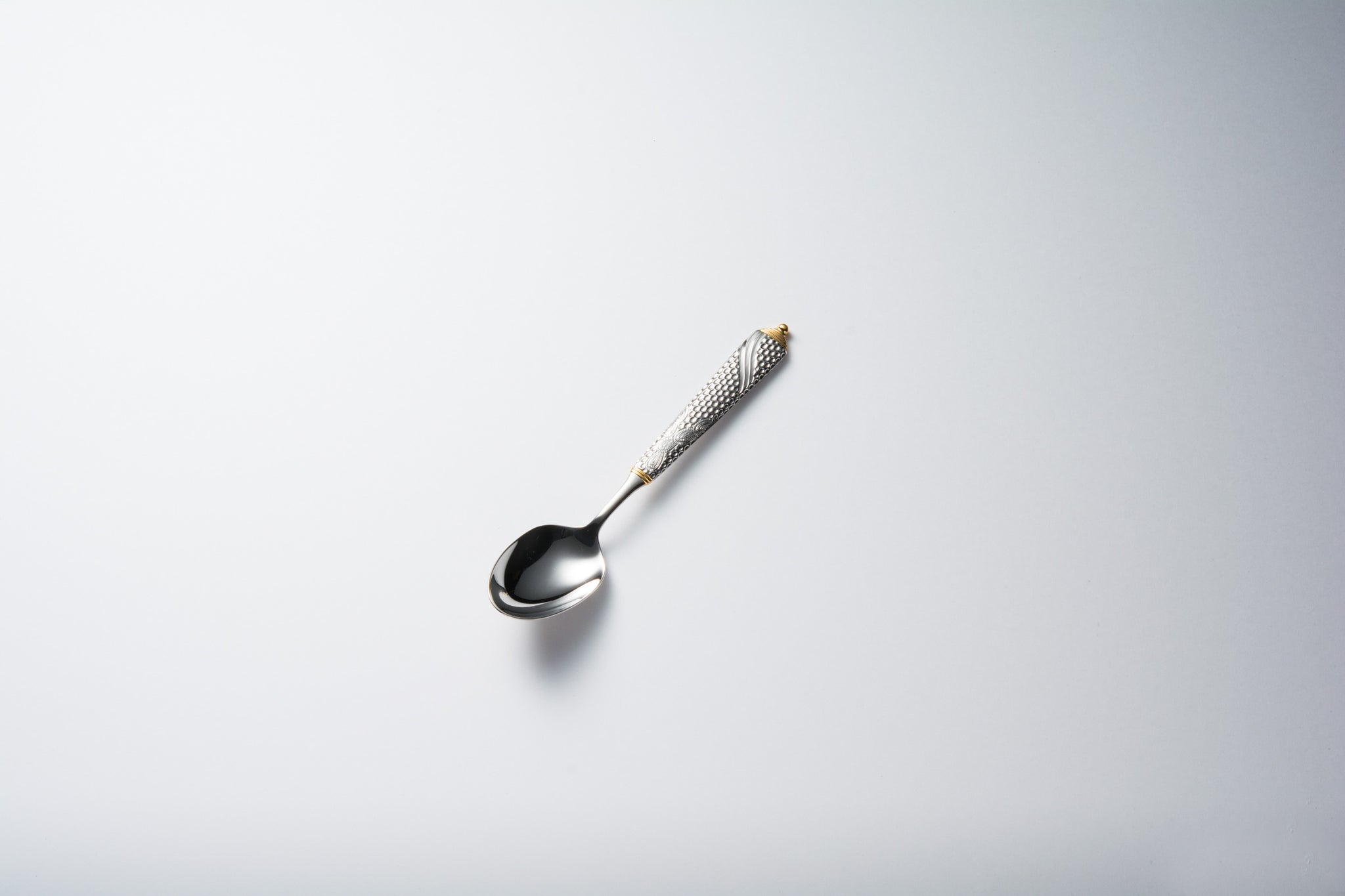 彫刻のように荘厳な細工が施されたカトラリーです。細部にまで細かく刻まれた模様はさながら芸術作品のようです。部分金メッキが更に豪華さを際立たせます。デザイナーのLarry Lasloは室内装飾品作製の権威としてデザイン界で広く知られています