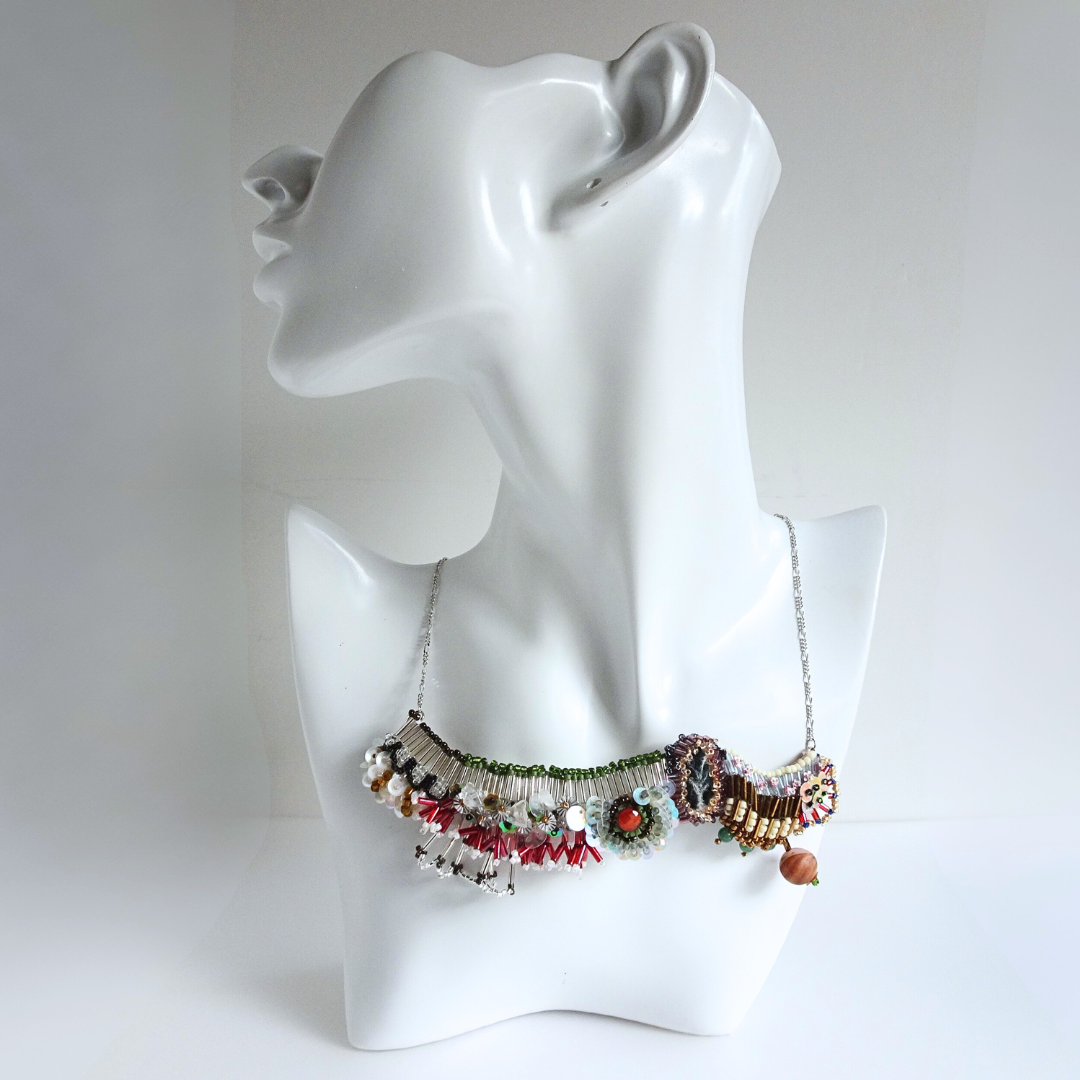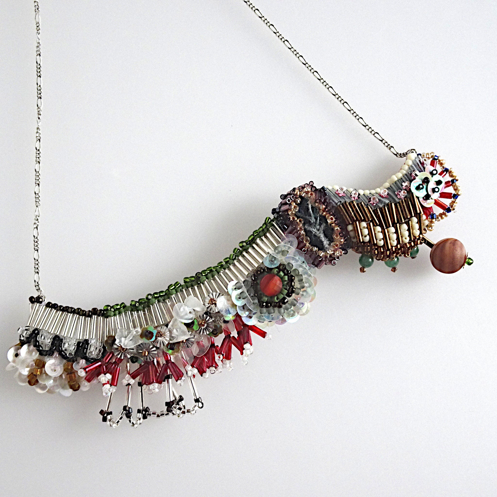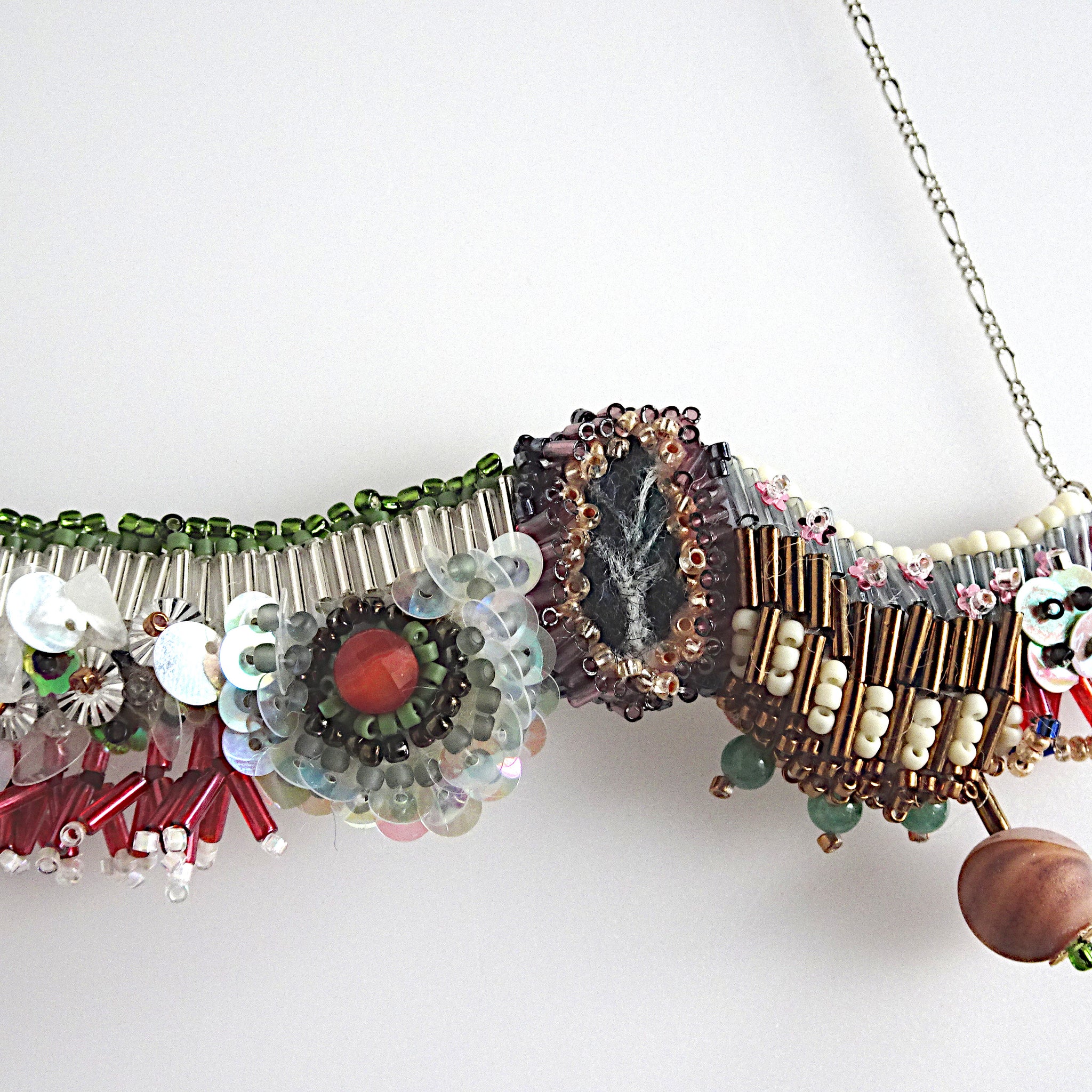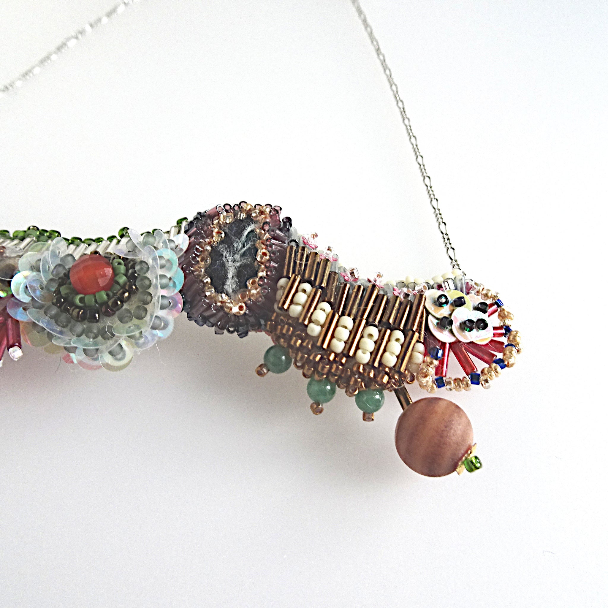 科学博物館での学芸員勤務を経て、 顕微鏡から見た世界を物作りで表現しています。 天然石やビーズなどを立体刺繍し、微生物や胞子を作っています。 小さな生き物たちの自由でのびやかな姿を 一点物アクセサリーでお楽しみください。