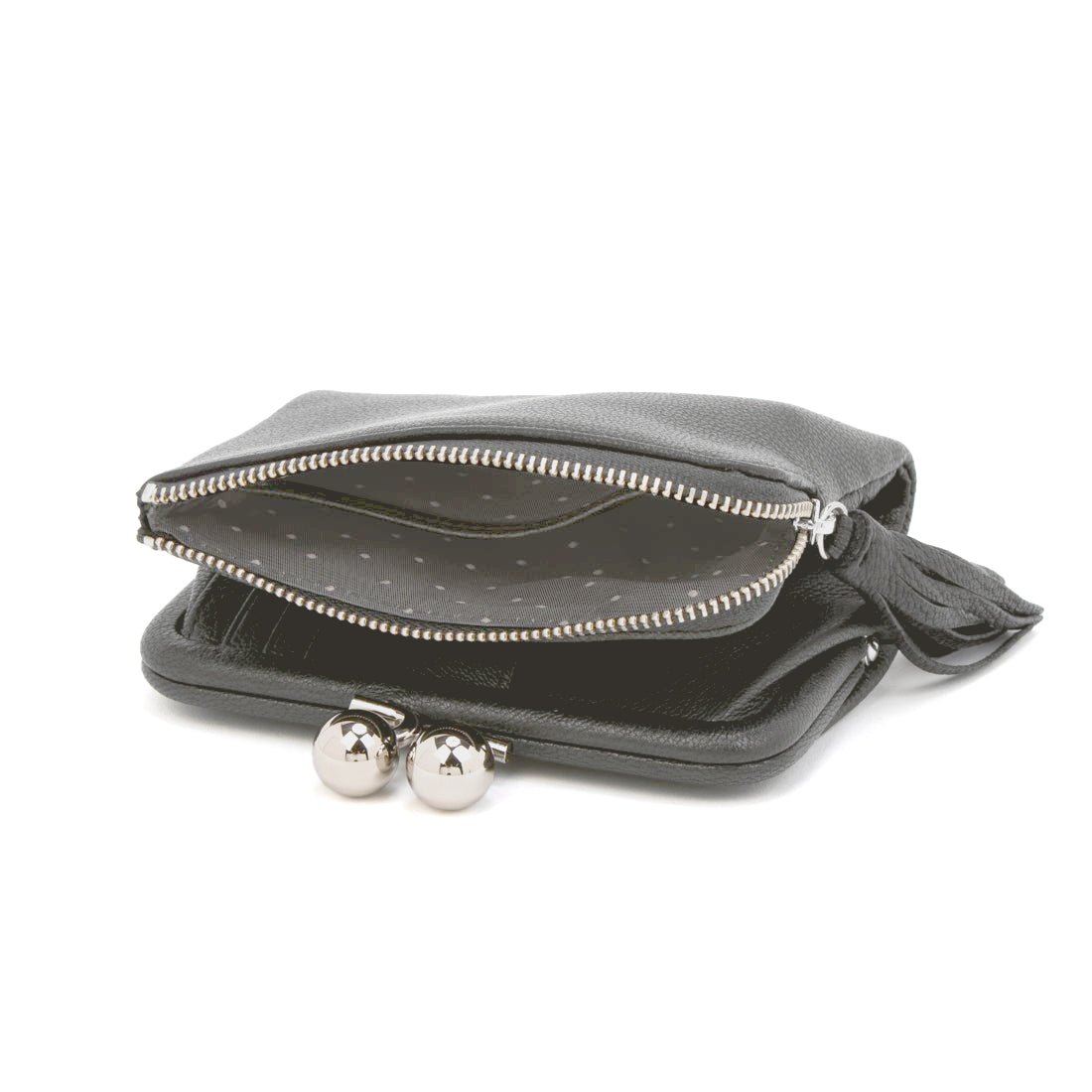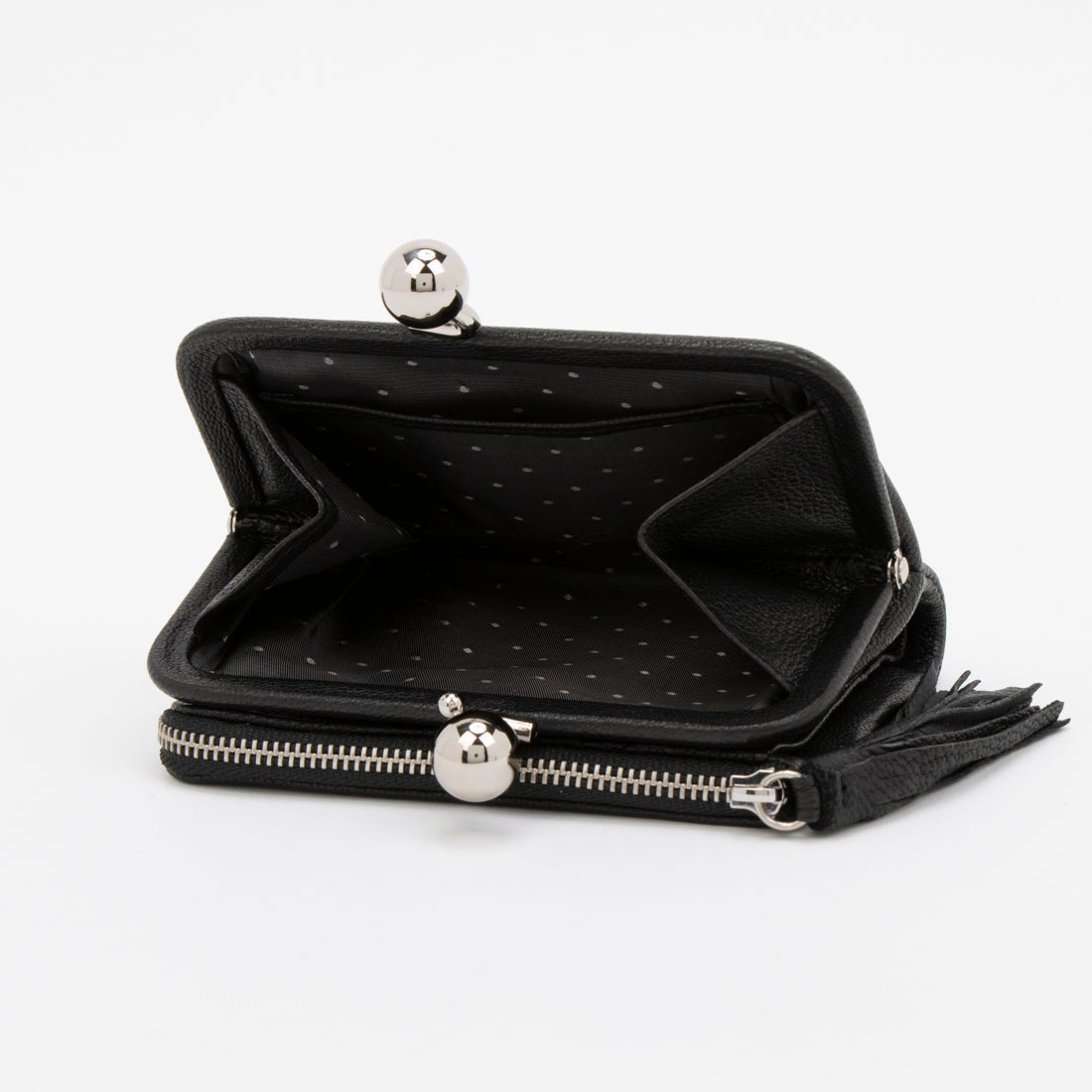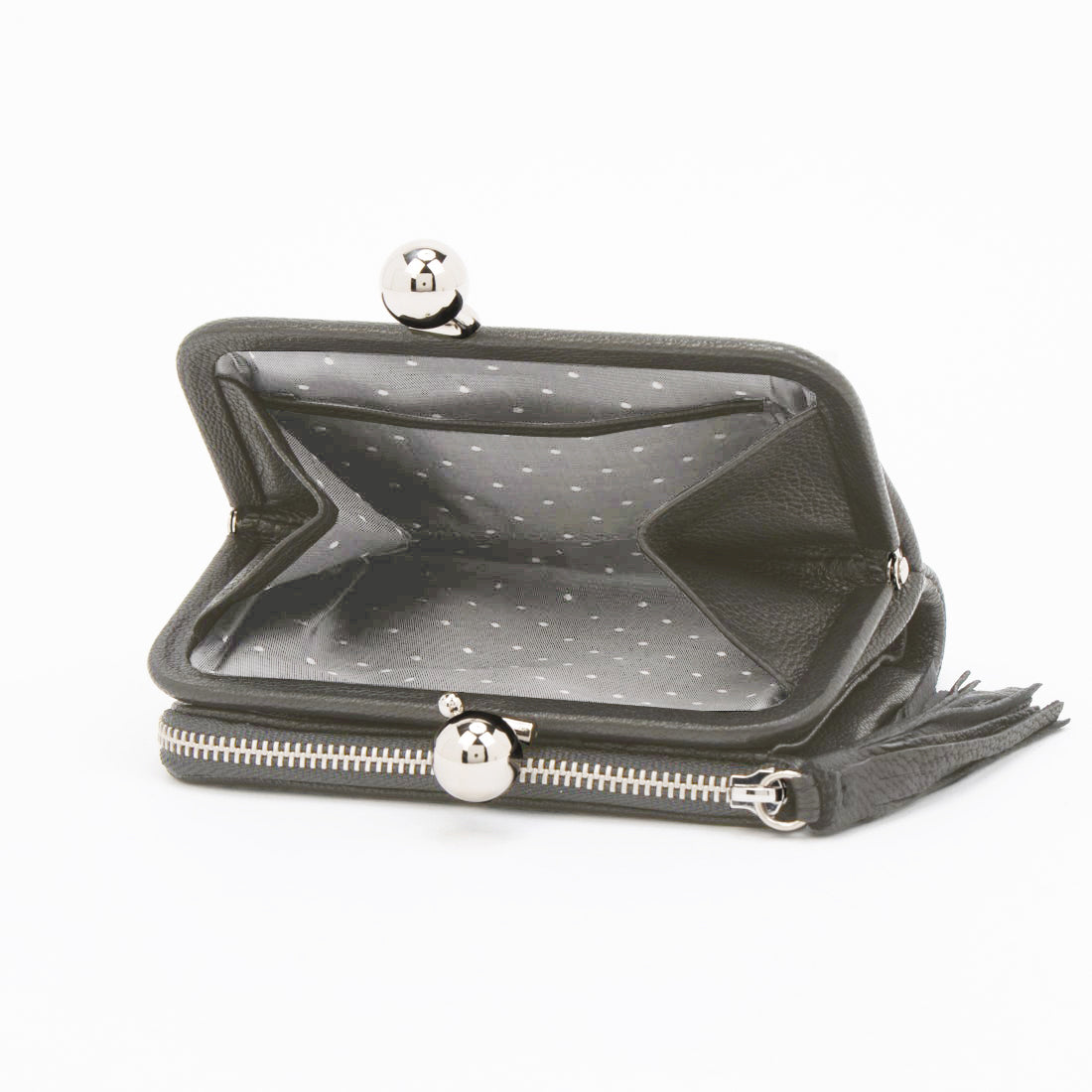 ファスナー付き小銭入れ、がま口小銭入れ、カードポケット14か所とコンパクトでも収納力たっぷりのウォレットです。