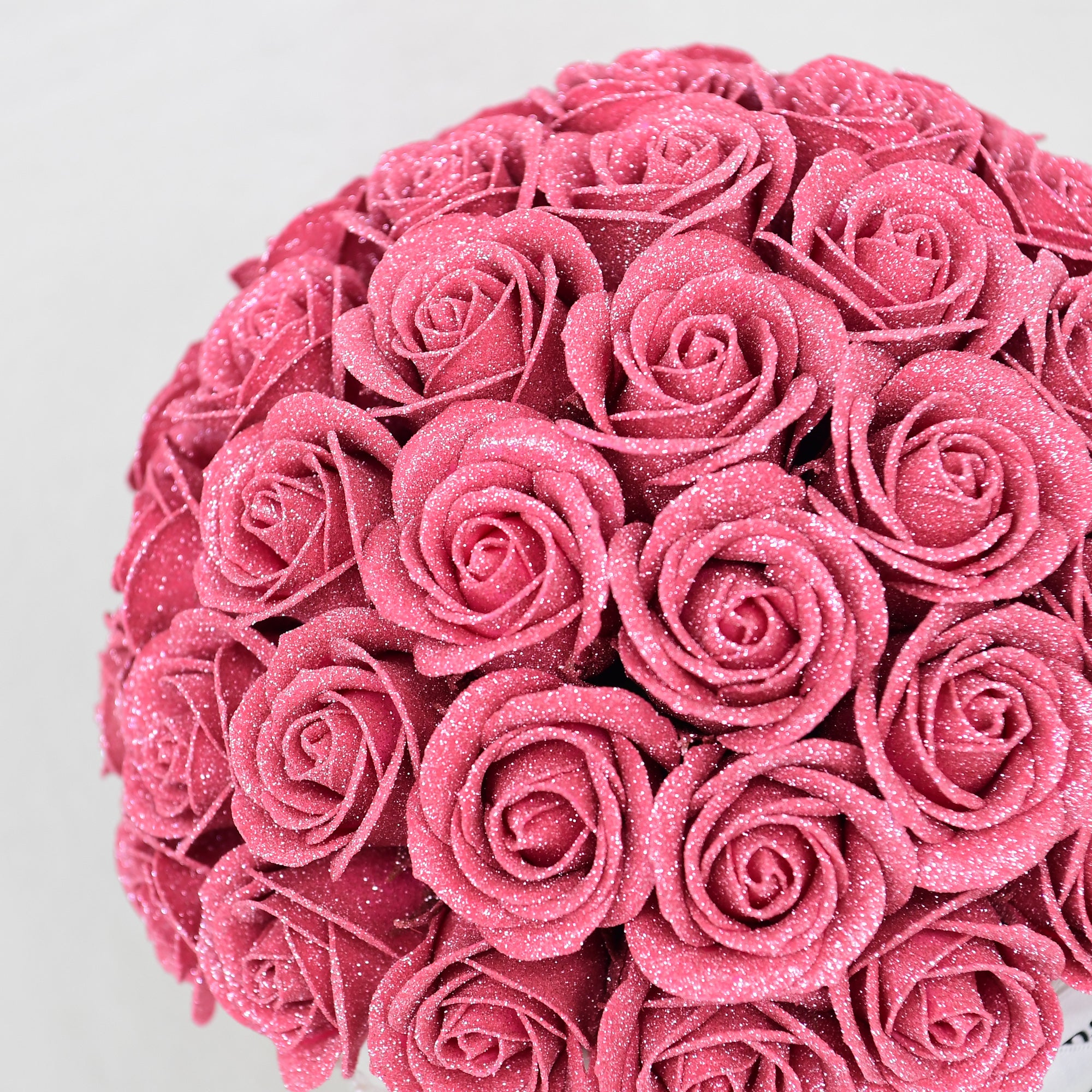 まるで生花のようにリアルな花びらに、国内の自社工場でグリッター加工を施した美しいバラです。