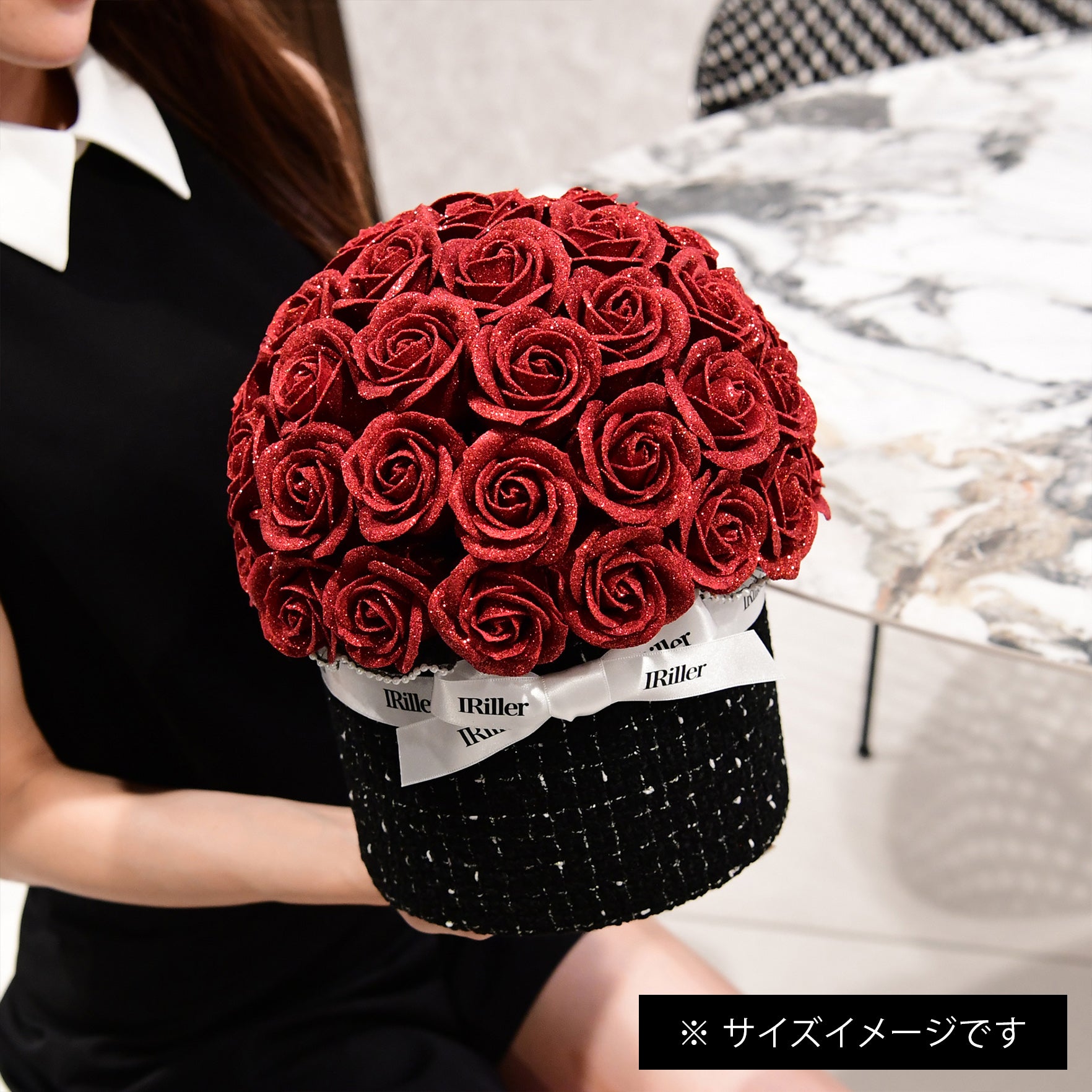 国内工場で丁寧に制作した高品質のグリッターローズを使用しています。